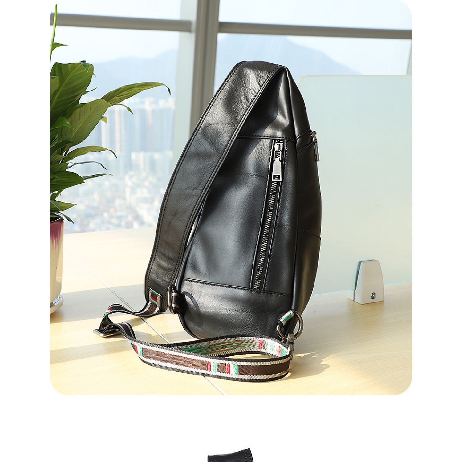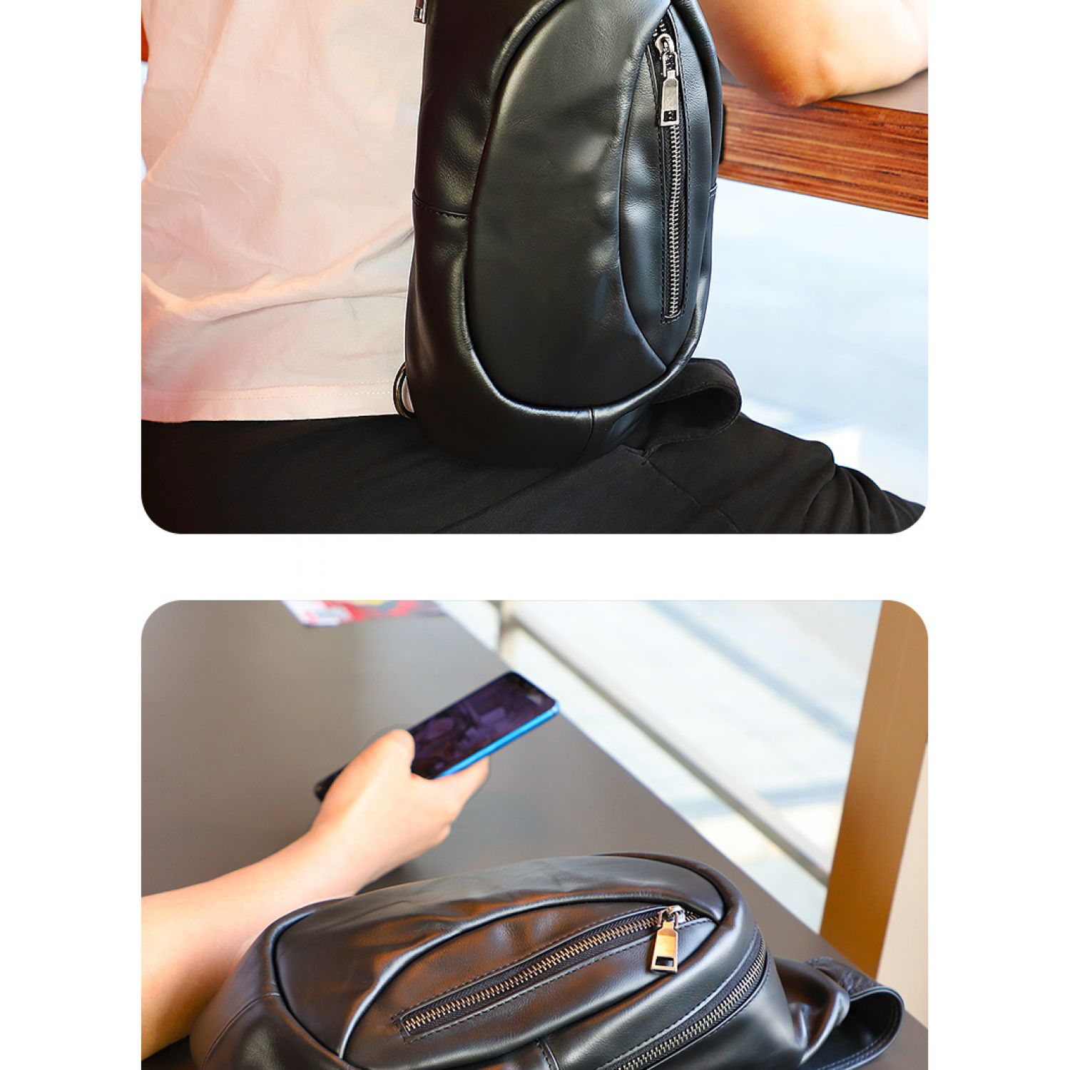 Genuine Leather Men's Chest Bag One-shoulder Leisure Sports Black