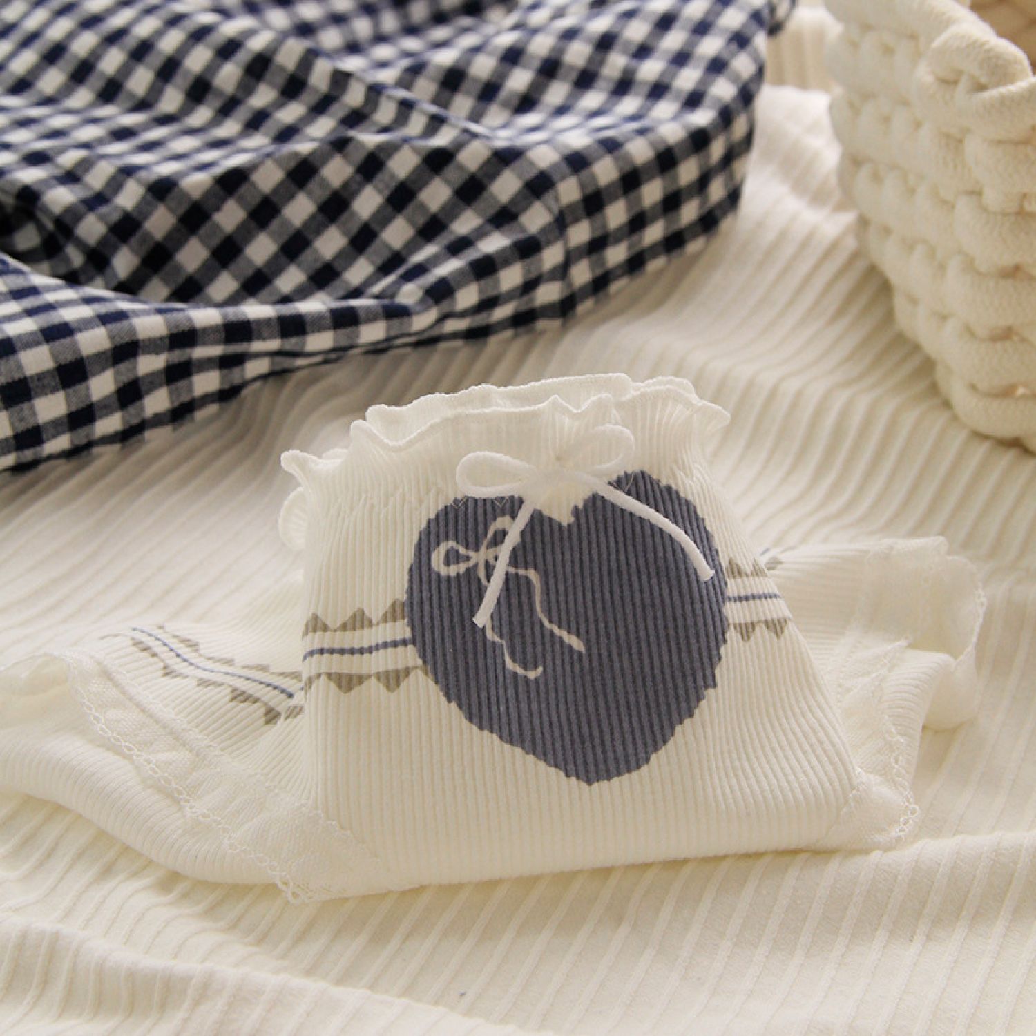 Color: White (expression), graphite blue (rabbit), white (love), graphite blue (bow), white (full print bow), existing colors randomly distributed evenly