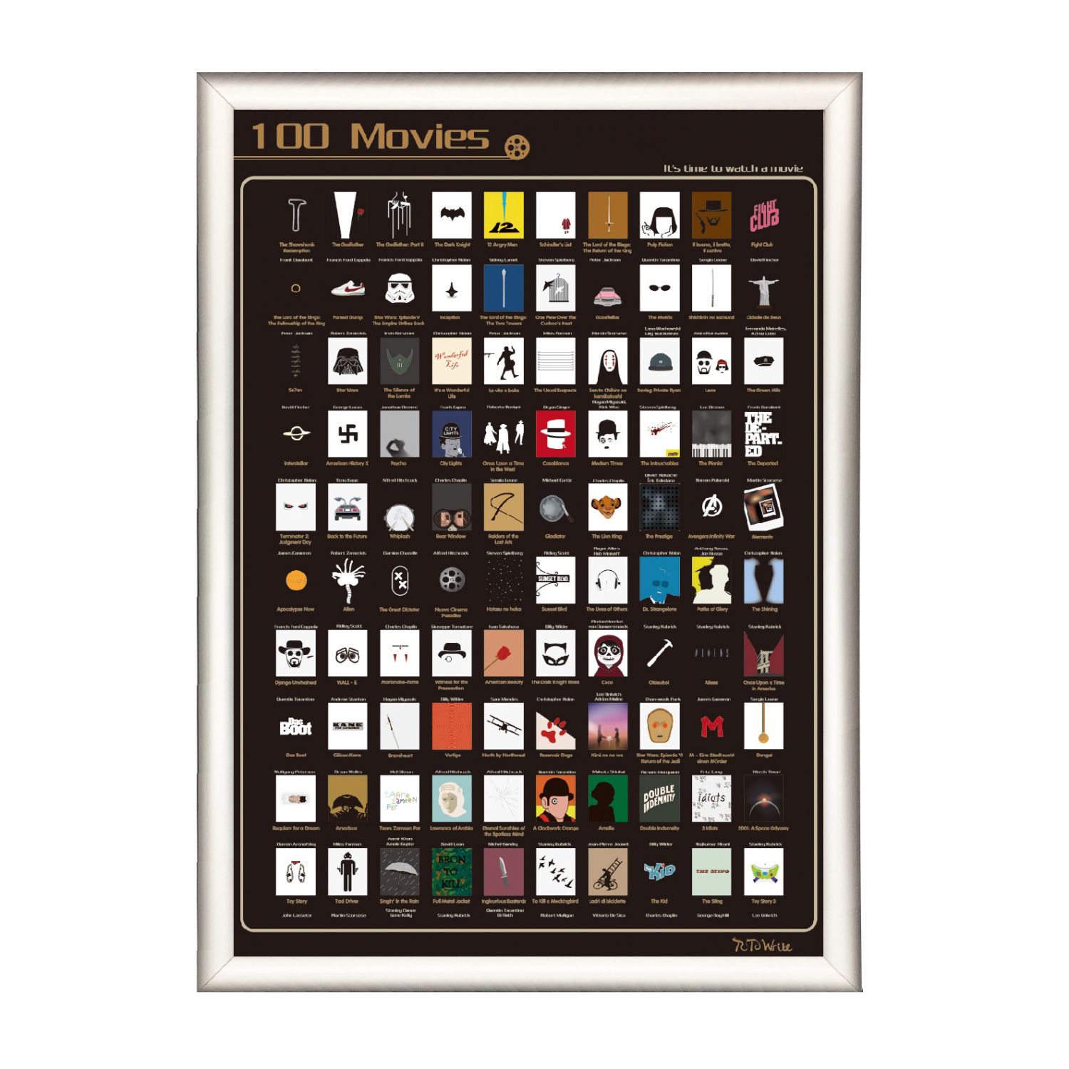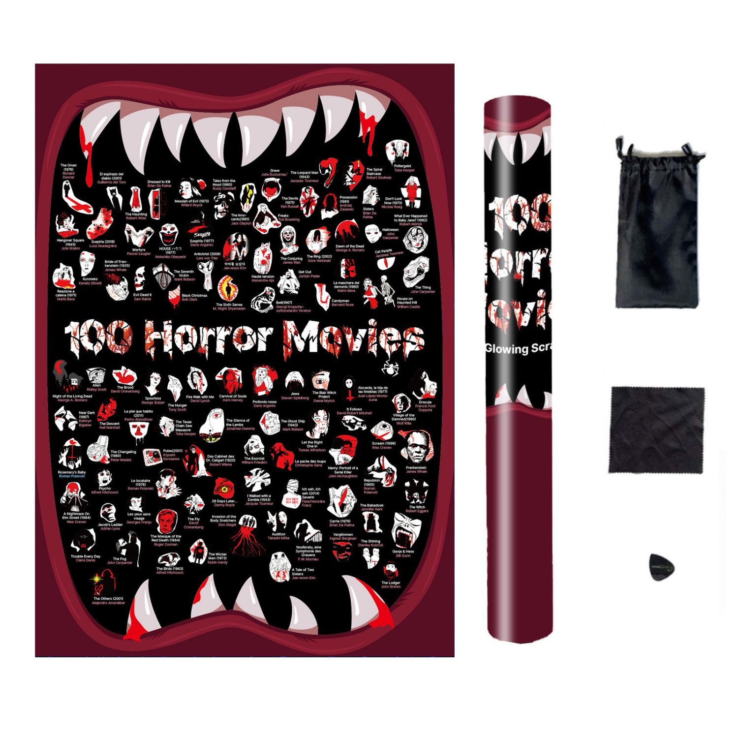 Glow-in-the-dark Scratch Poster List 100Movies Red 59.4x42