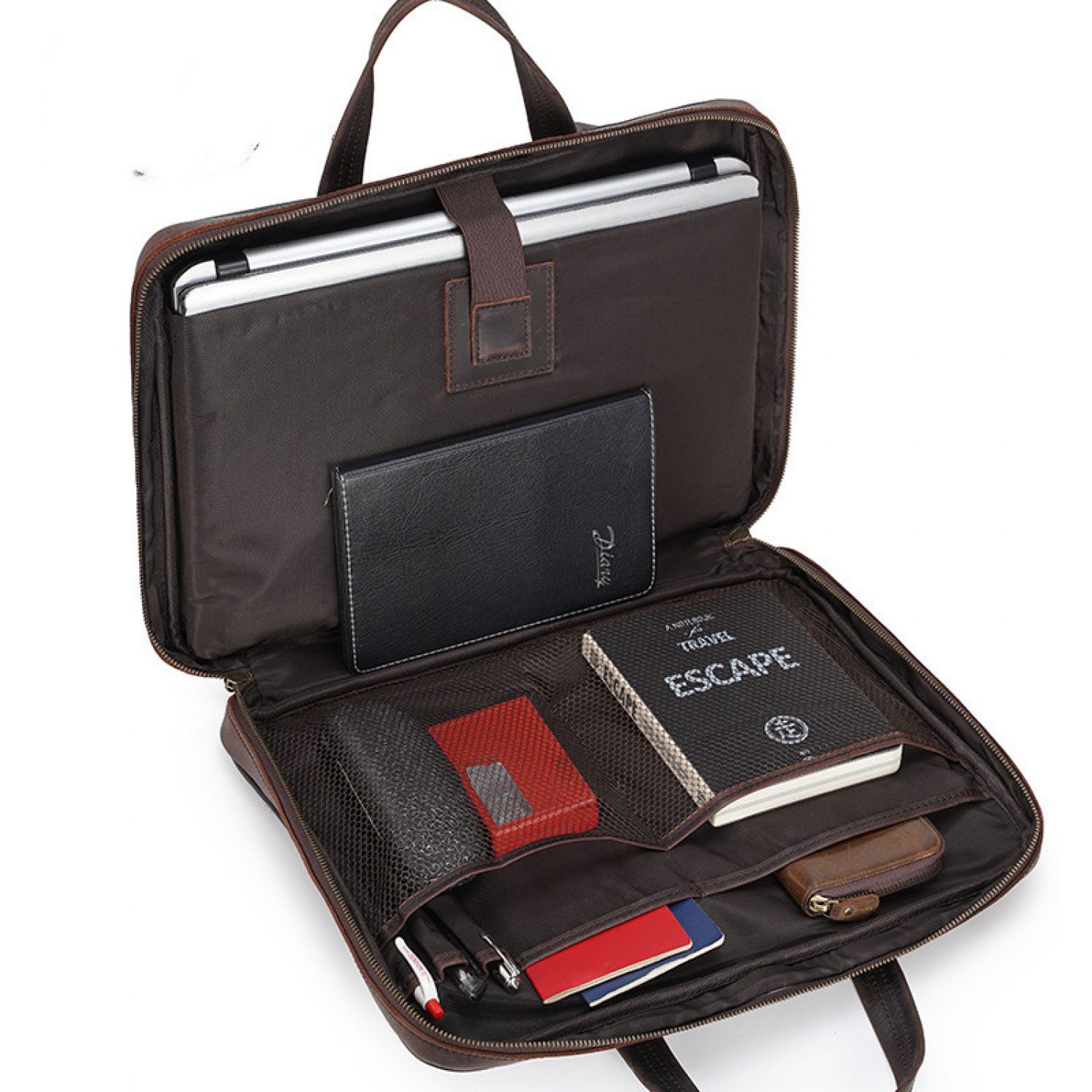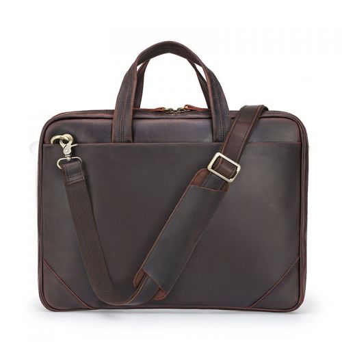 Handbag Inch Laptop Bag Retro Crazy Horse Leather Briefcase Dark brown