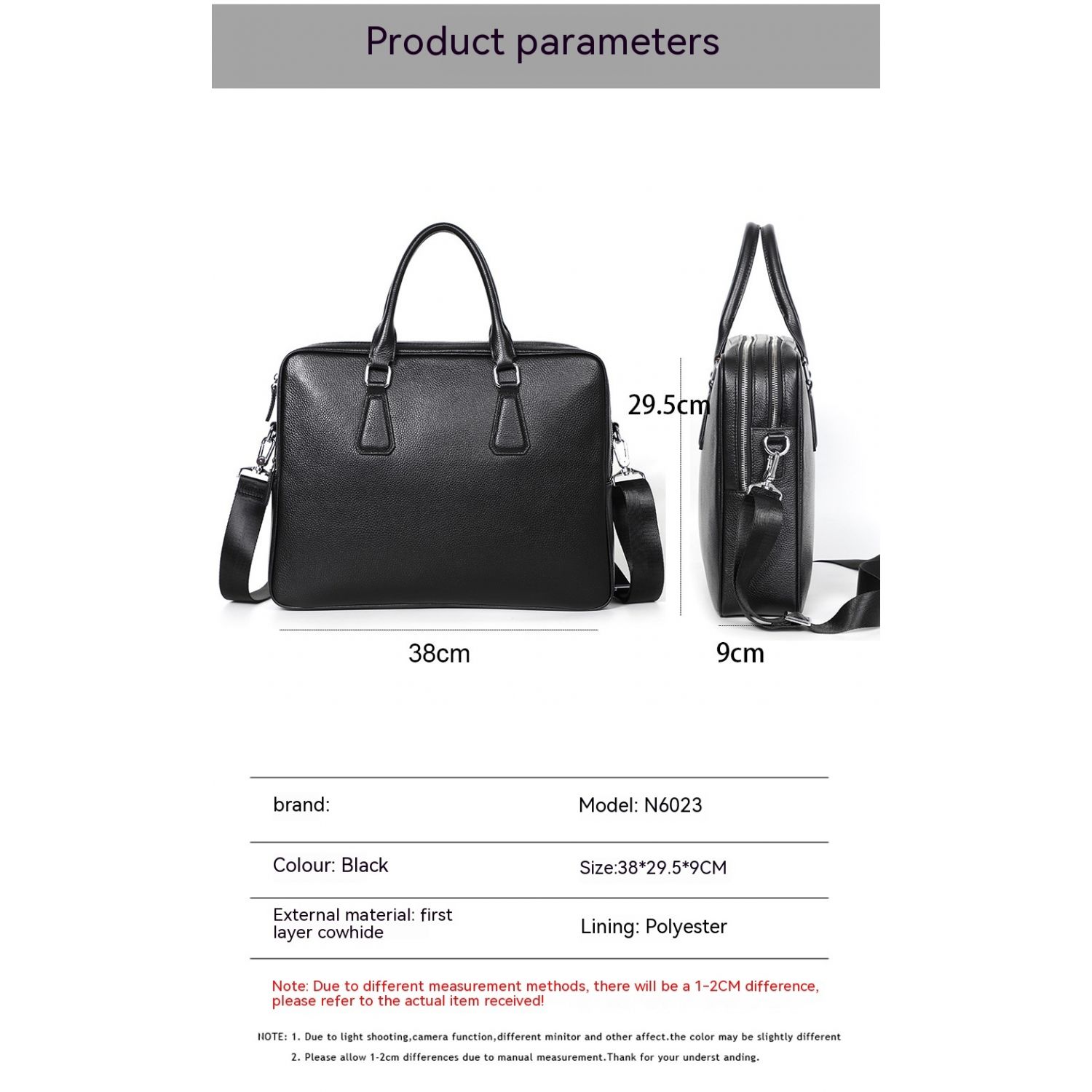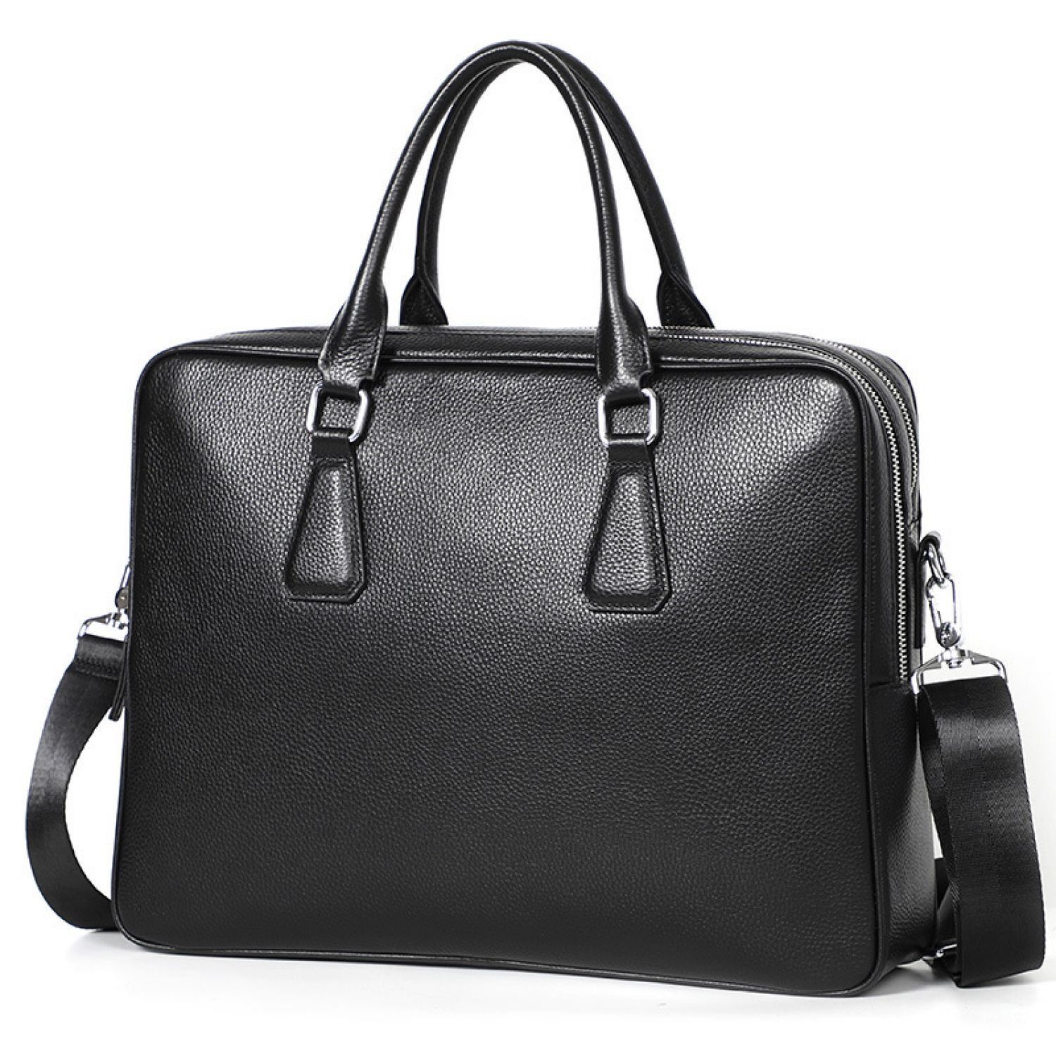 Handbag Men's Leather Briefcase Cowhide Horizontal Large Capacity Black