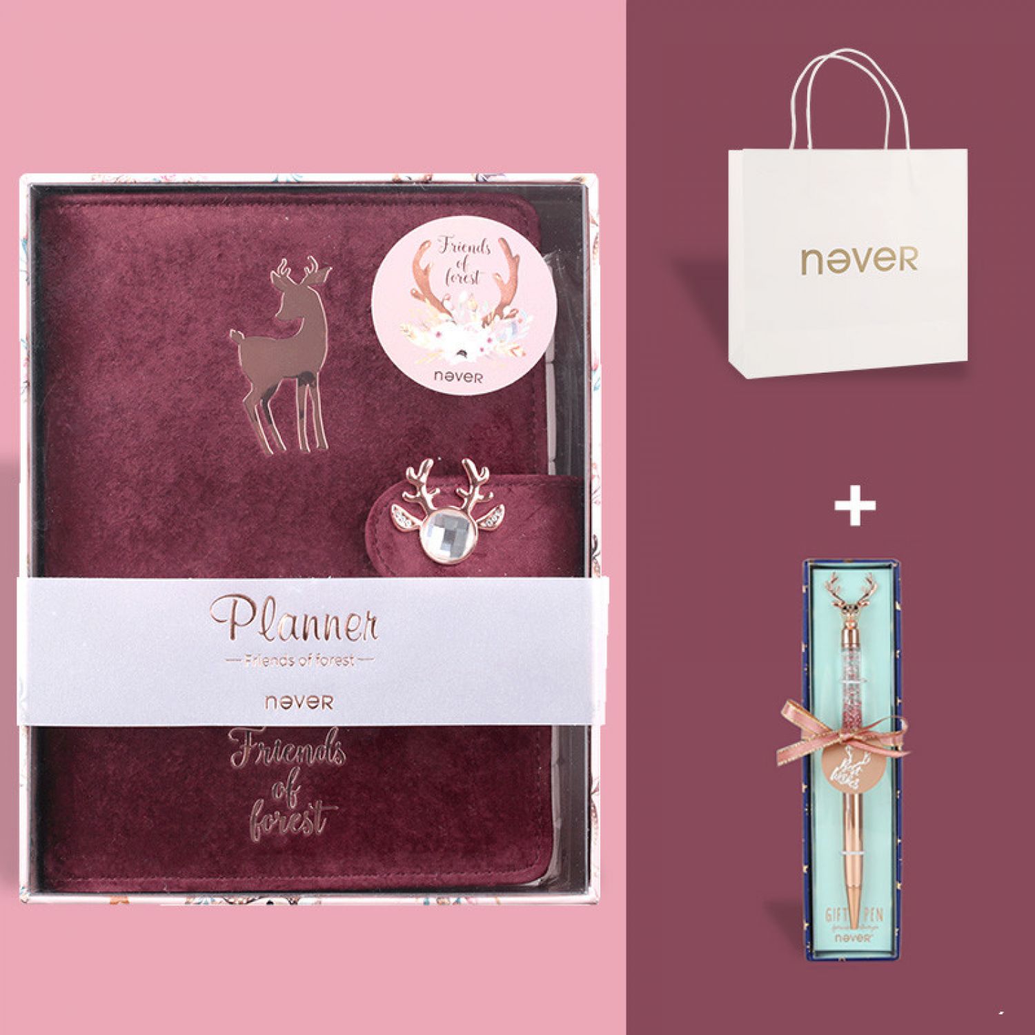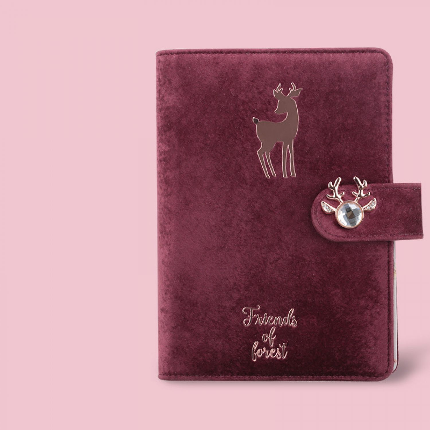 (E) Red Velvet A6 Loose-leaf Book + Quicksand Deer Head Pen-Pink