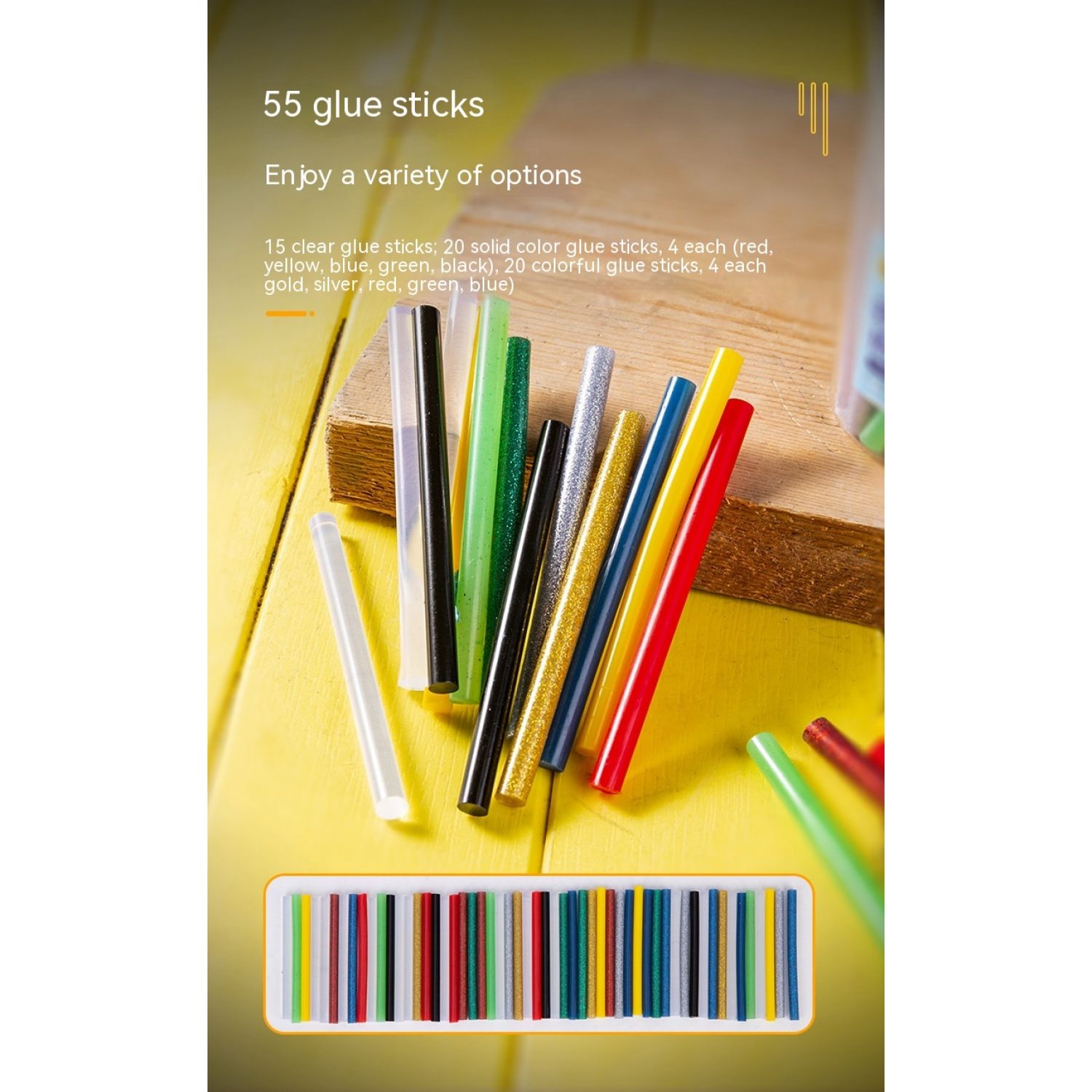 Quantity of glue sticks: 55 pieces