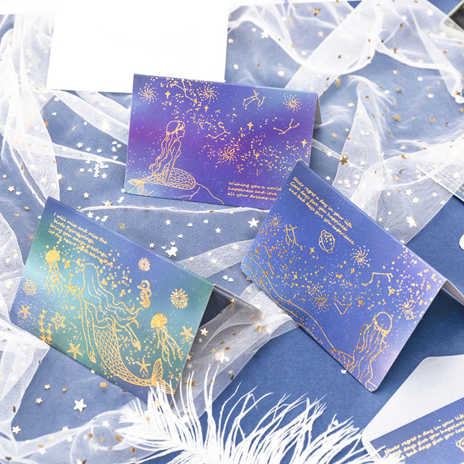 High-end Aesthetic Sulfuric Acid Paper Bronzing Folding Greeting Card Envelope Set Babbling galaxy