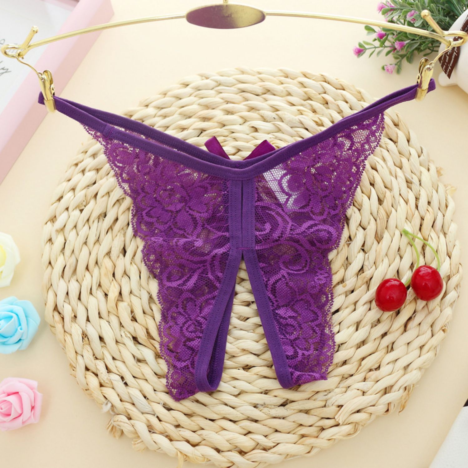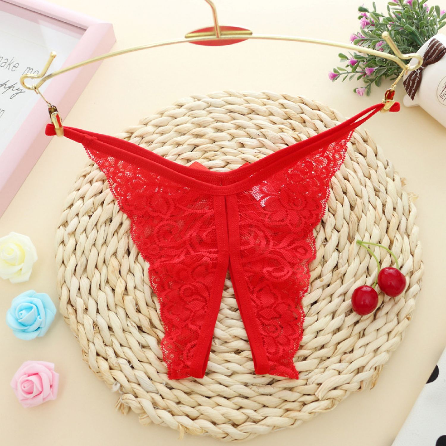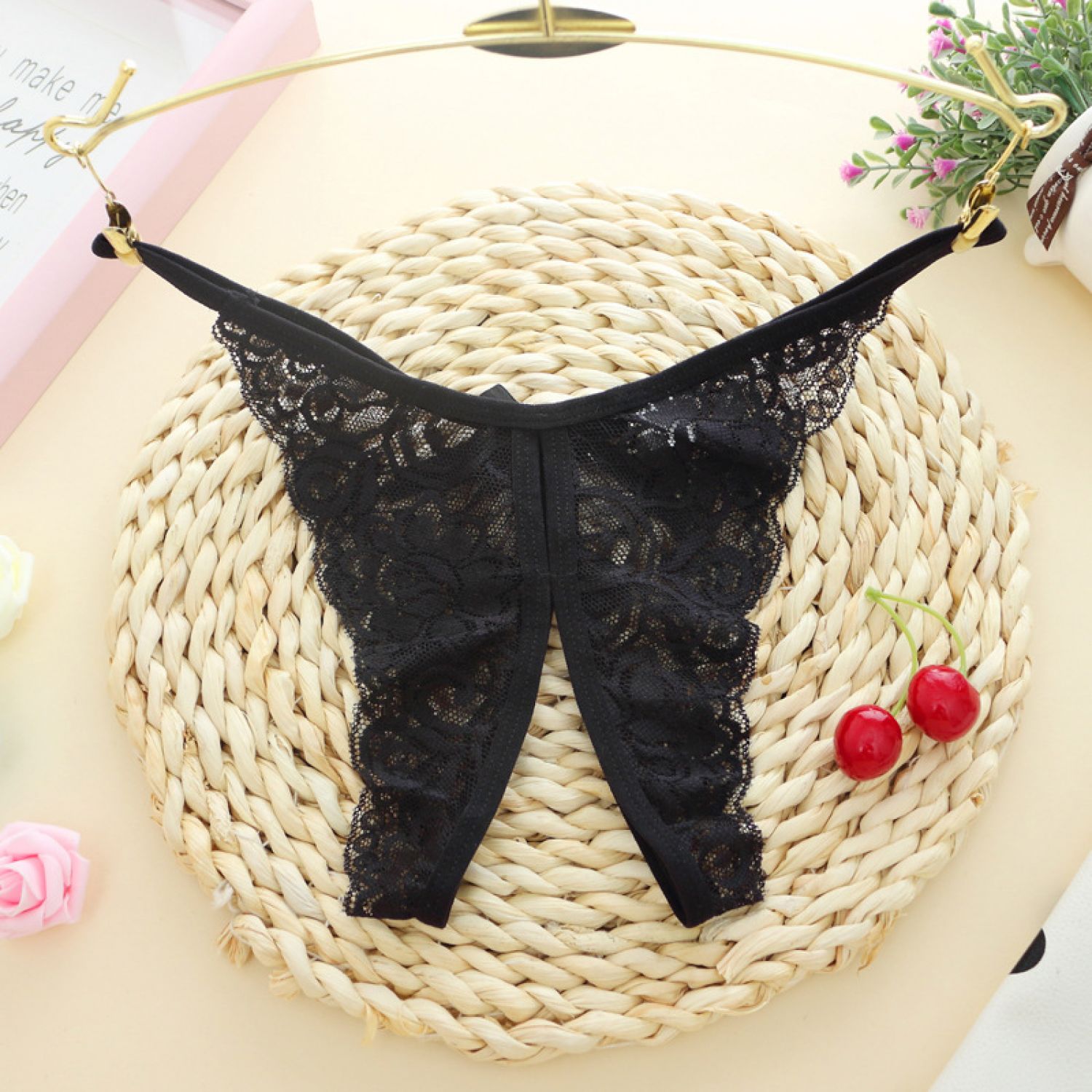 Hollow Out Lace Women's Panties Open Gear See-through Black Average Size