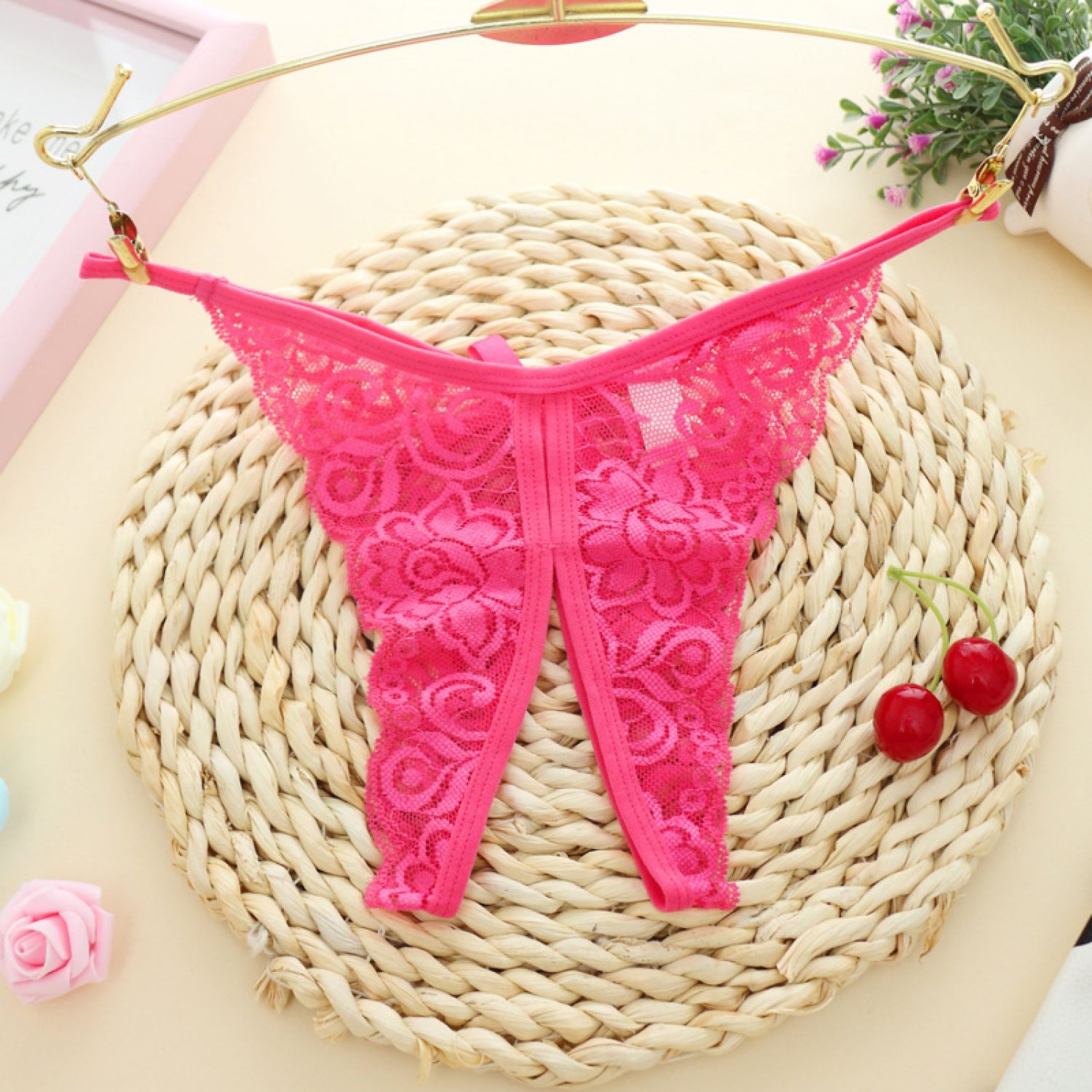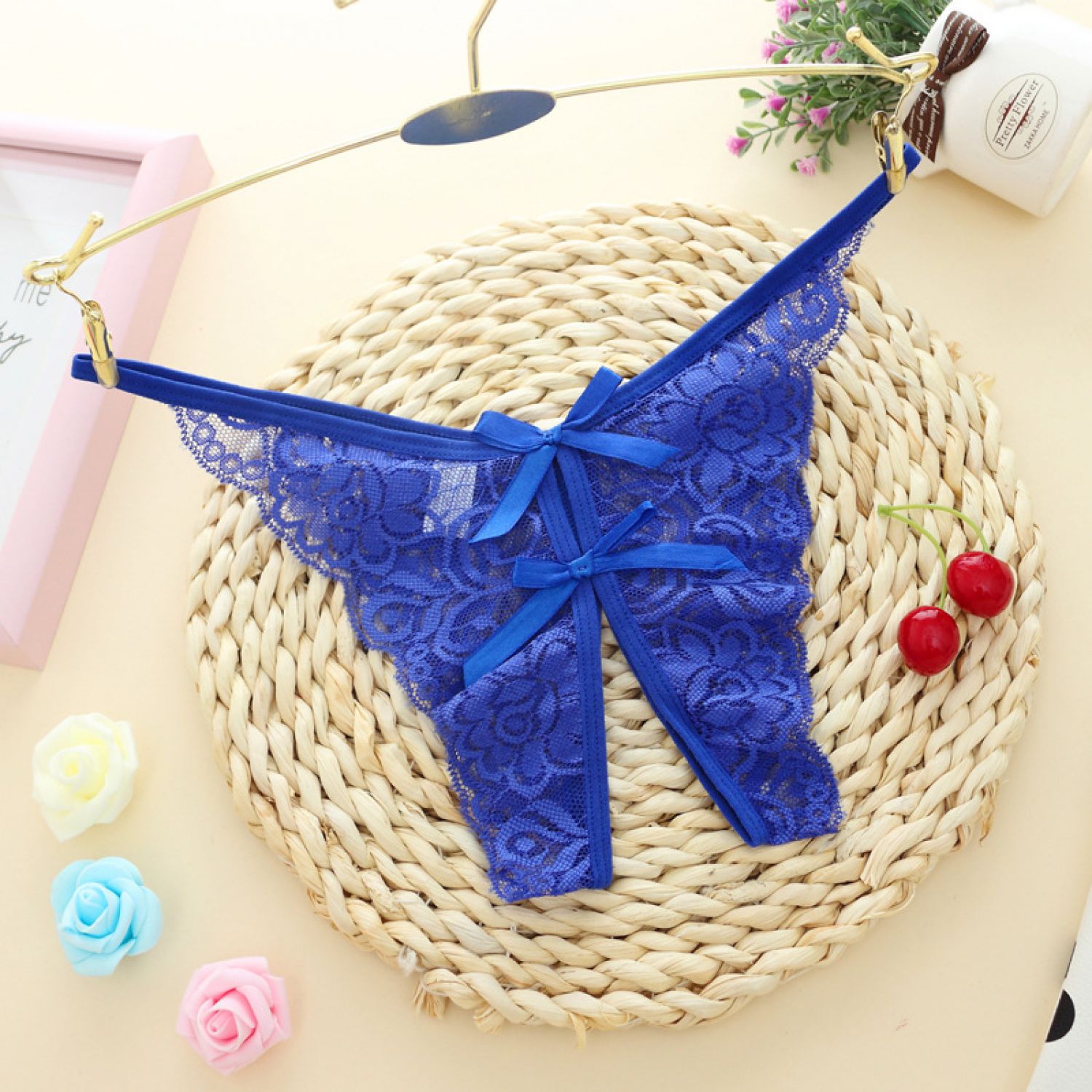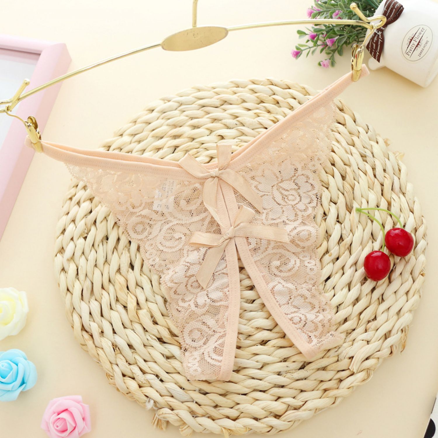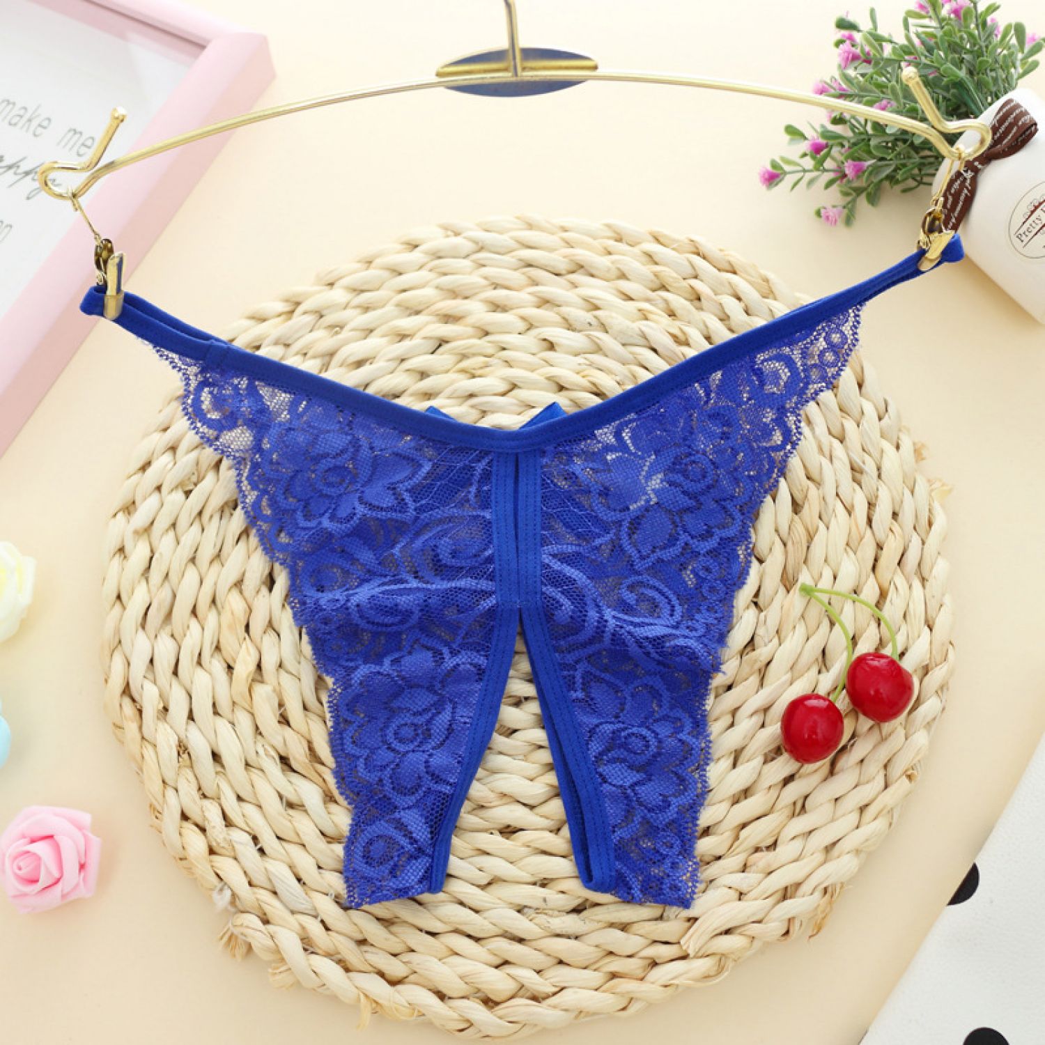 Hollow Out Lace Women's Panties Open Gear See-through Black Average Size