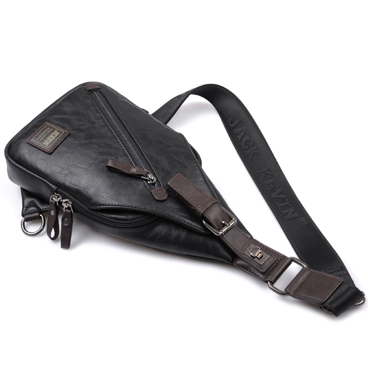 JackKevin Men's Fashion Crossbody Bag Theftproof Rotatable Button Open Leather Chest Bags Men Shoulder Bags Chest Waist Pack