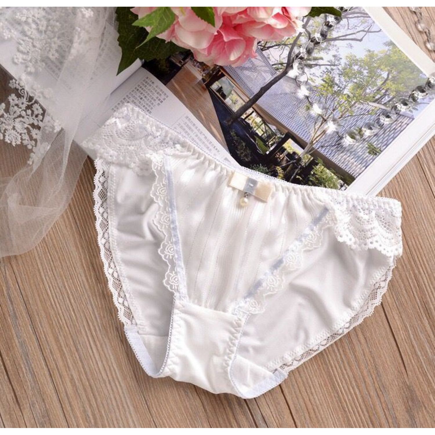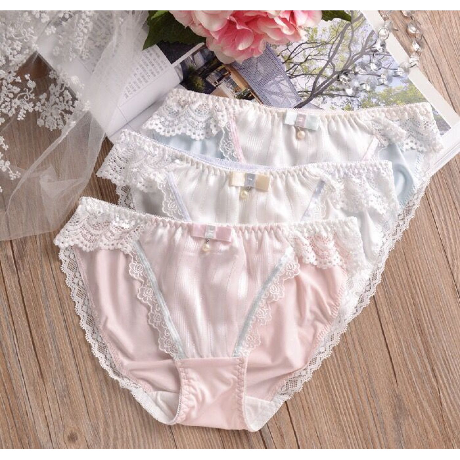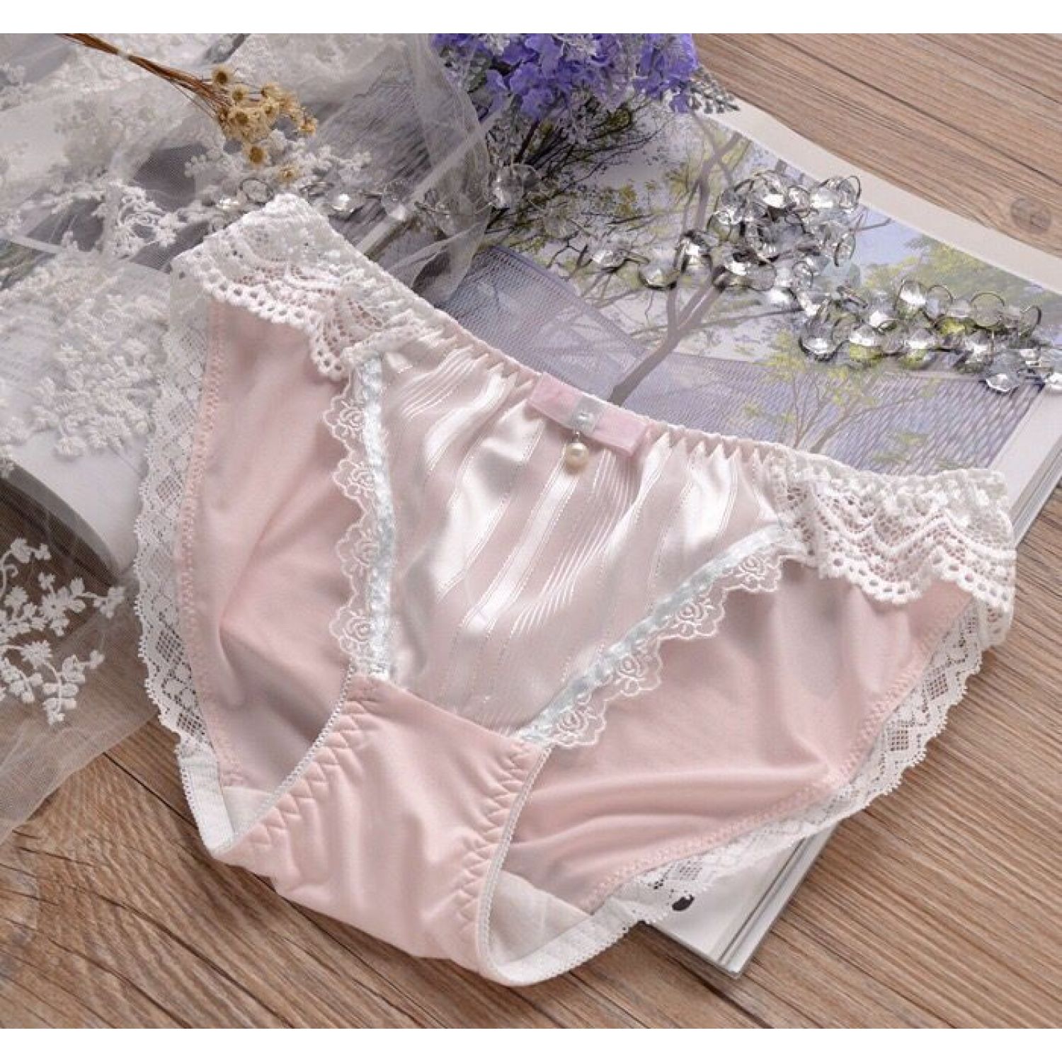 Design features: cutout, bow, ribbon, jacquard, lace trim