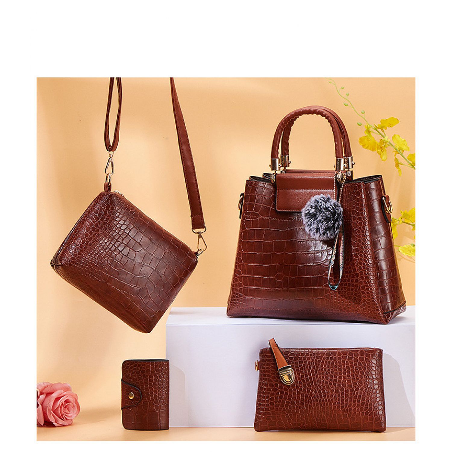 | E; four-piece brown portable red | L; Single bag brown portable snake print | ||