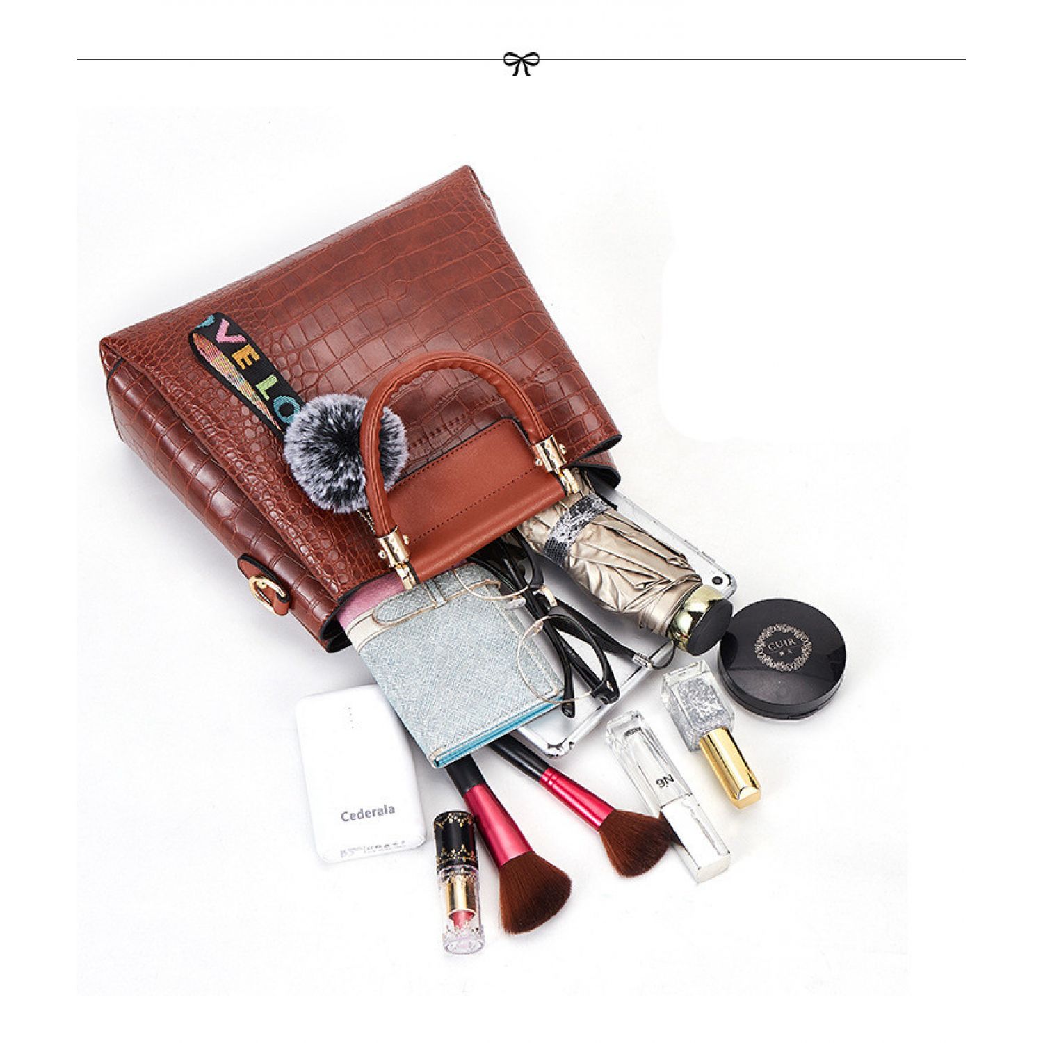 | C; four-piece black portable snake print | J; single bag brown all brown | ||