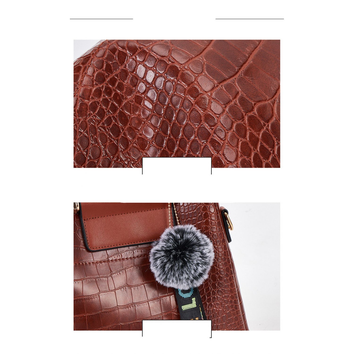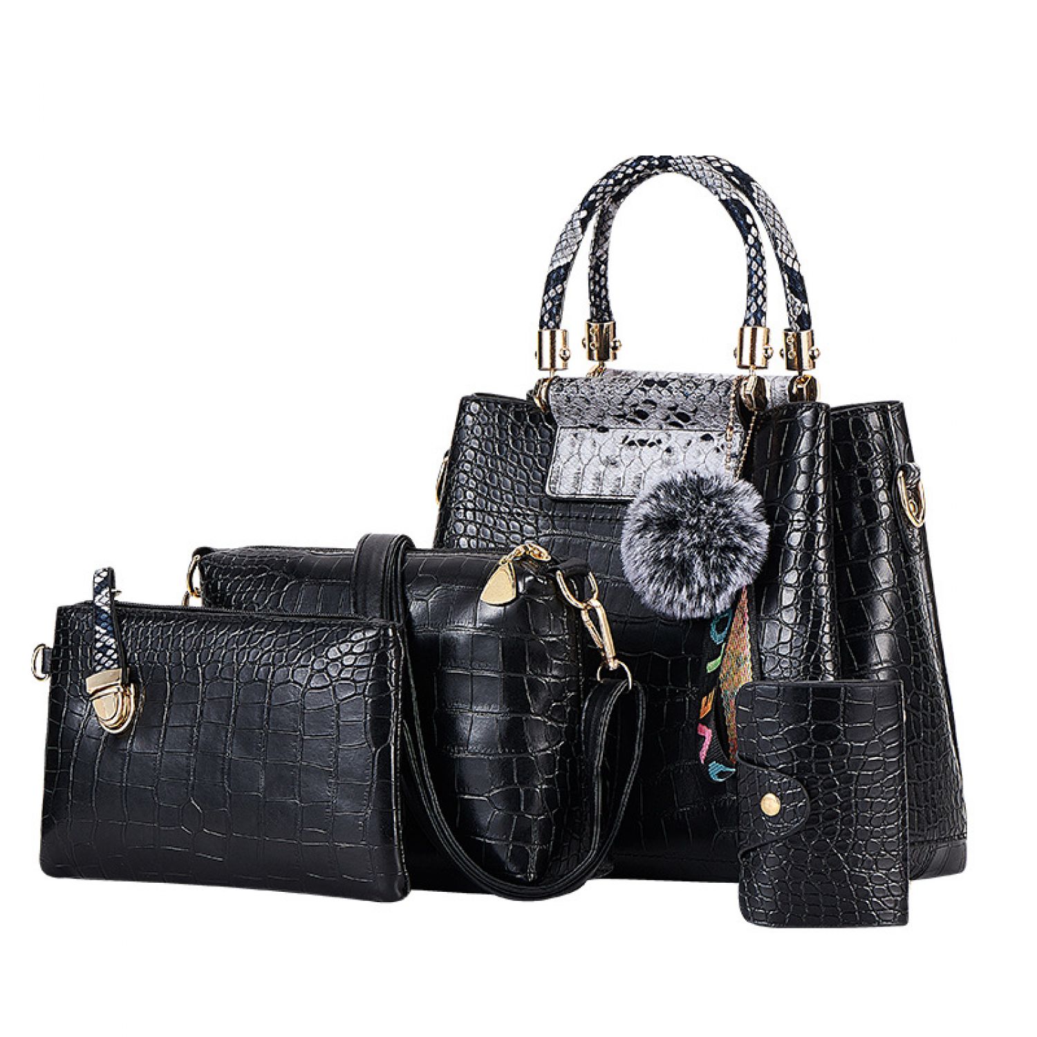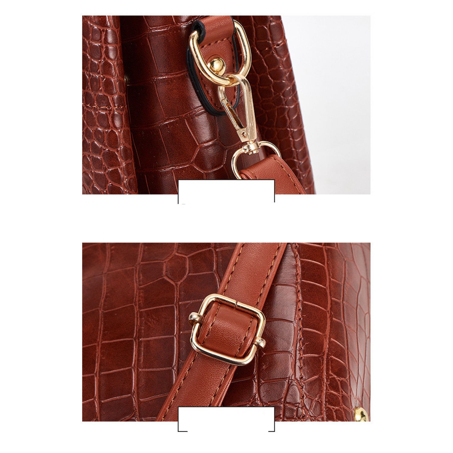 | F; Four-piece brown portable snake print | M; stitching black single bag | ||