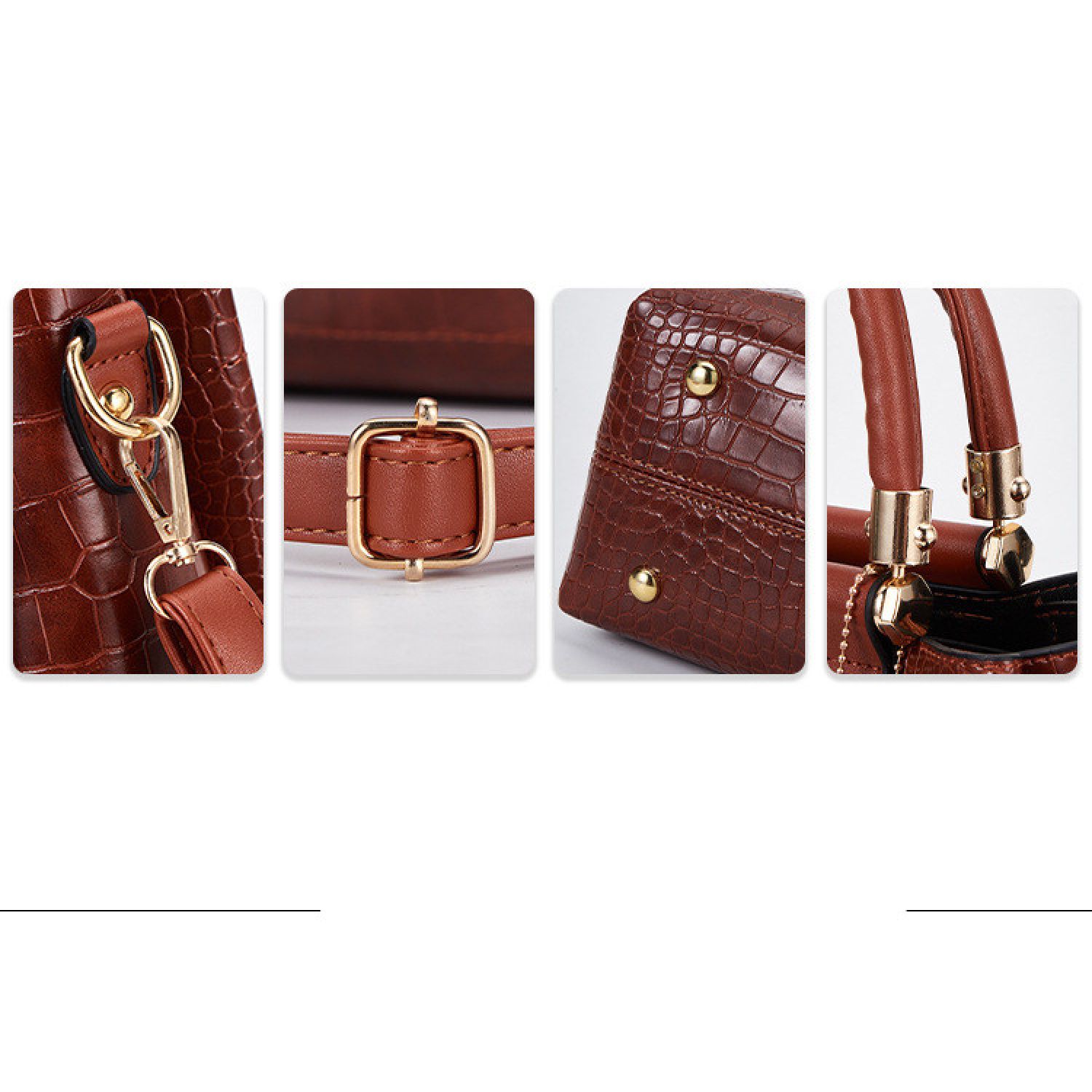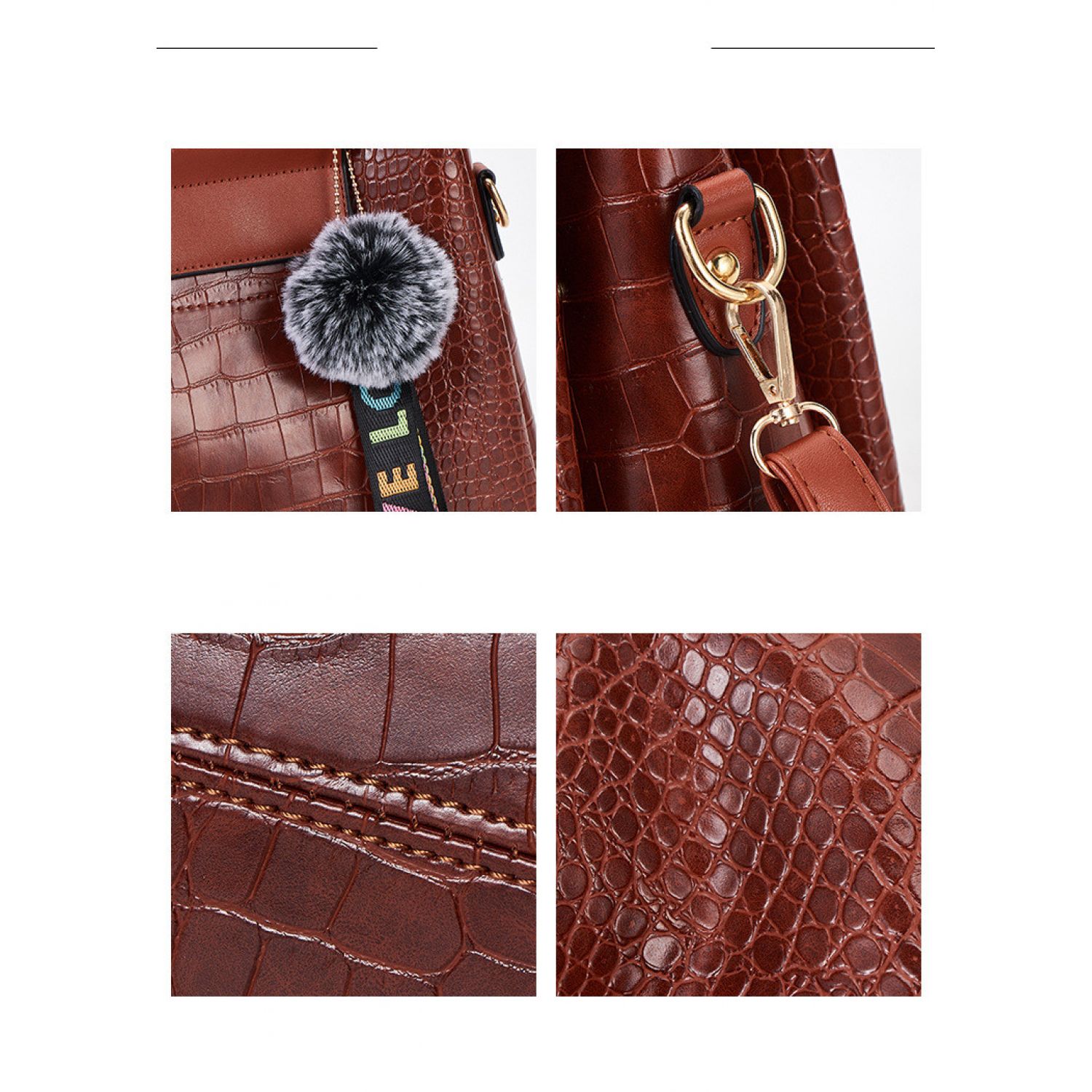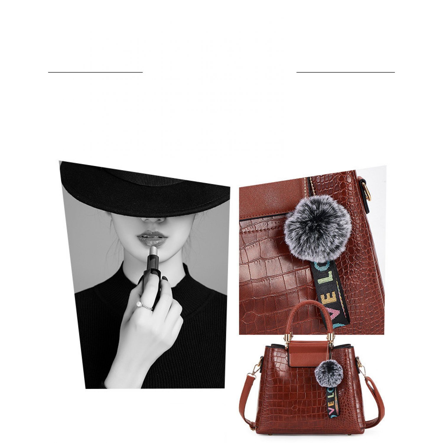 | F; Four-piece brown portable snake print | M; stitching black single bag | ||
