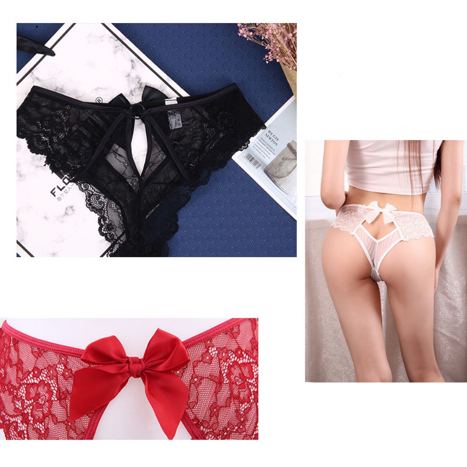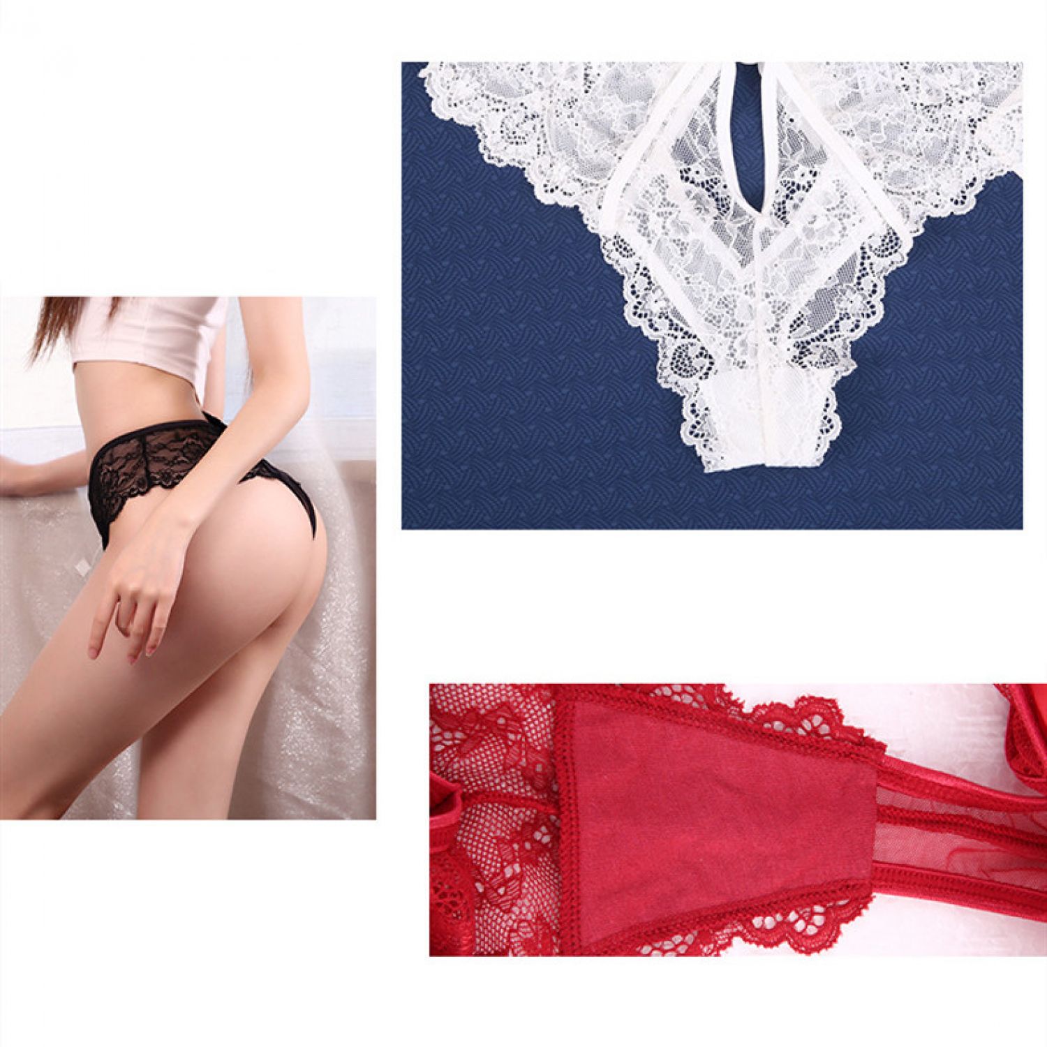 Lace Buttocks Hollow Ladies High Waist Panties White M