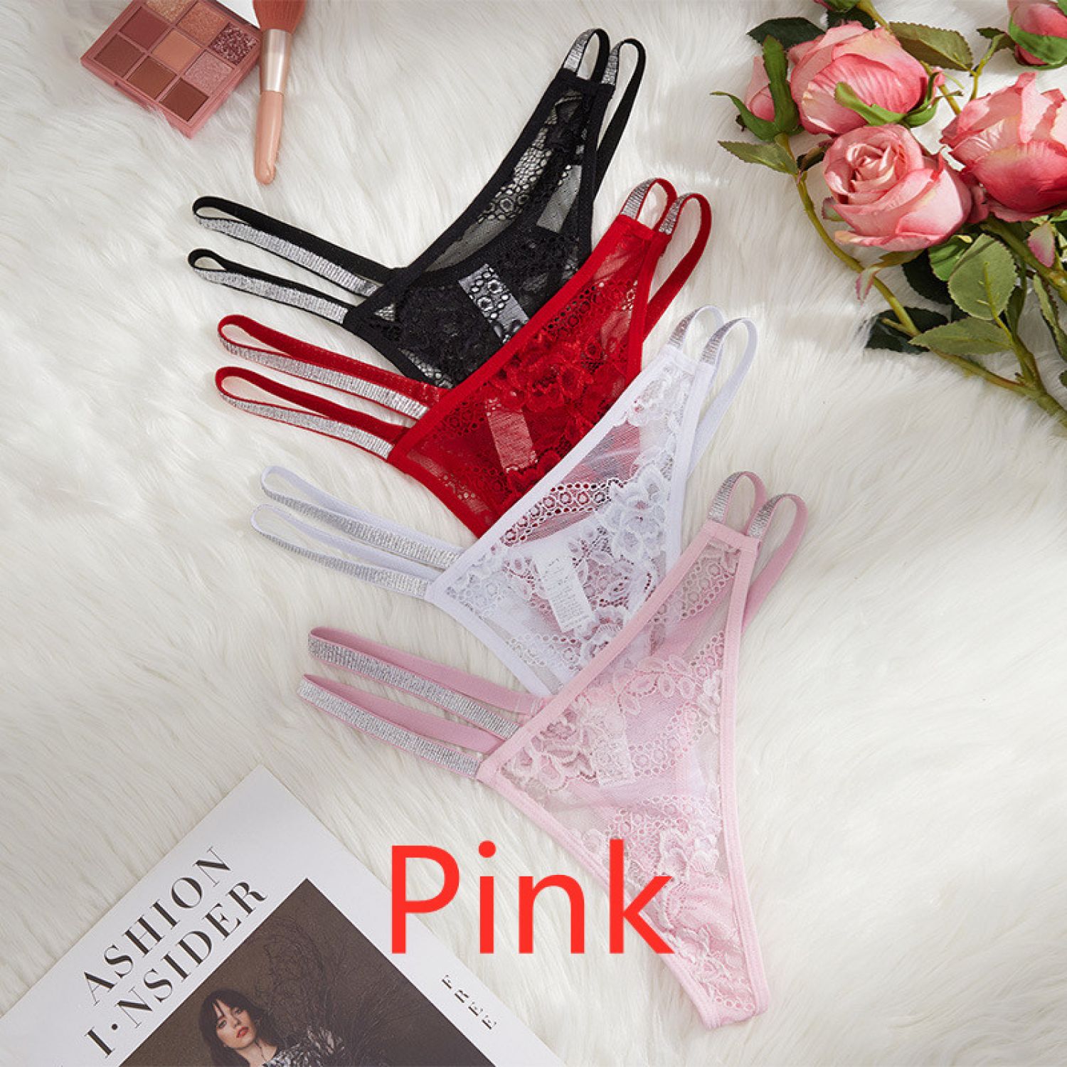 Color: black, white, pink, red