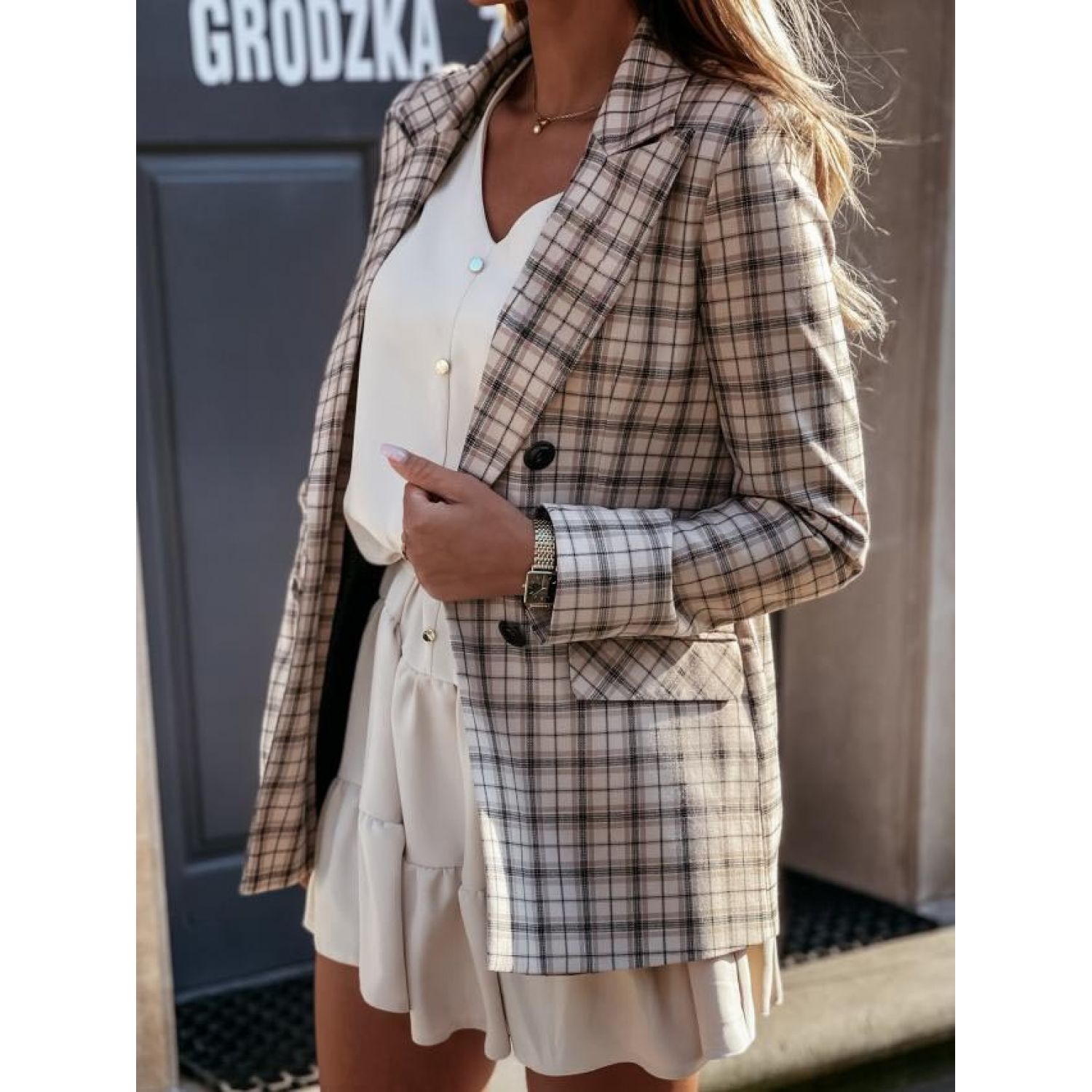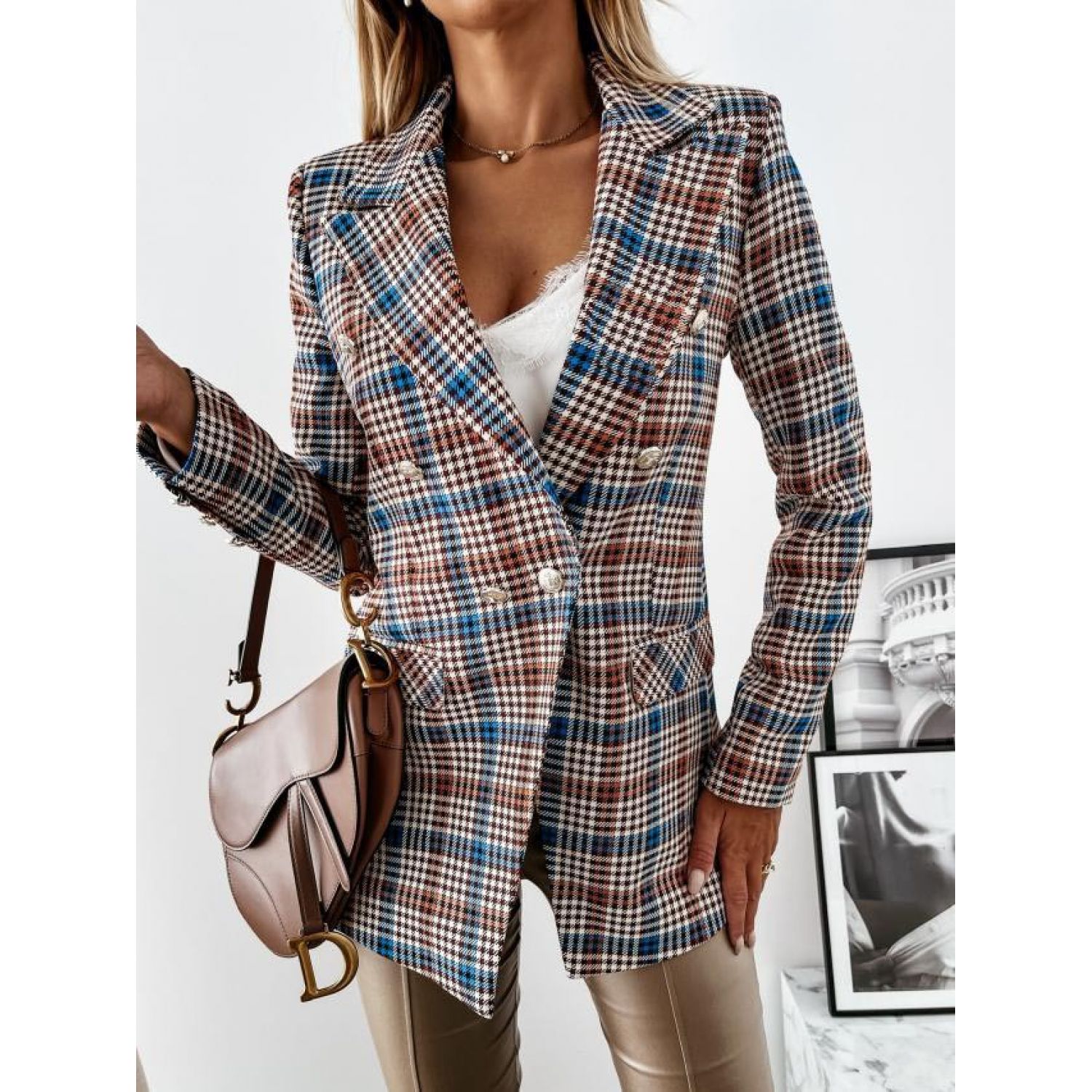 Color: black, blue grid, khaki grid, houndstooth grid