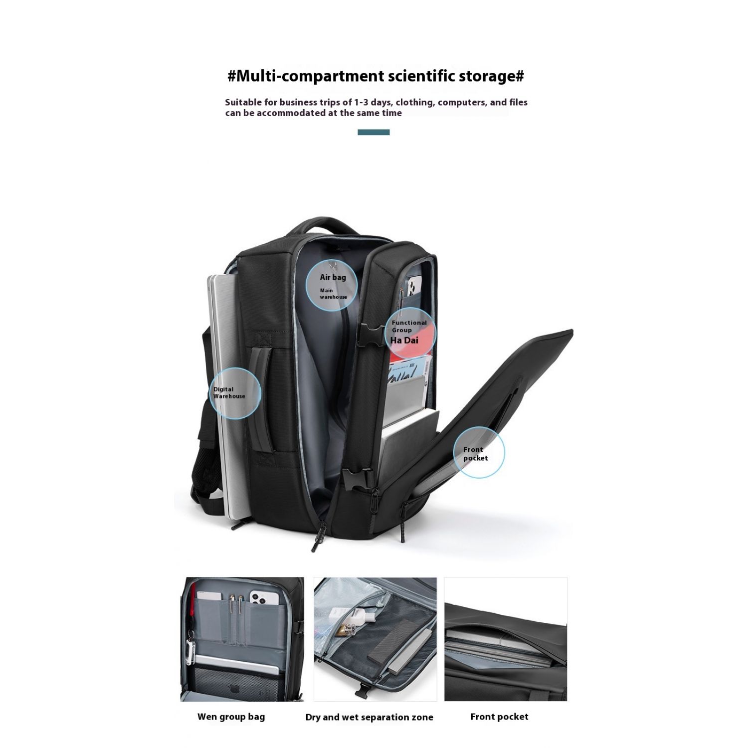 Large Capacity Business Oxford Cloth Vacuum Storage Backpack Black