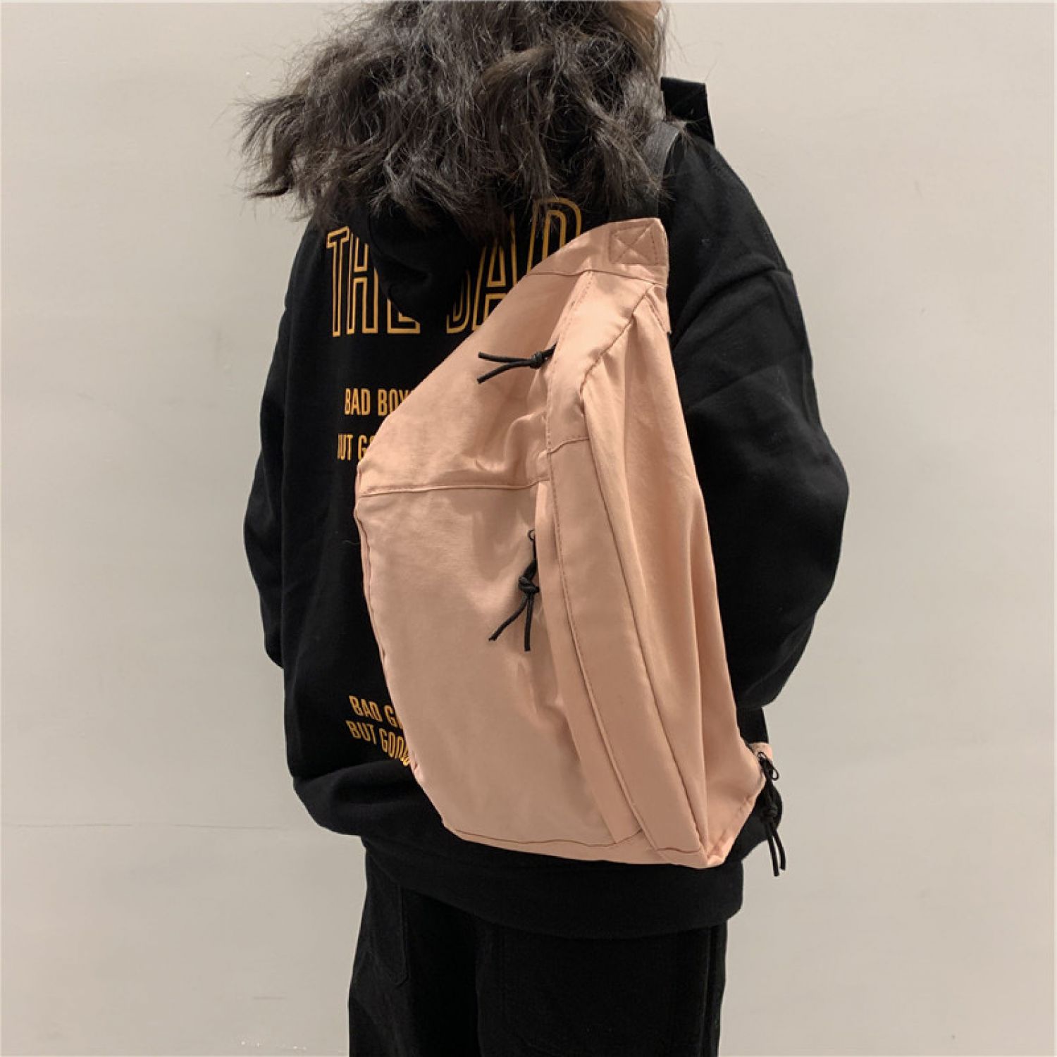 Large-capacity Canvas Chest Bag Messenger Bag Korean Fashion Casual Sports Women's Bag Big pink