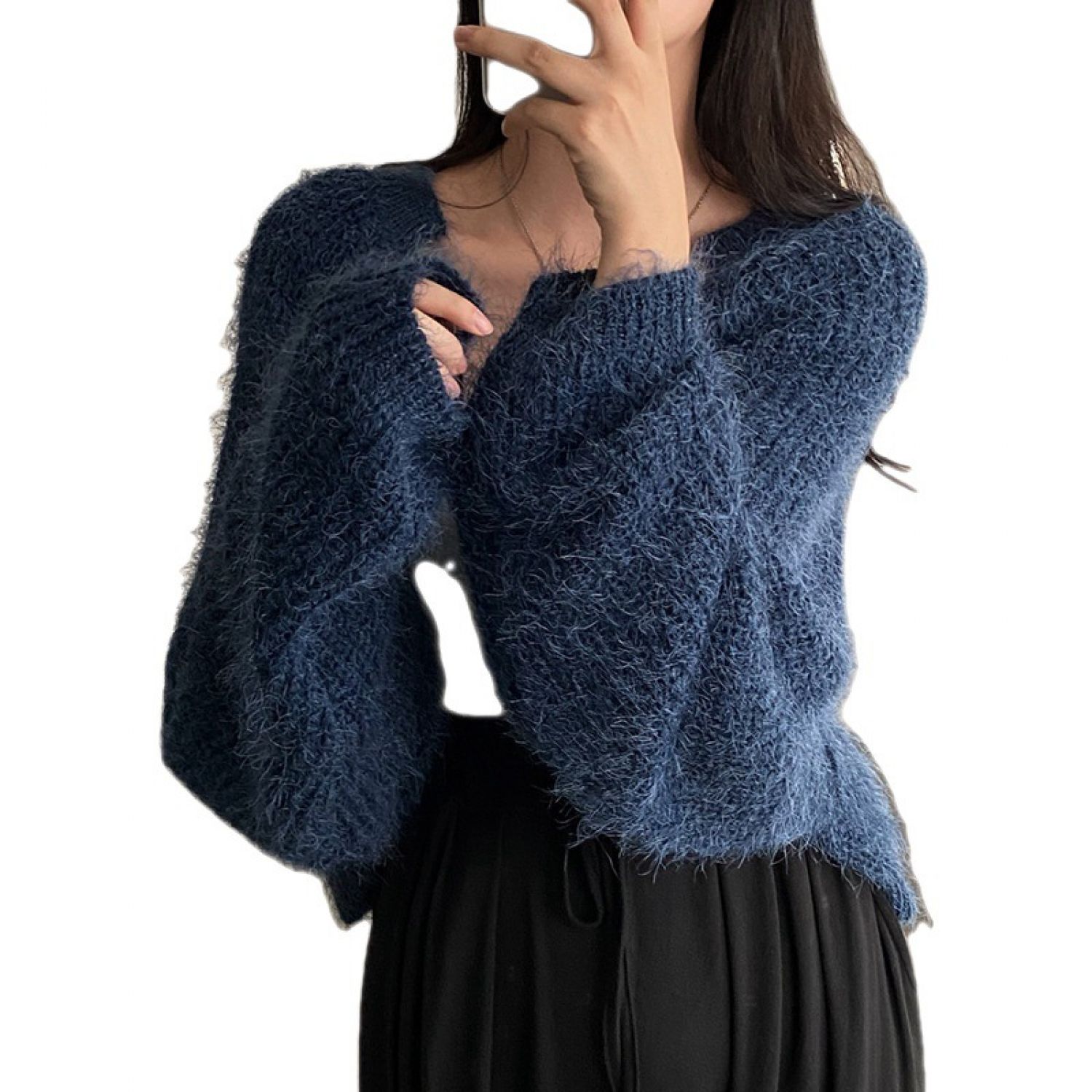 Lazy Fashion Knitted Cardigan For Women Navy Blue Free Size
