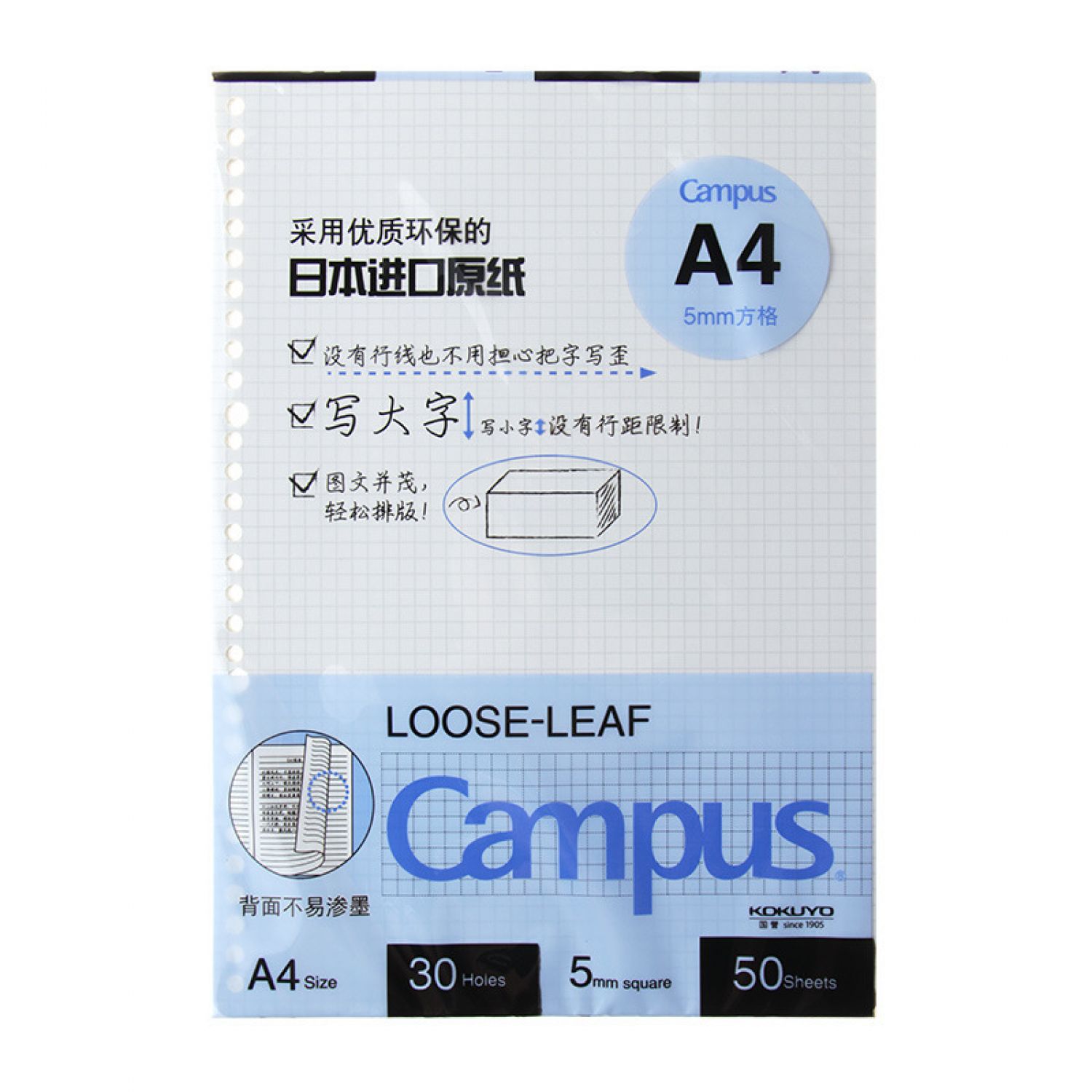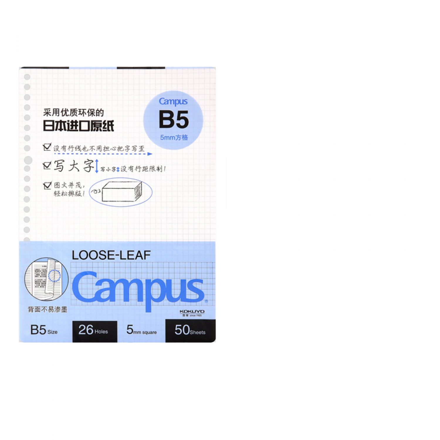 Style J: B5/50 sheets 5mm full square loose-leaf core