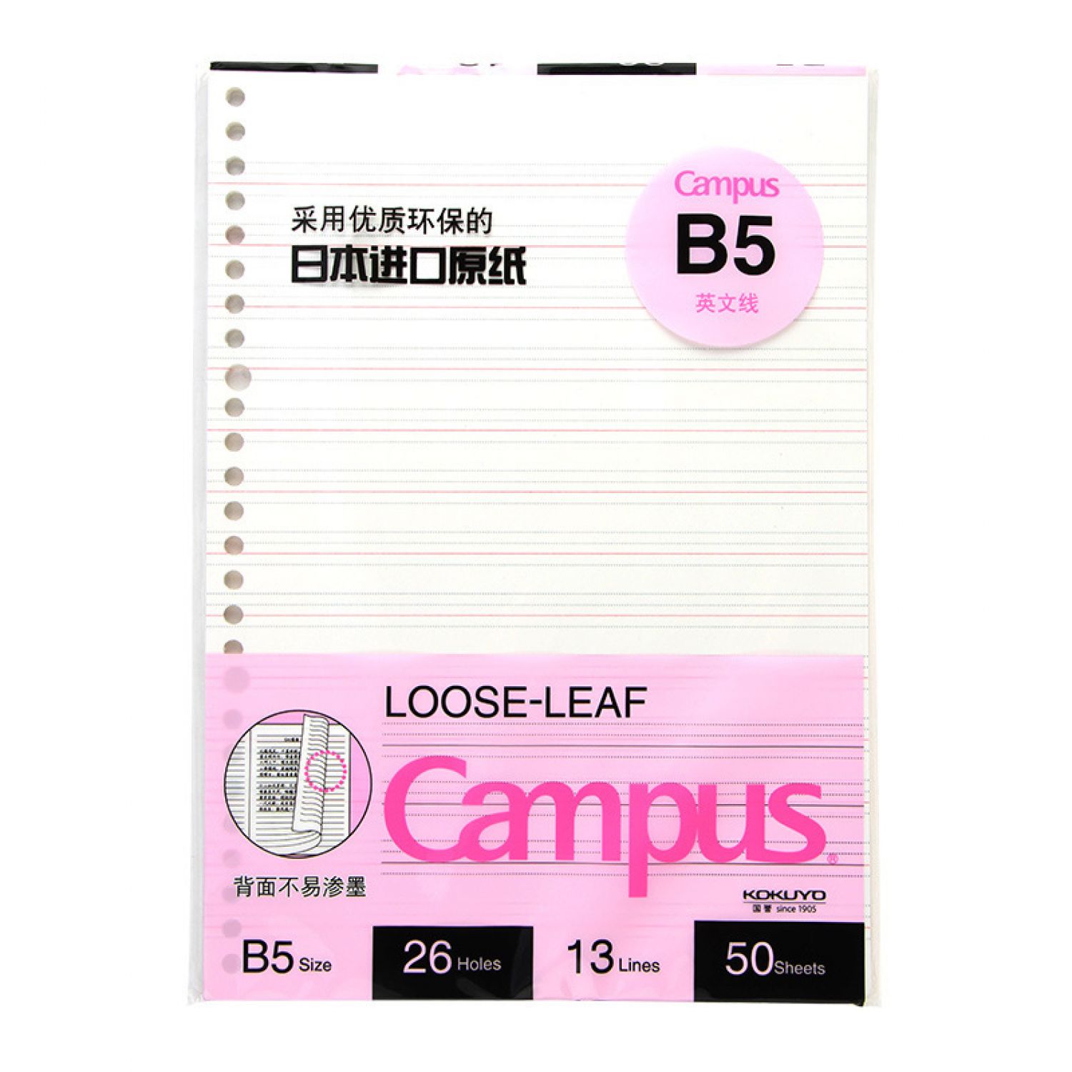 Style H: B5/50 sheets English line loose-leaf core