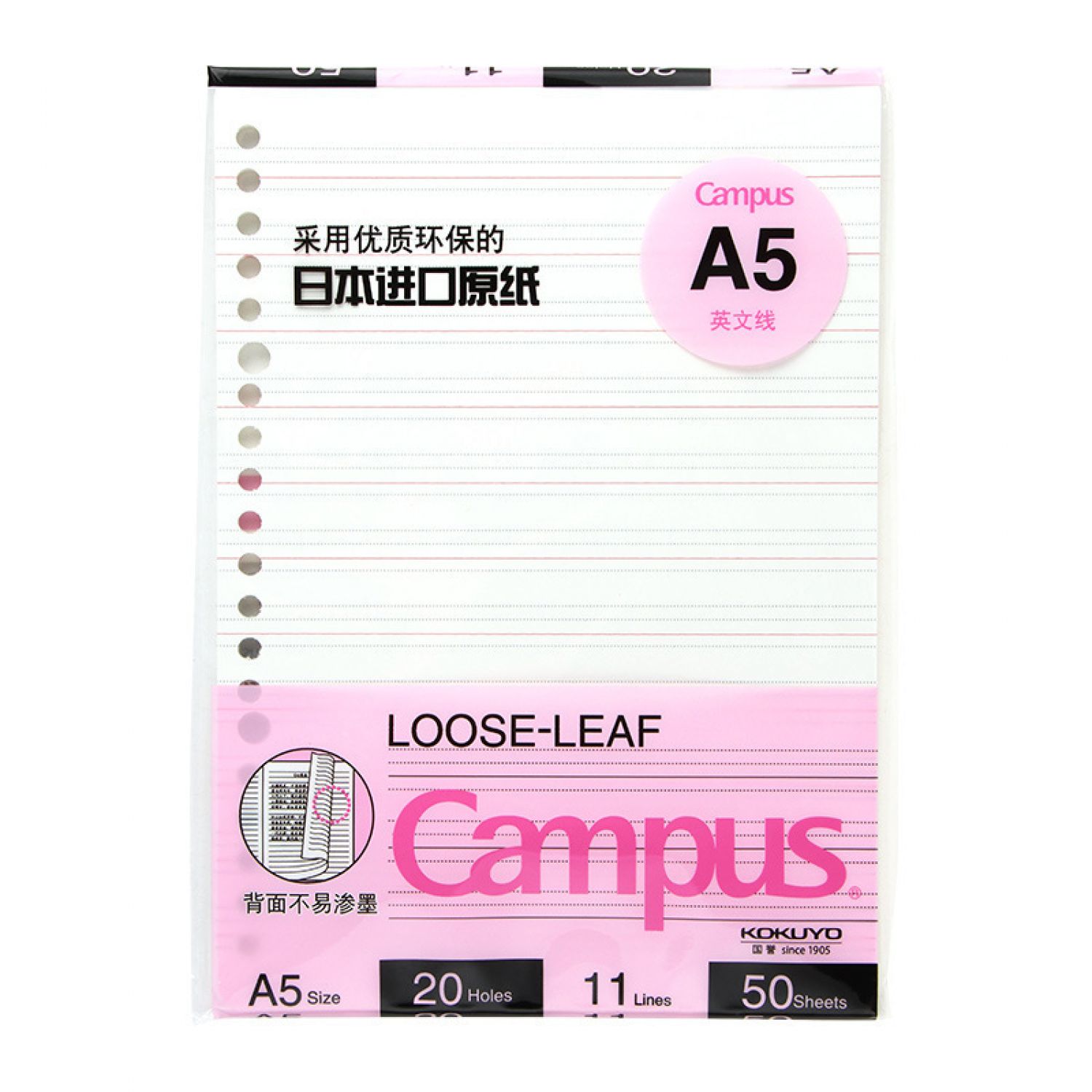 Style K: A5/50 sheets English line loose-leaf core