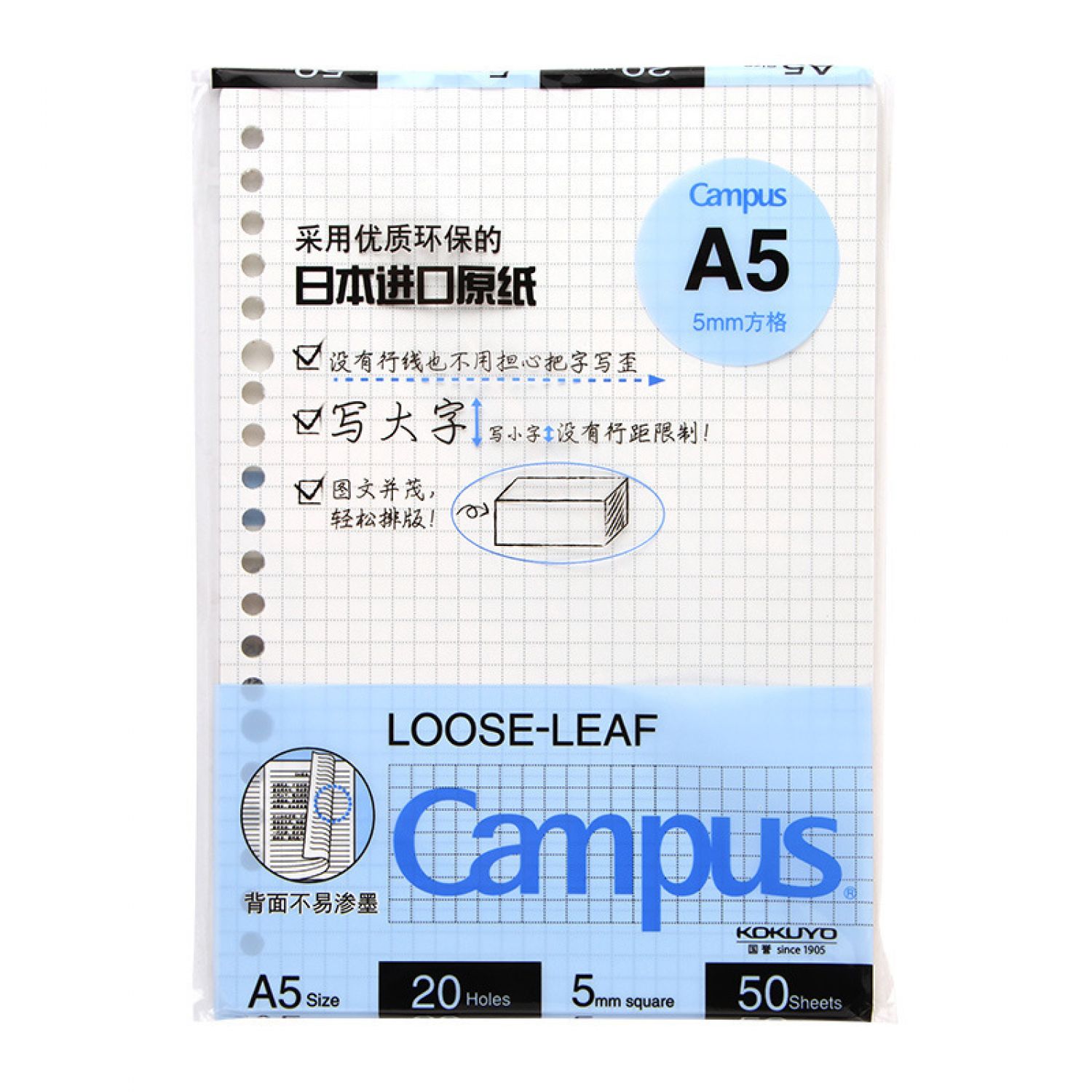 Style L: A5/50 sheets 5mm full square loose-leaf core