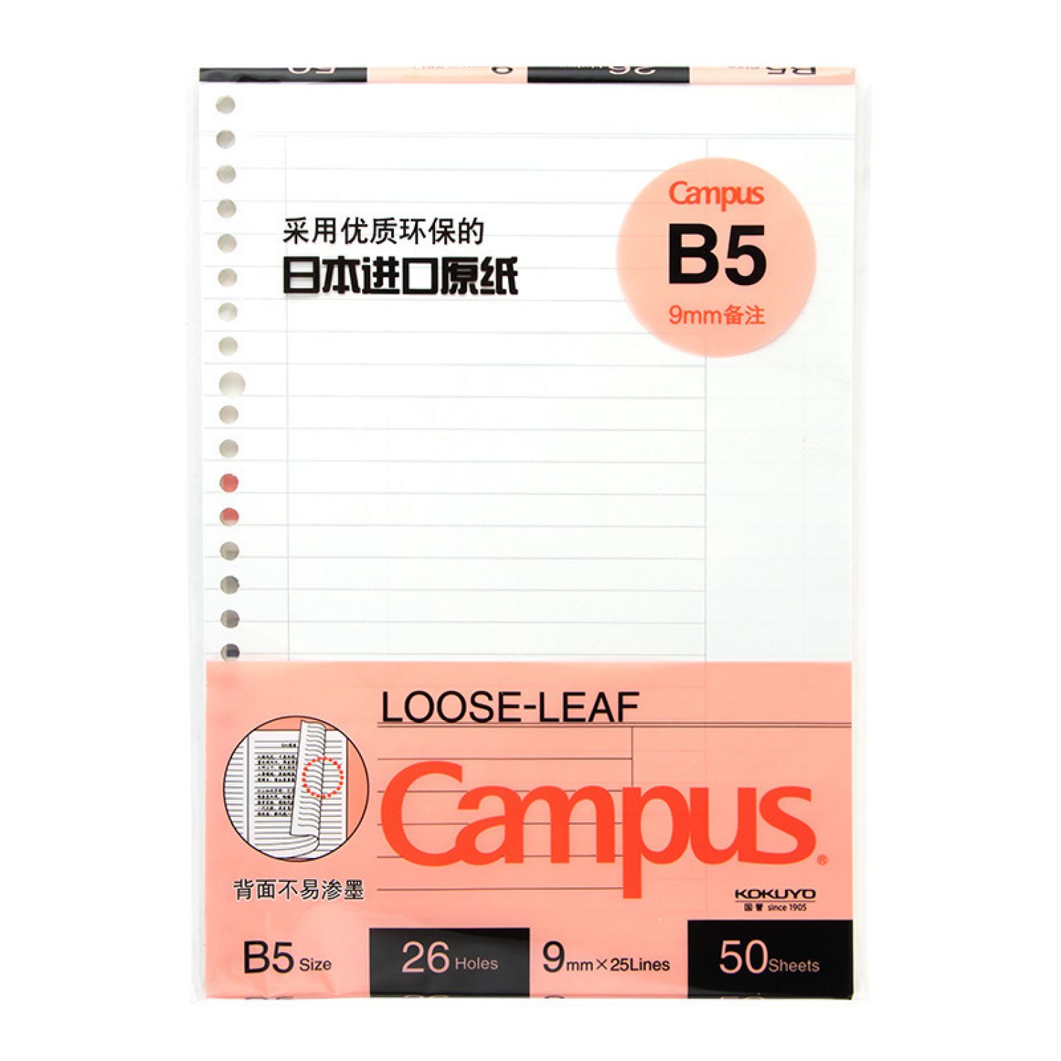 Style A: B5/50 sheets 9mm full remarks loose-leaf core