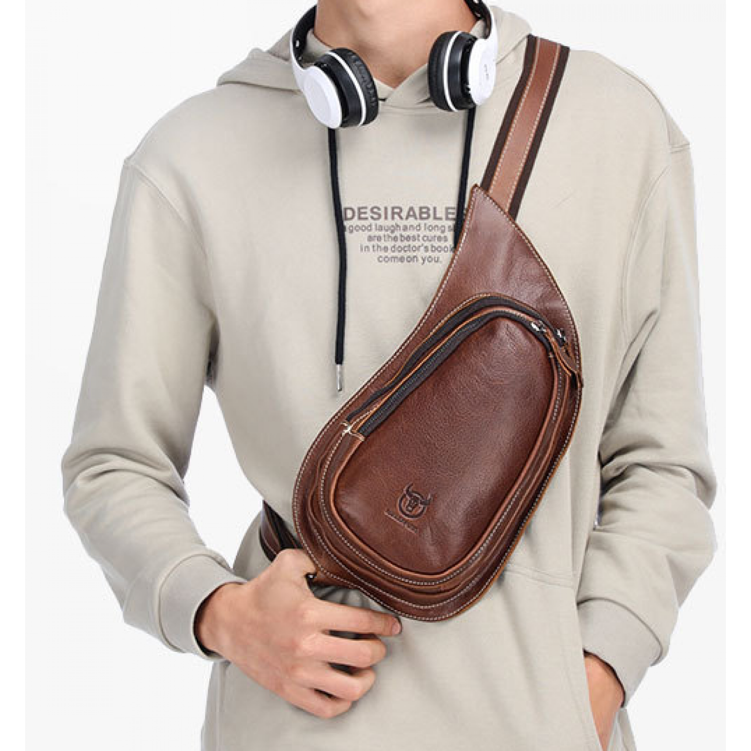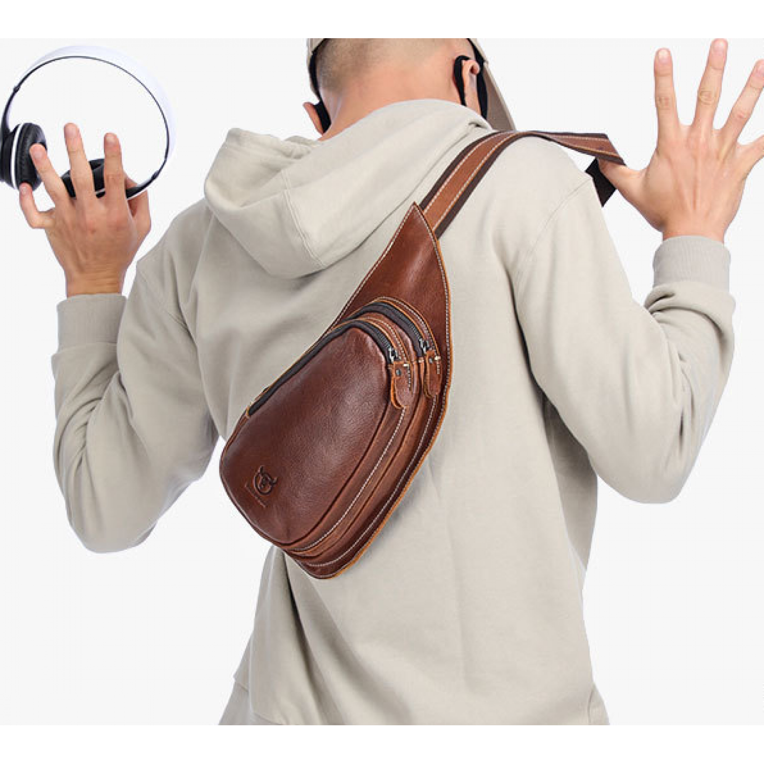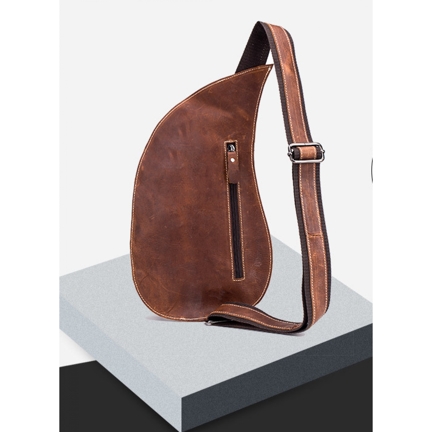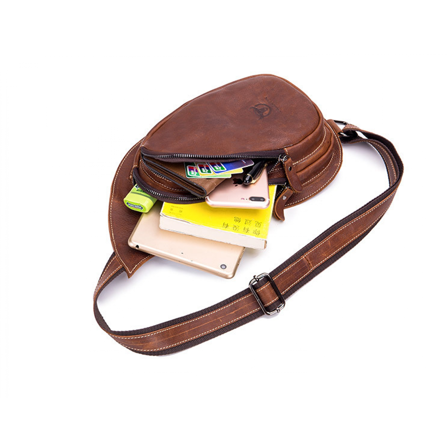Leather Goods New Crazy Horse Leather Chest Bag Genuine Leather Men Brown