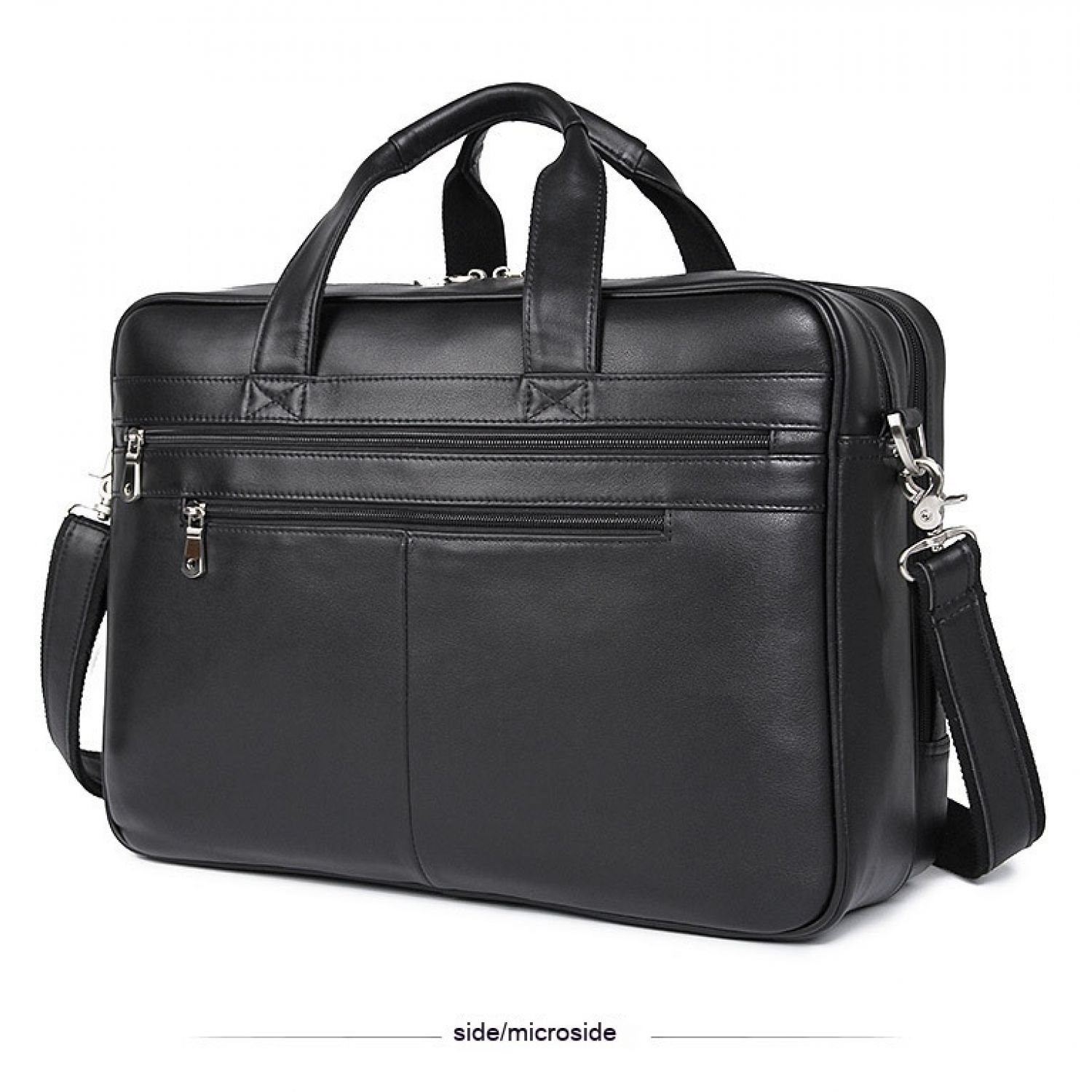 Leather Handbag Briefcase Napa Leather Comfortable Texture Men's Real-leather Bag Black