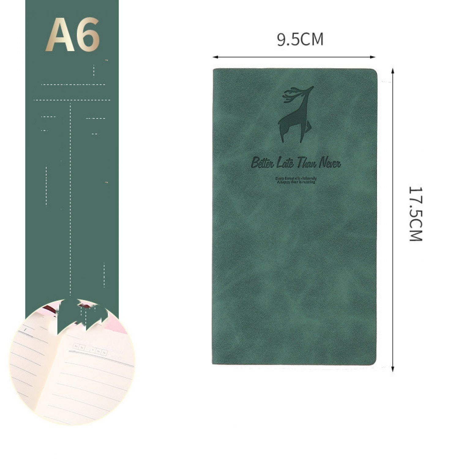Leather-like Business Office Notebook Green soft leather A6