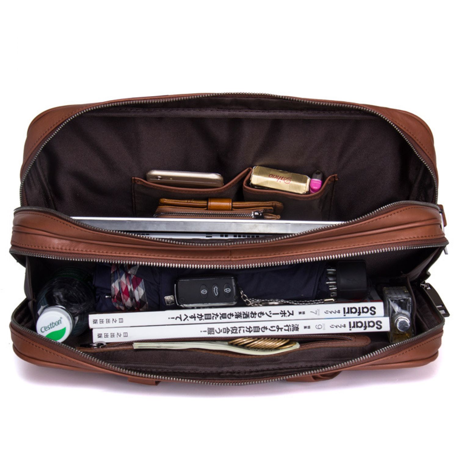 Leather Men's Business Briefcase Multifunctional Brown