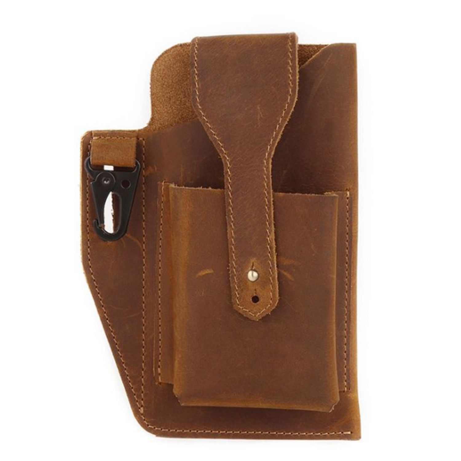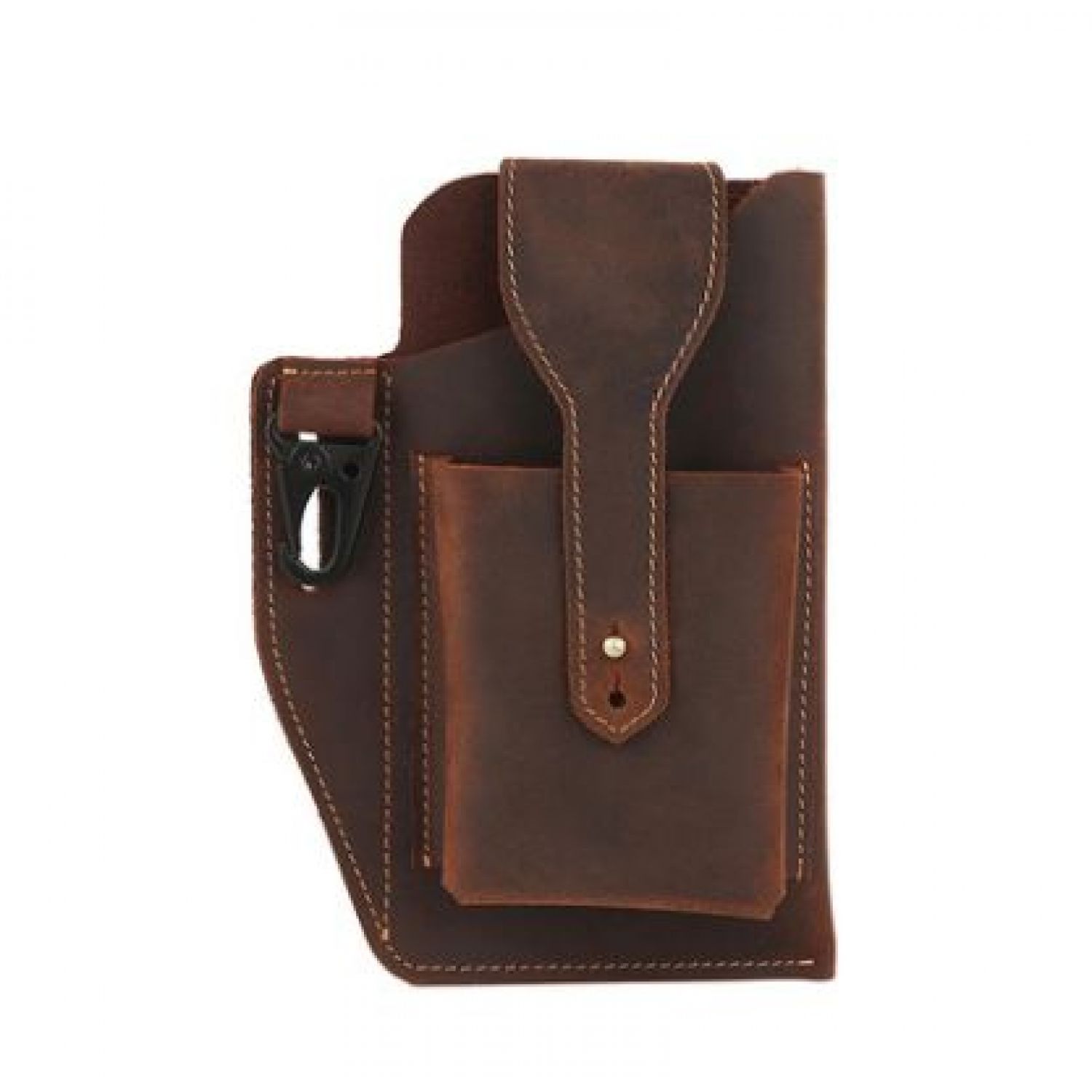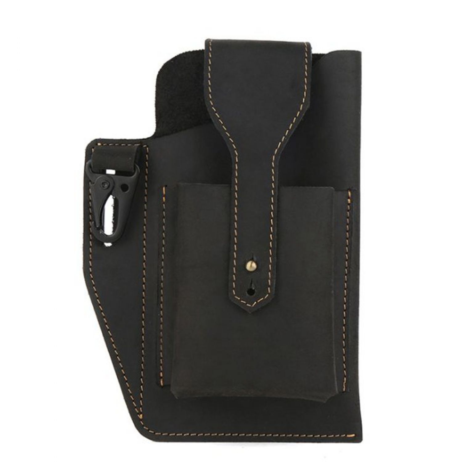 Leather Phone Bag Men's Leather Belt Pockets Black