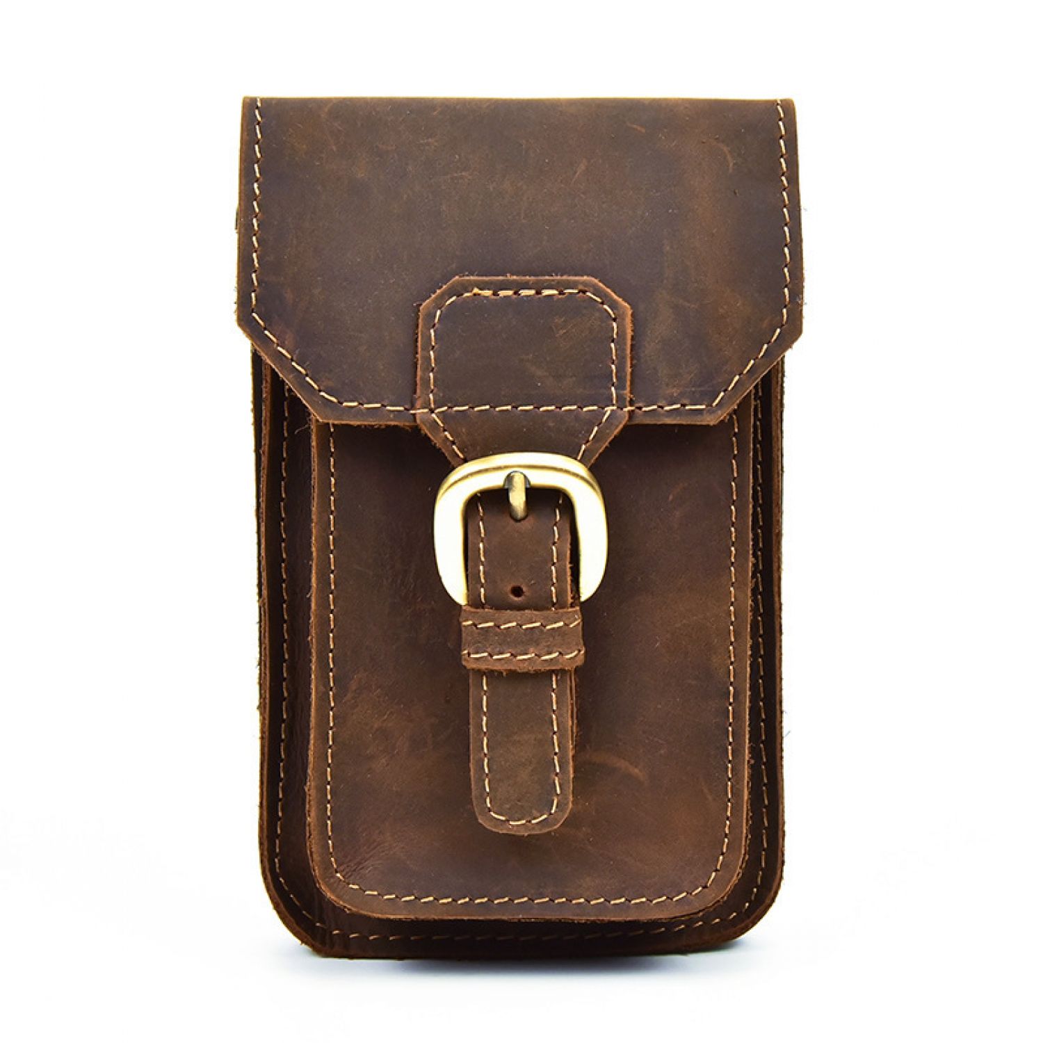 Leather Phone Bag Mini Men's Waist Bag Close-Fitting Brown magnetic buckle