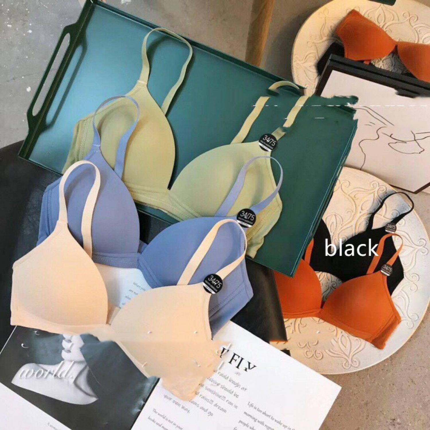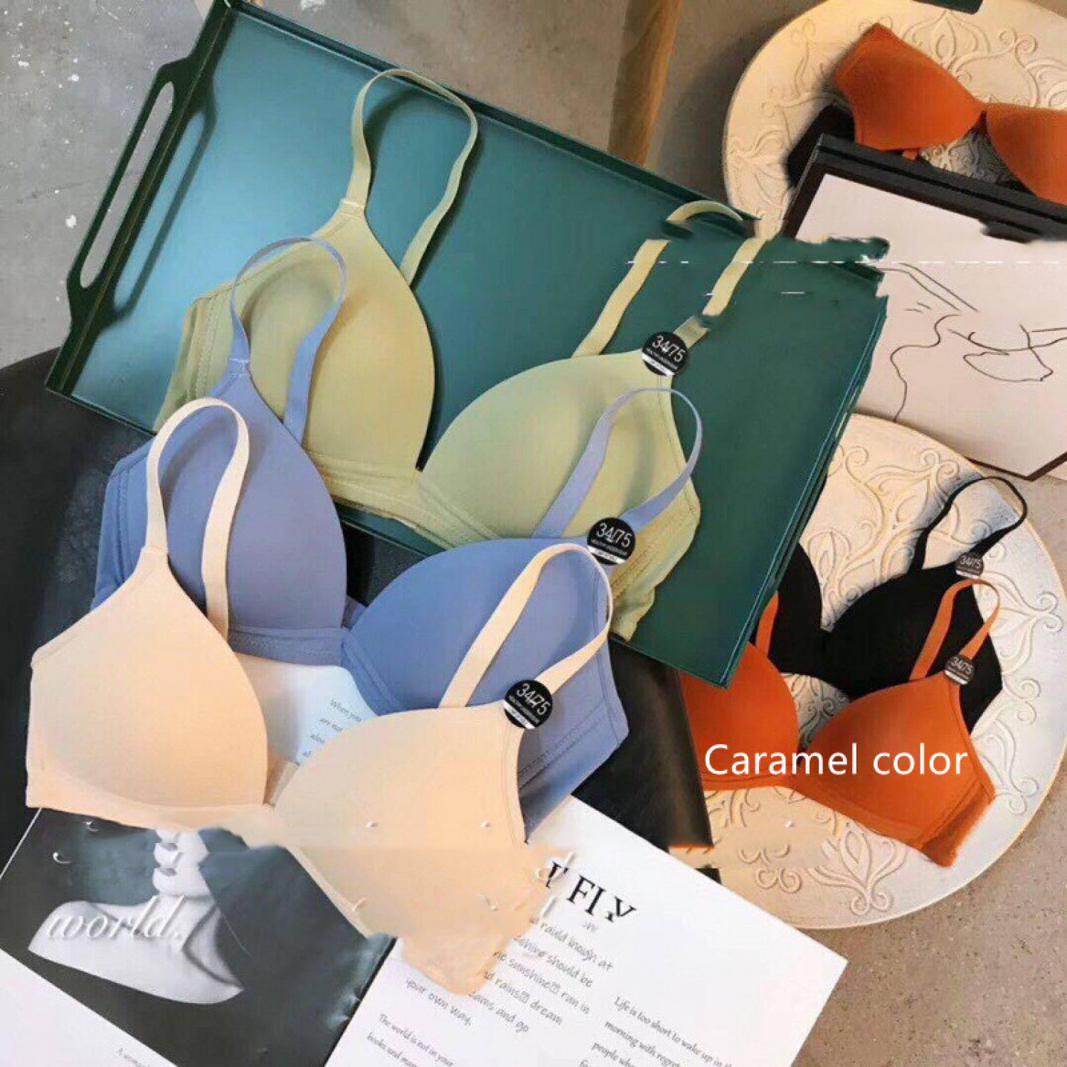 Color: green, blue, black, skin color, caramel