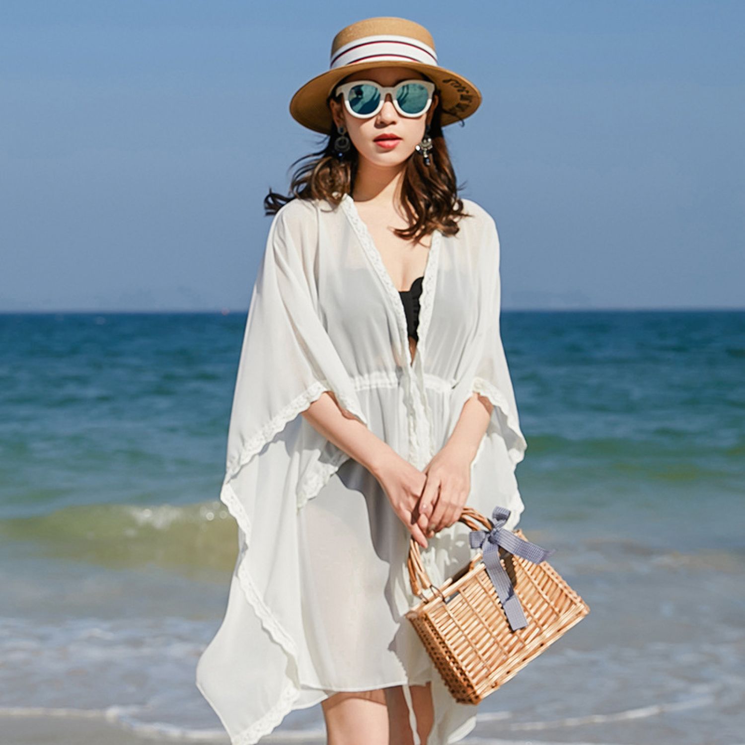 Loose Air Conditioning Shawl Women's Summer Coat White Free Size