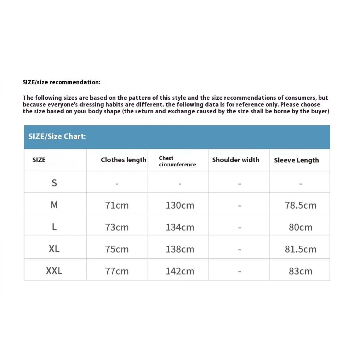 Size: M,L,XL,XXL