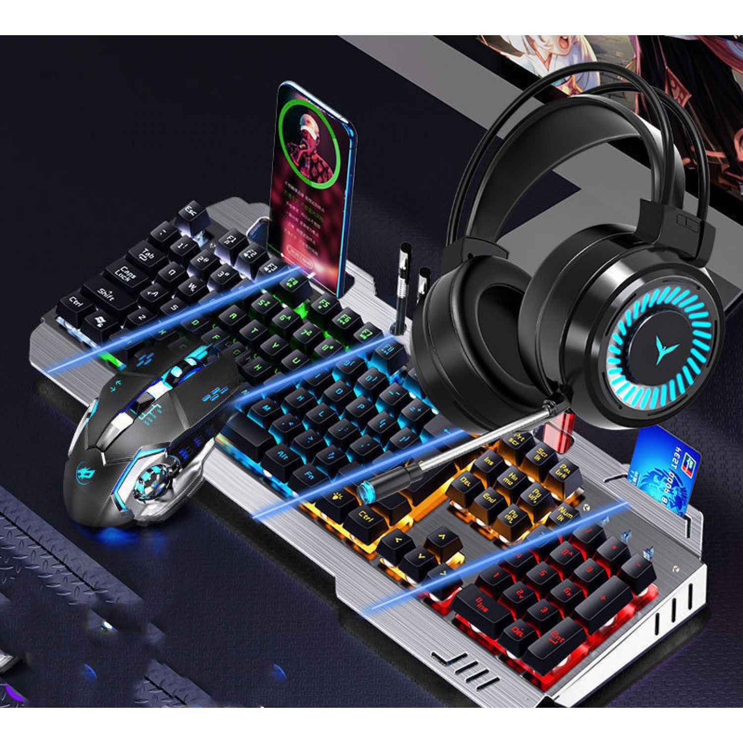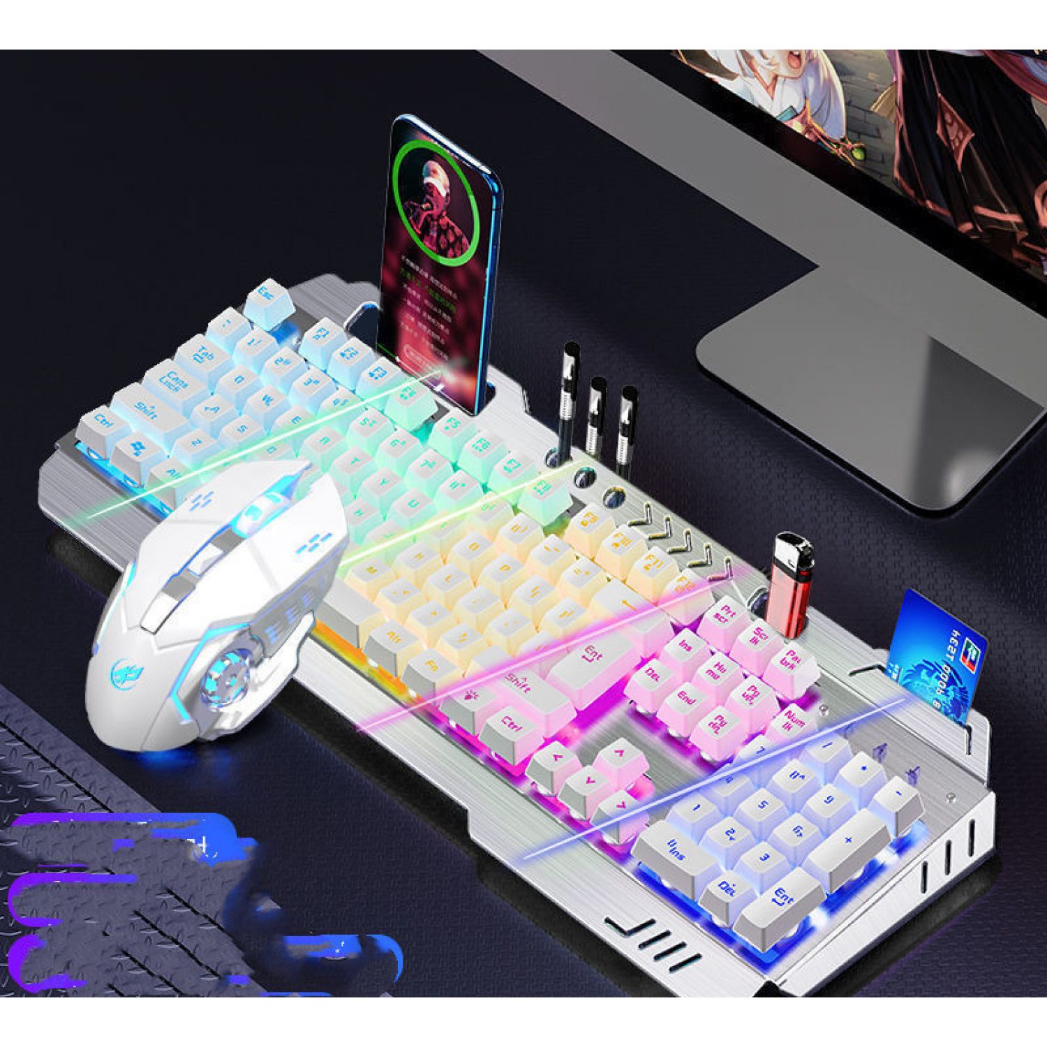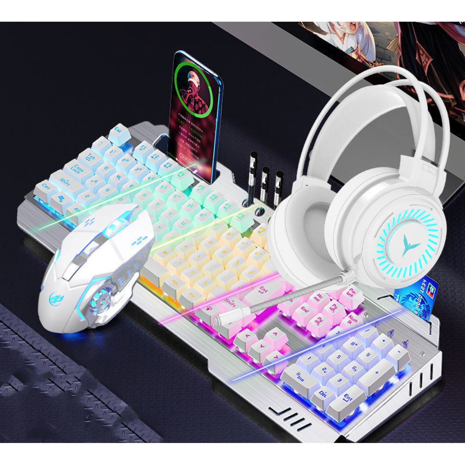 Color: Metal Black [mixed light] multi-function model, metal black [orange light] multi-function model, silver white [ice blue light] multi-function model, silver white [rainbow light] multi-function model, metal black [adjustable light color] 8 kinds of light effect upgrades, metal black [adjustable light color] 8 kinds of light effect upgrades, silver white [adjustable light color] 8 kinds of light effect upgrades, metal black [adjustable 100 kinds of light effect flagship upgrades], Silver white [adjustable 100 kinds of lamp effect flagship upgrade], metal black [rainbow light] multi-function version + macro mouse, metal black [orange light] multi-function version + macro mouse, silver white [rainbow light] multi-function version + macro mouse, silver white [ice blue light] multi-function version + macro mouse, [adjustable lamp color] 8 kinds of lamp effect upgrades + macro mouse, and [adjustable lamp color] 8 kinds of lamp effect upgrades + macro mouse, Silver white [8 kinds of lamp effect upgrade] + macro mouse, metal black [100 kinds of lamp effect flagship] + macro mouse, silver white [100 kinds of lamp effect flagship] + macro mouse, metal black [mixed light] multi-function model + macro mouse + headset, silver white [rainbow light] multi-function version + macro mouse + headset, silver white [ice blue light] multi-function version + macro mouse + headset, Black [red] 8 kinds of light effects + macro mouse + earphone, black [blue] 8 kinds of light effects + macro mouse + earphone, silver white 8 kinds of light effects flagship + macro mouse + earphone, black [100 kinds of light effects flagship] + mouse + earphone, white [100 kinds of light effects flagship] + mouse + earphone