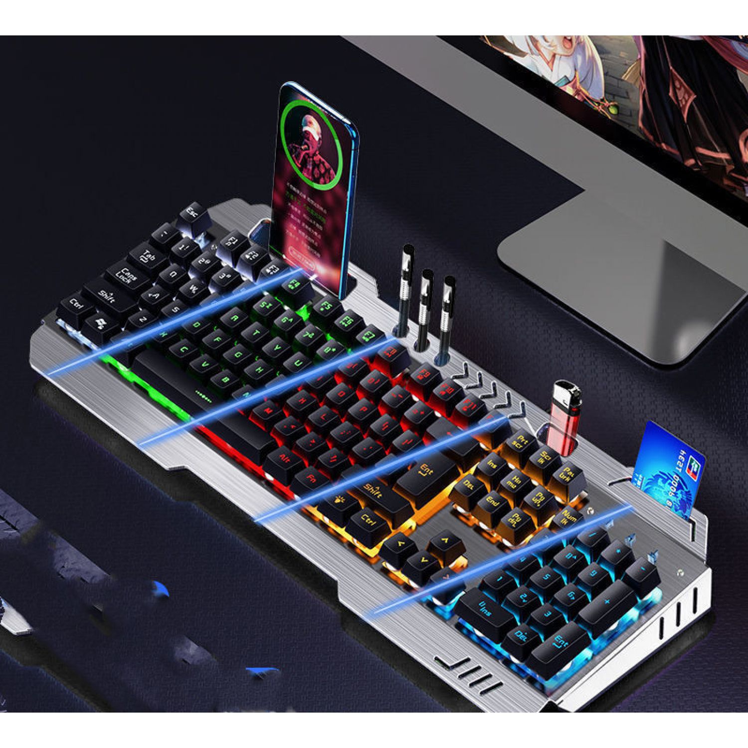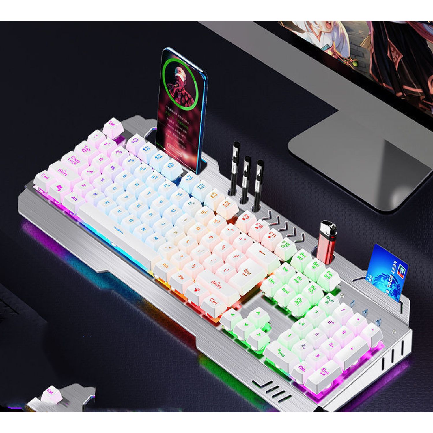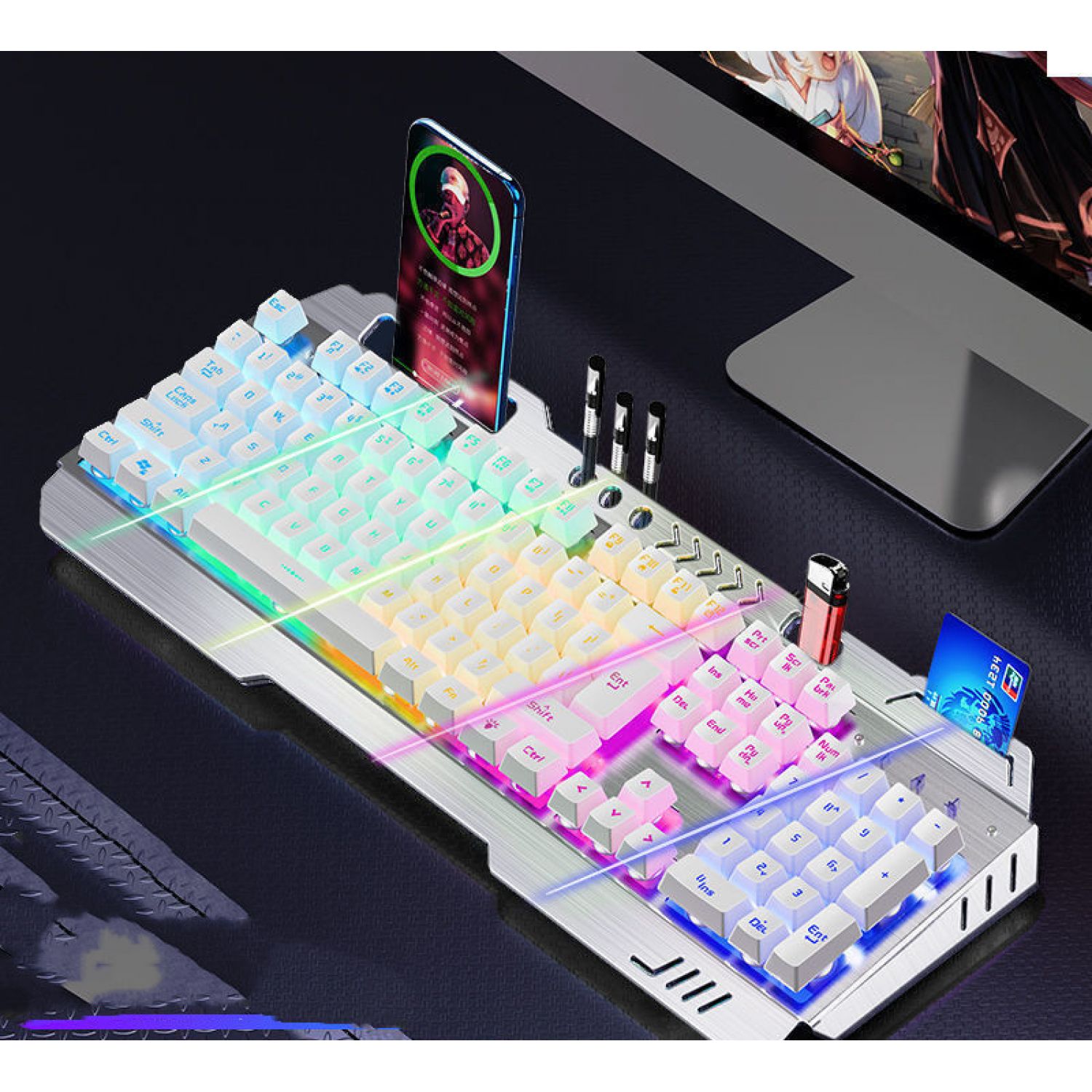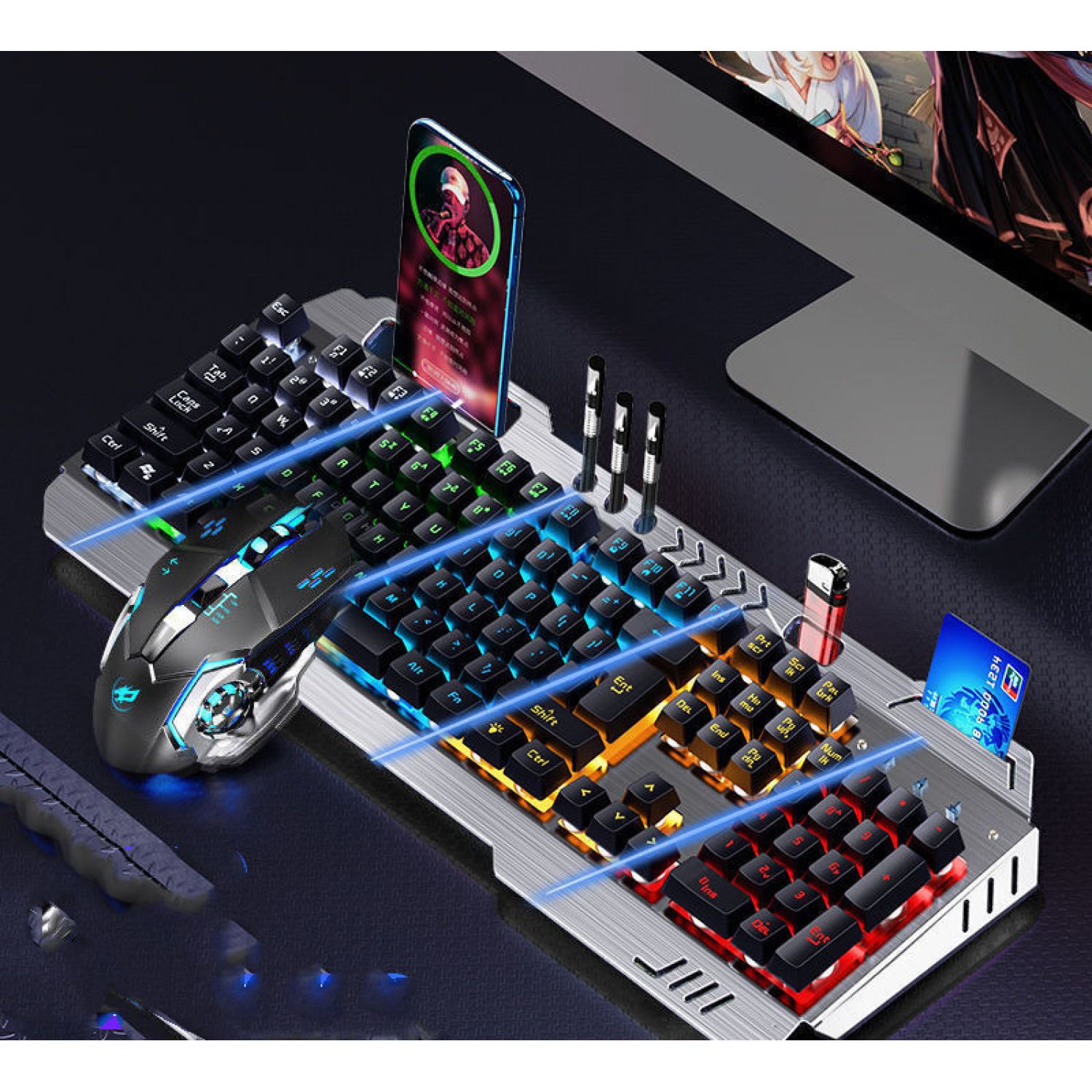 Color: Metal Black [mixed light] multi-function model, metal black [orange light] multi-function model, silver white [ice blue light] multi-function model, silver white [rainbow light] multi-function model, metal black [adjustable light color] 8 kinds of light effect upgrades, metal black [adjustable light color] 8 kinds of light effect upgrades, silver white [adjustable light color] 8 kinds of light effect upgrades, metal black [adjustable 100 kinds of light effect flagship upgrades], Silver white [adjustable 100 kinds of lamp effect flagship upgrade], metal black [rainbow light] multi-function version + macro mouse, metal black [orange light] multi-function version + macro mouse, silver white [rainbow light] multi-function version + macro mouse, silver white [ice blue light] multi-function version + macro mouse, [adjustable lamp color] 8 kinds of lamp effect upgrades + macro mouse, and [adjustable lamp color] 8 kinds of lamp effect upgrades + macro mouse, Silver white [8 kinds of lamp effect upgrade] + macro mouse, metal black [100 kinds of lamp effect flagship] + macro mouse, silver white [100 kinds of lamp effect flagship] + macro mouse, metal black [mixed light] multi-function model + macro mouse + headset, silver white [rainbow light] multi-function version + macro mouse + headset, silver white [ice blue light] multi-function version + macro mouse + headset, Black [red] 8 kinds of light effects + macro mouse + earphone, black [blue] 8 kinds of light effects + macro mouse + earphone, silver white 8 kinds of light effects flagship + macro mouse + earphone, black [100 kinds of light effects flagship] + mouse + earphone, white [100 kinds of light effects flagship] + mouse + earphone