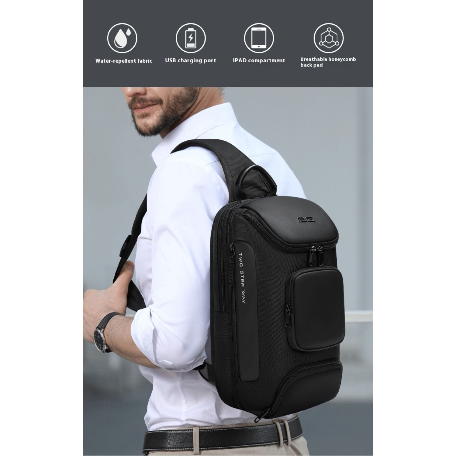 Mechanical Style Shoulder Bag Men's Business Convenience Black