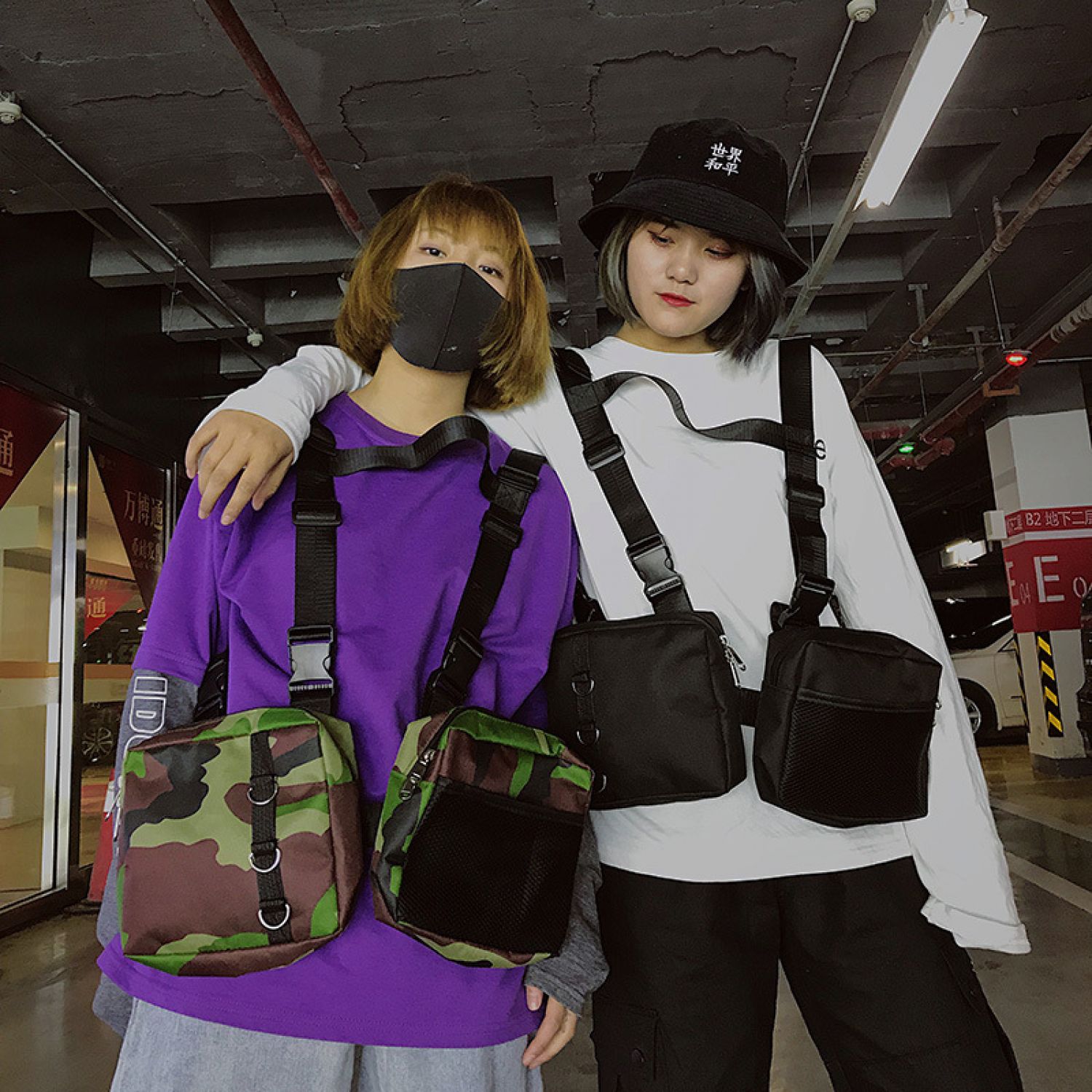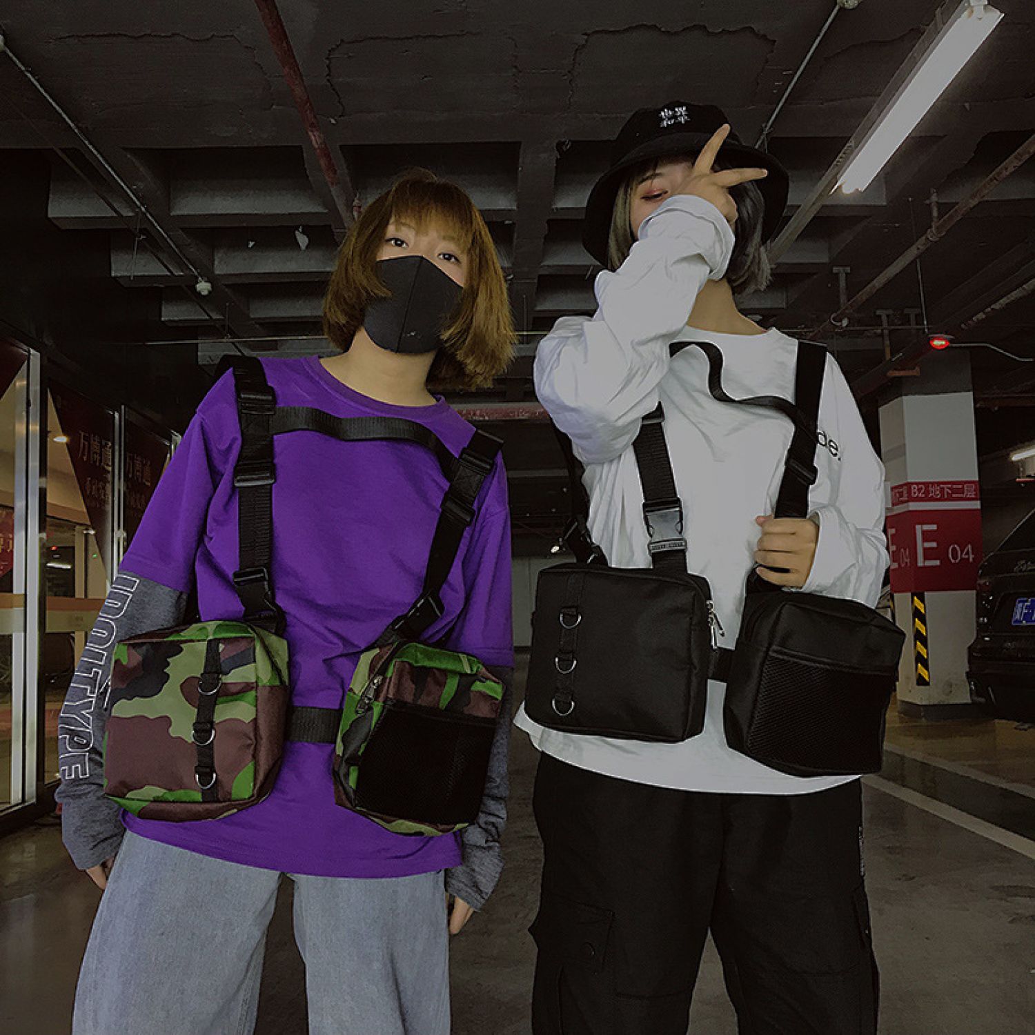 Men and women double pack chicken bag gray