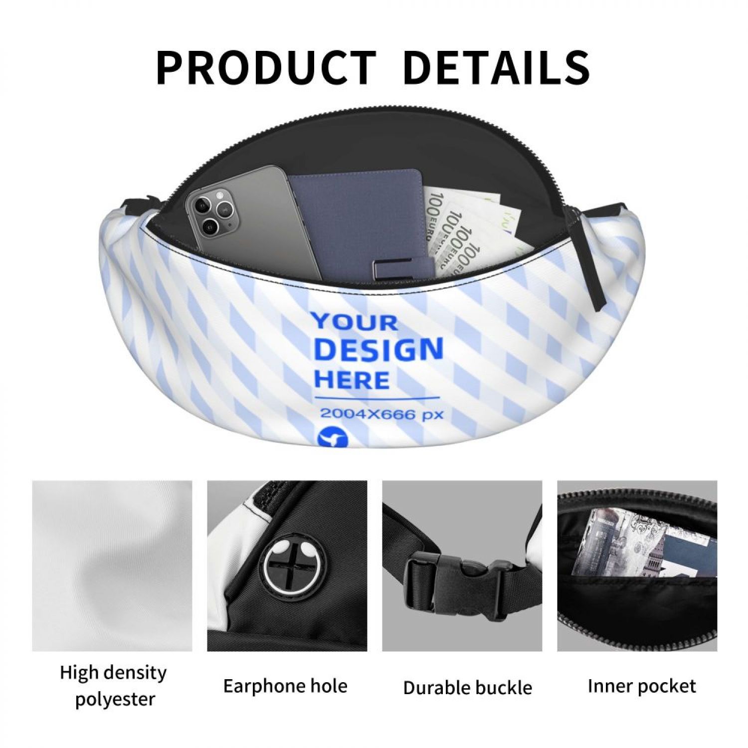 Other description: It can place small items such as mobile phones, and is also equipped with a headphone jack. PREMIUM SOLID ZIPPERS: The zipper is a very important part of the bag and should never be compromised. This fanny pack features a tough zipper that's sturdy, easy to slide, and works smoothly, so you don't have to worry about the embarrassing teeth. The belt is equipped with an adjustable buckle, which can be adjusted freely, can be worn around the waist or diagonally across the chest to release your hands, making it a good complement to your daily errands and outdoor activities, ideal for walking, running, riding Cycling, hiking, tours, festivals, fairs, concerts and farmers markets and more.