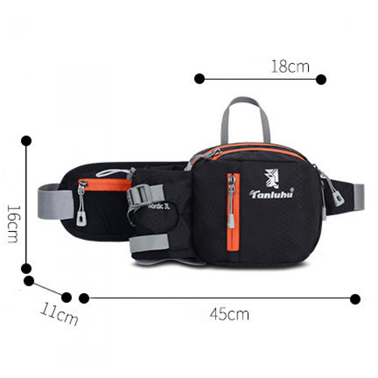 Men's and Women's Hiking Pockets and Cycling Water Bottle Bags Black