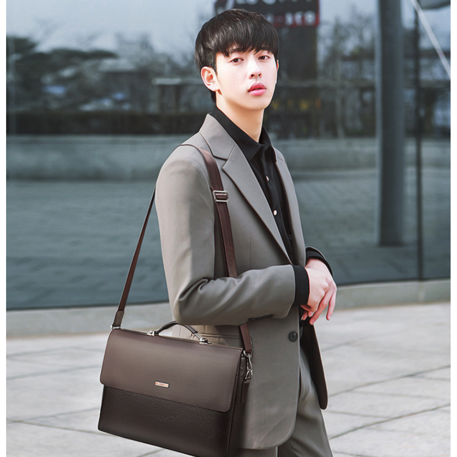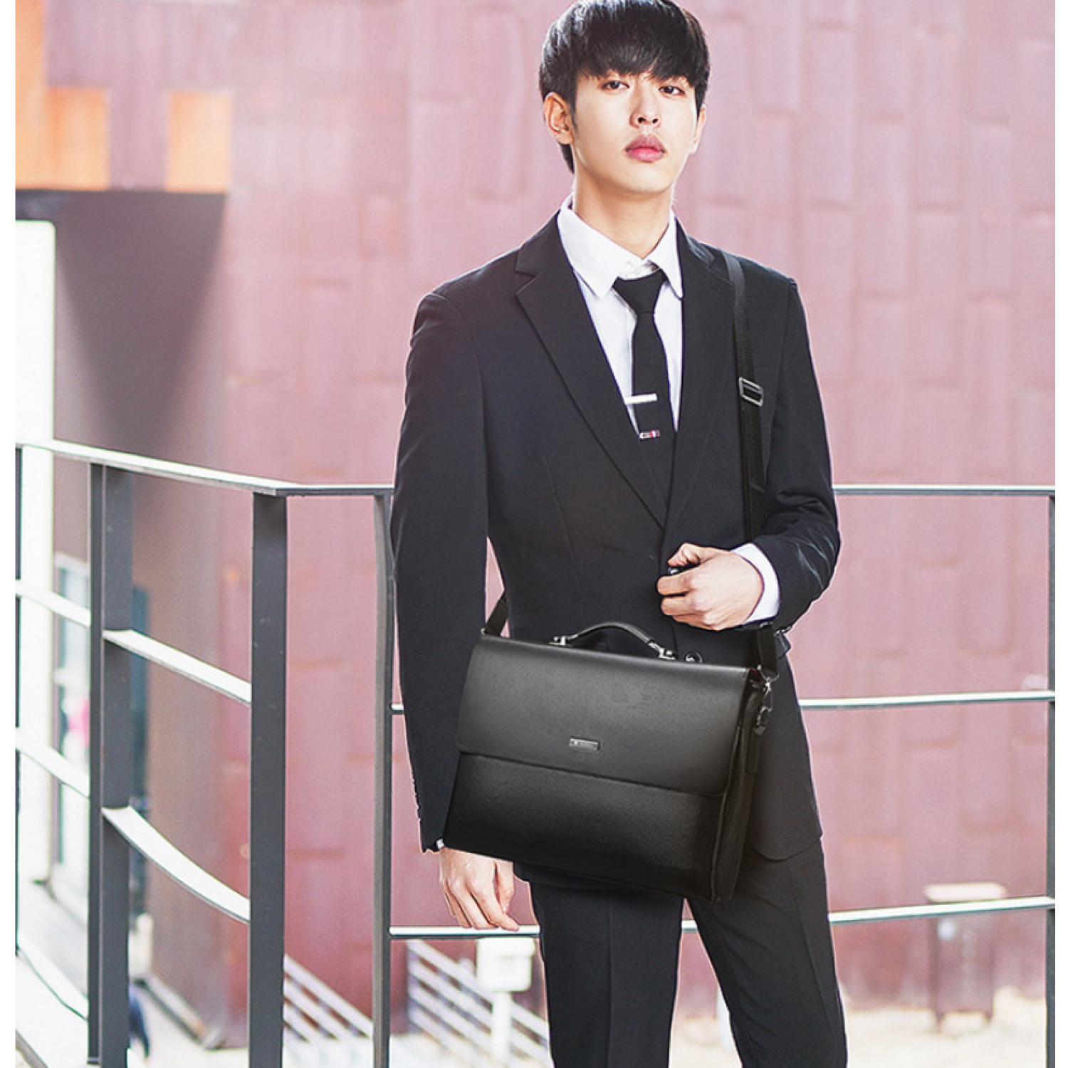 Men's Bag Horizontal Handbag Large Capacity Business Briefcase Black