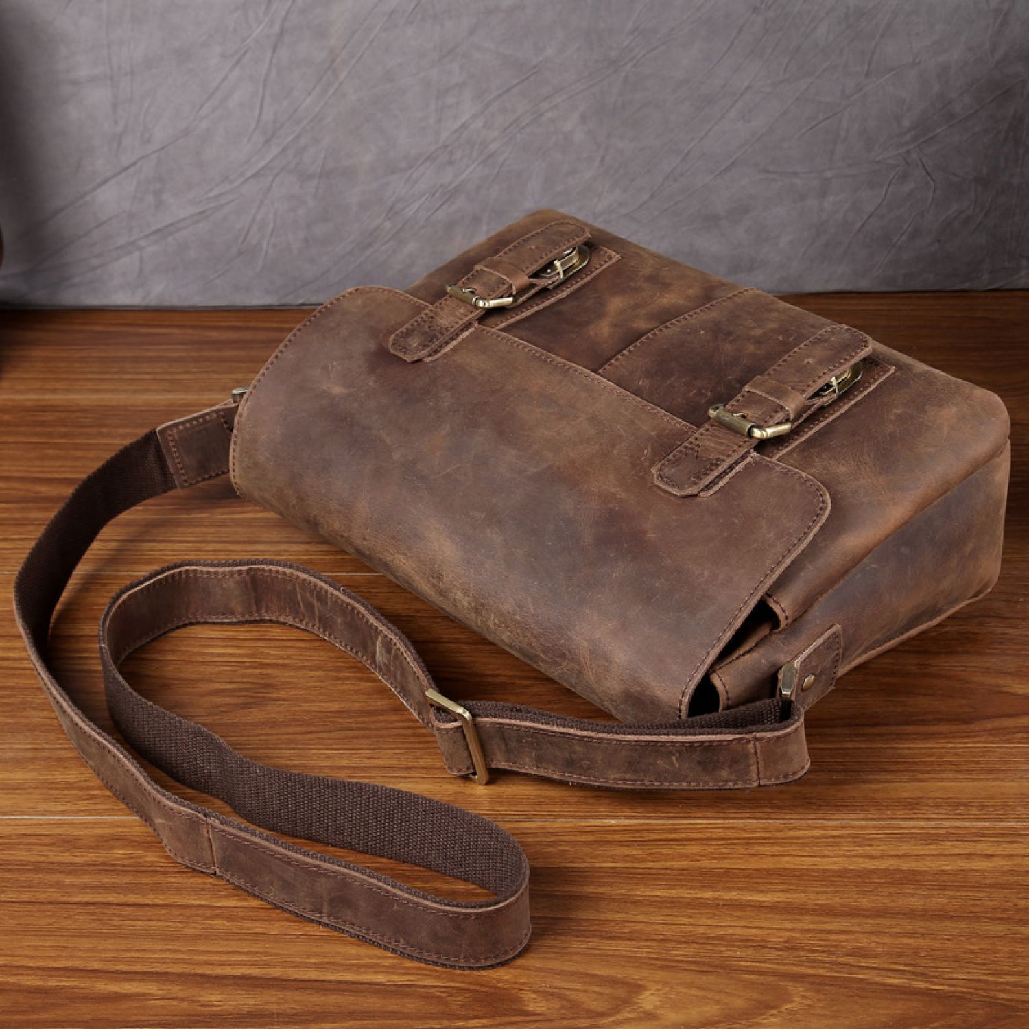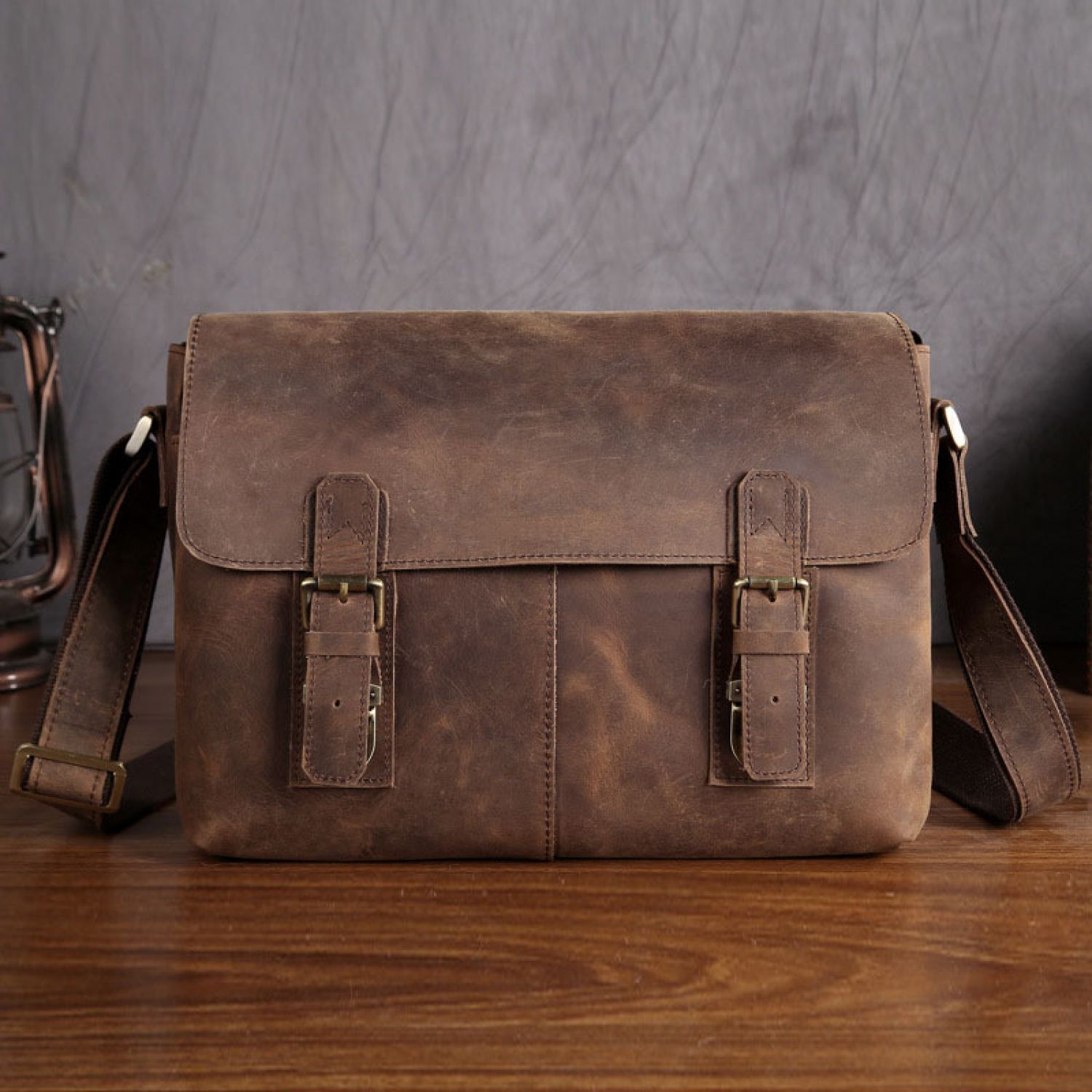 Men's Crazy Horse Leather Top Layer Cowhide Messenger Bag Brown
