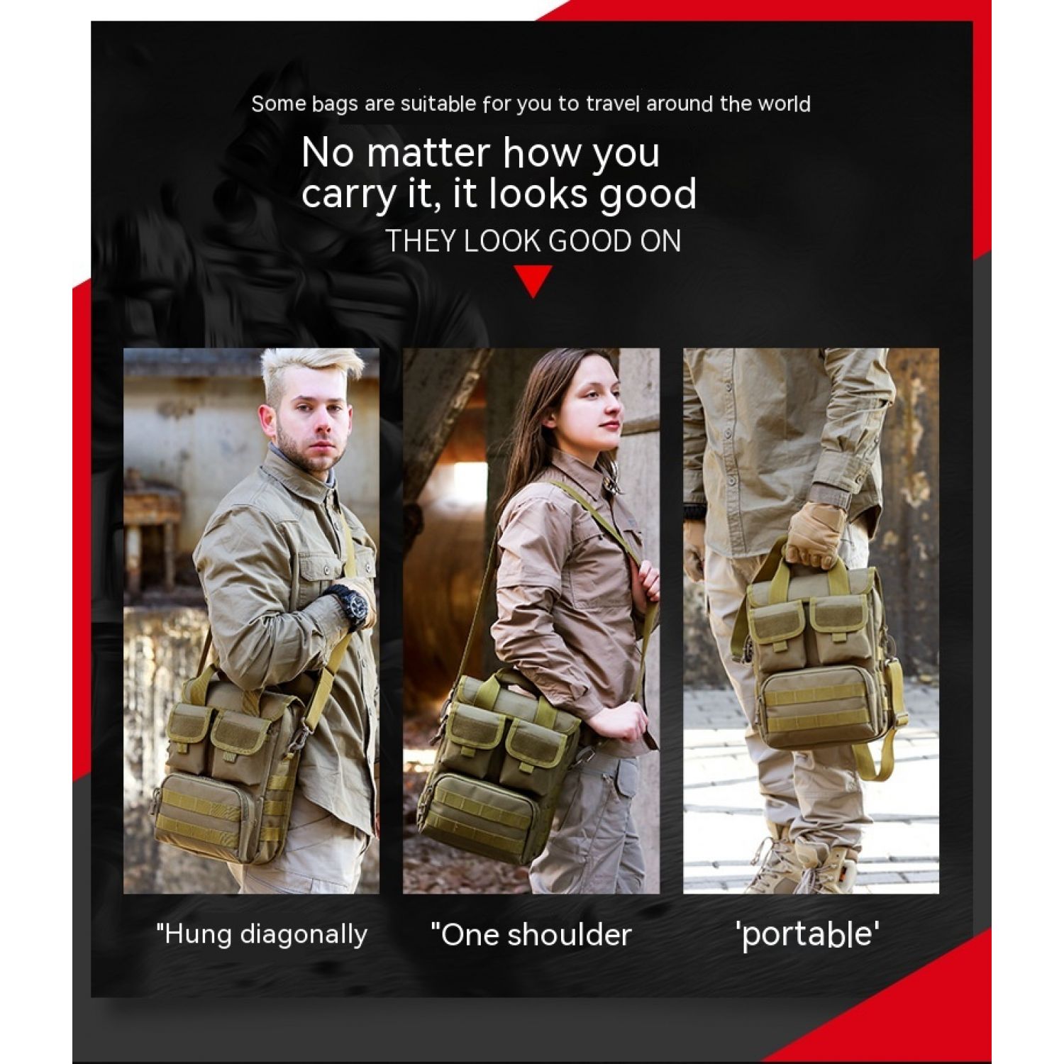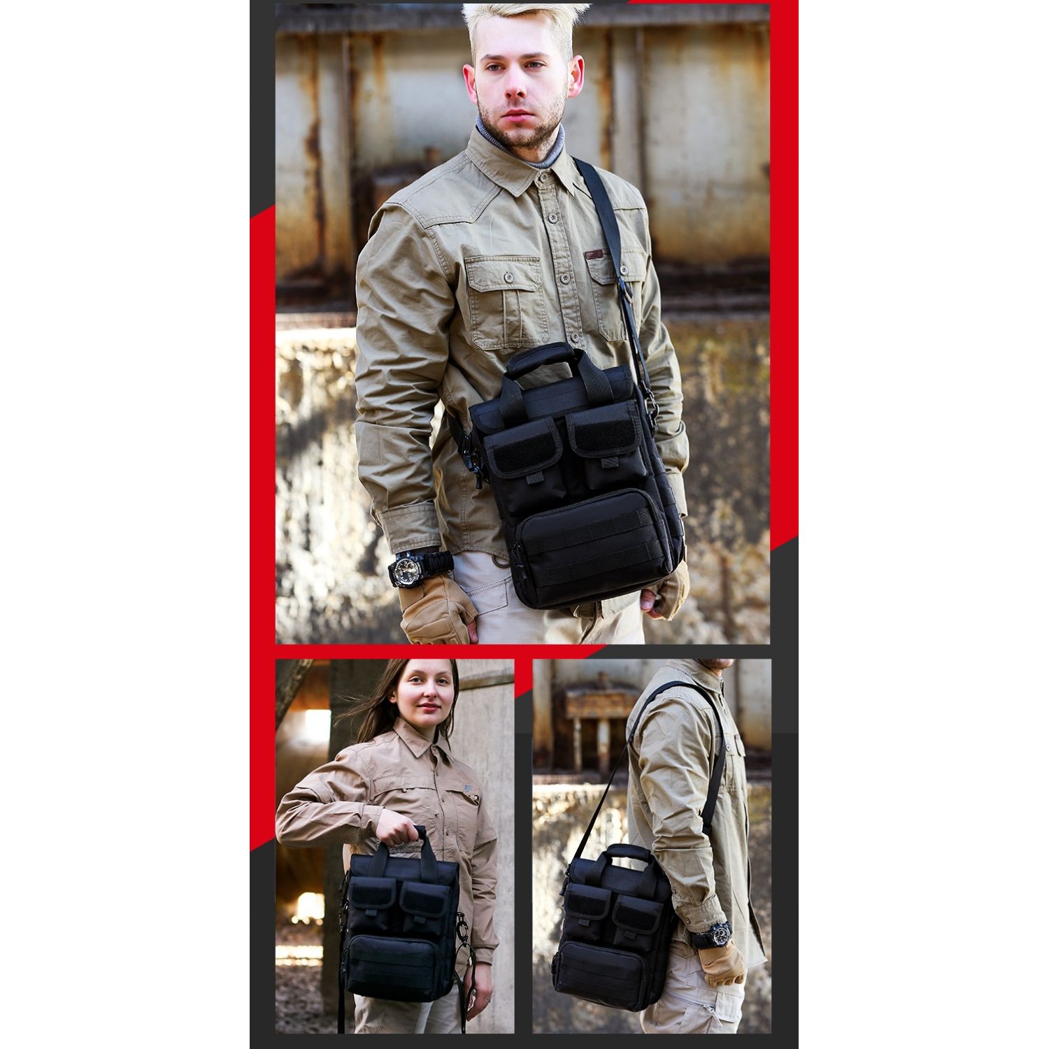 Men's Outdoor Camouflage Crossbody Tactical Handbag Black