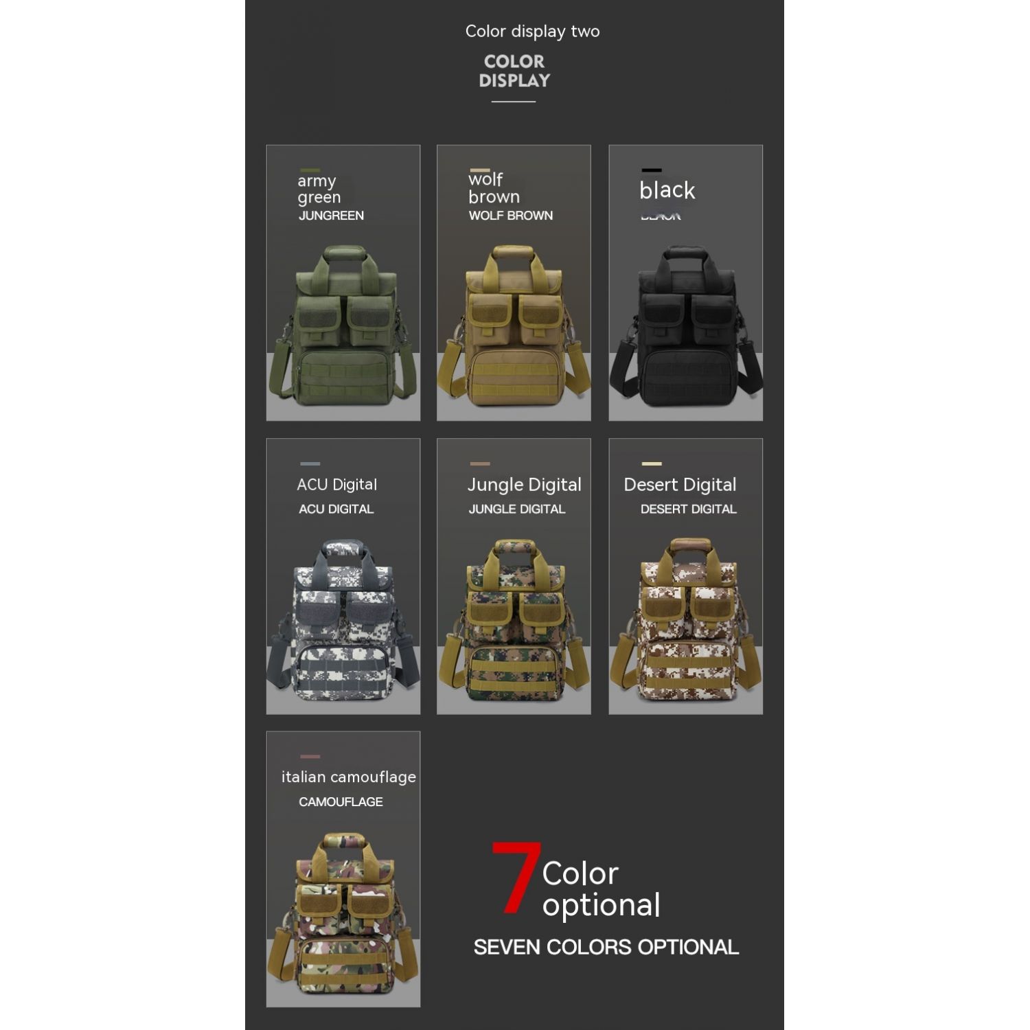 Color: Black, Wolf, ACU digital, desert digital, jungle camouflage, army green, Tiger spot Digital, Lute Digital