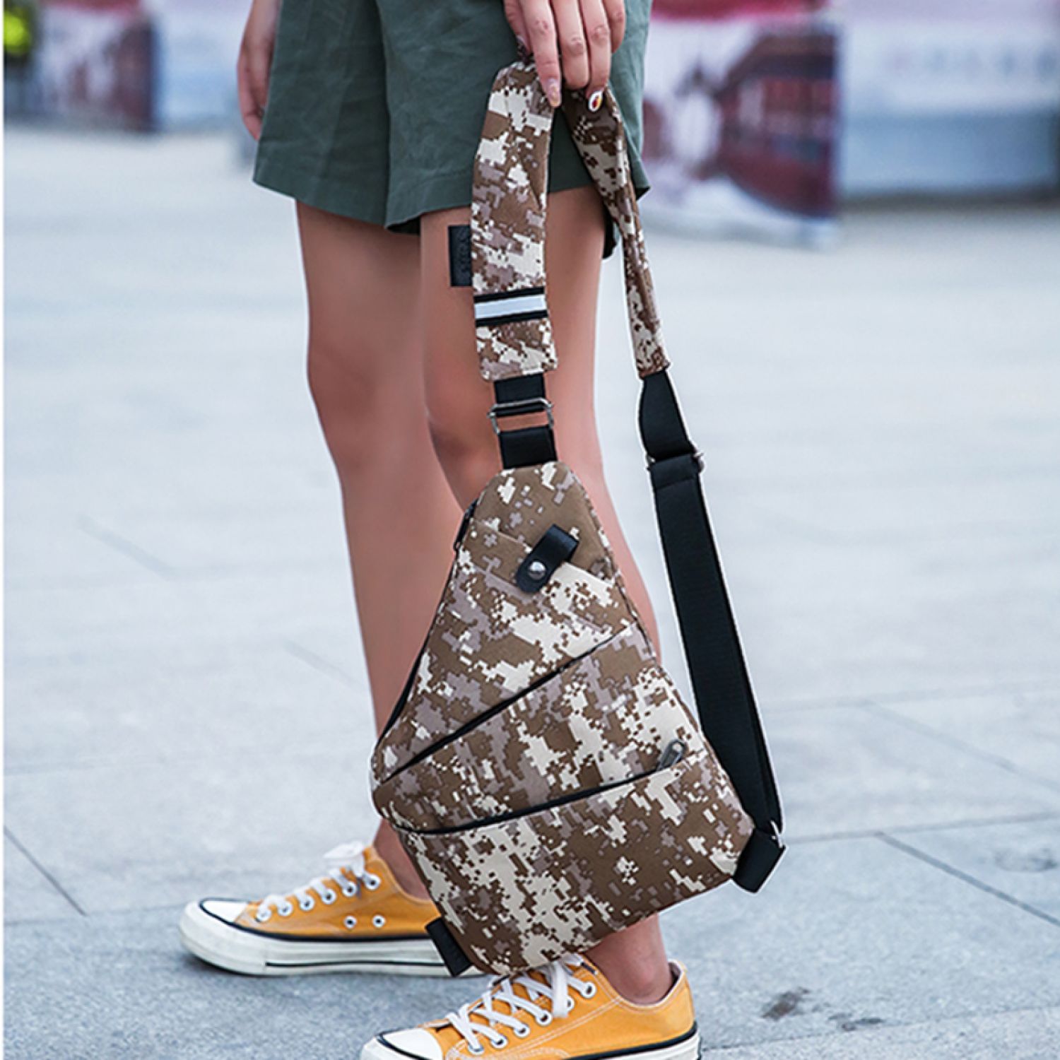 Men's Satchel Trend Fit Oxford Cloth Chest Bag Fashion Leisure Camouflage green Right