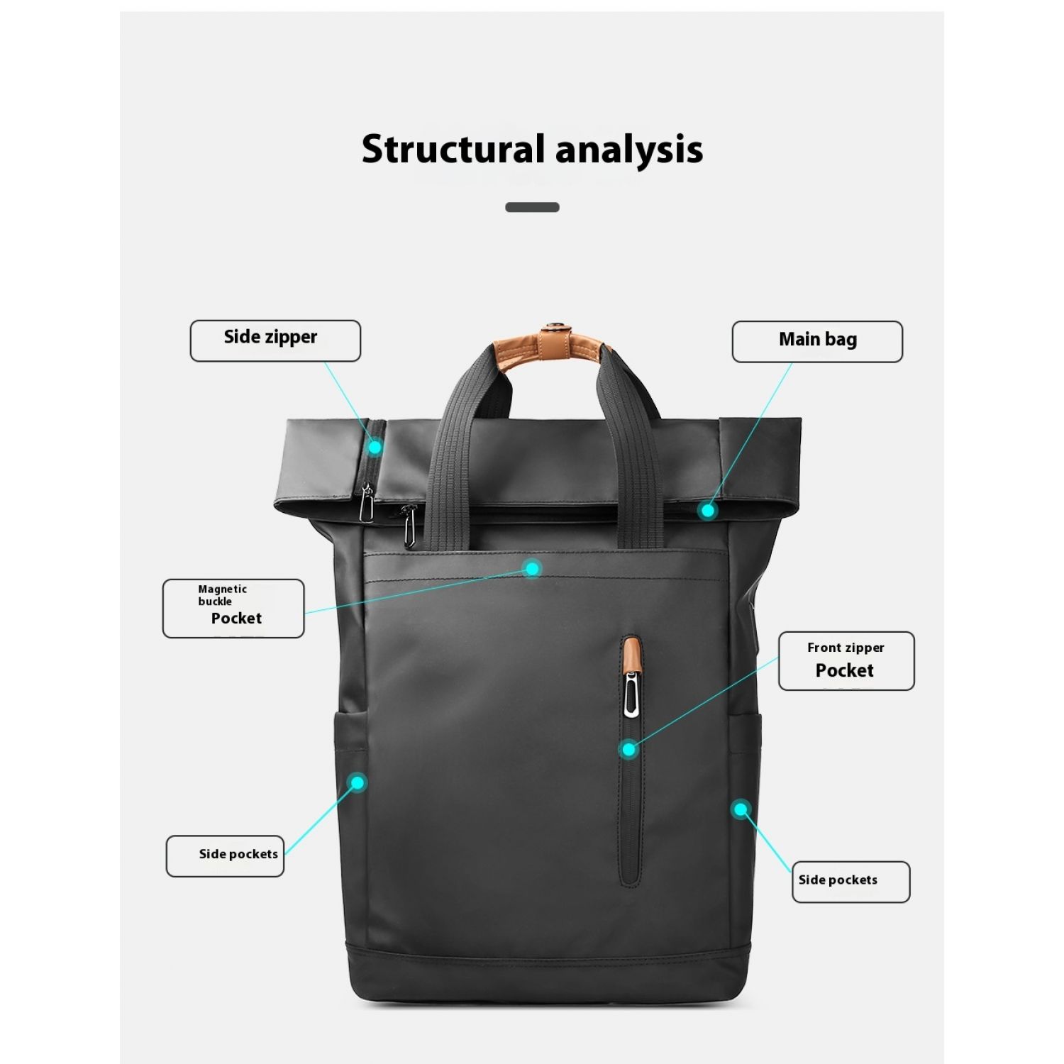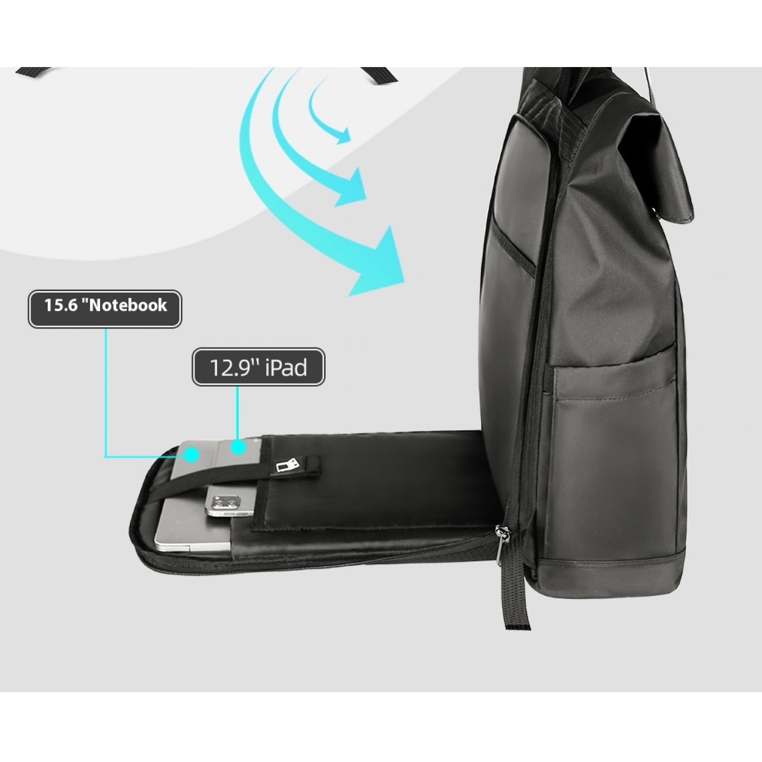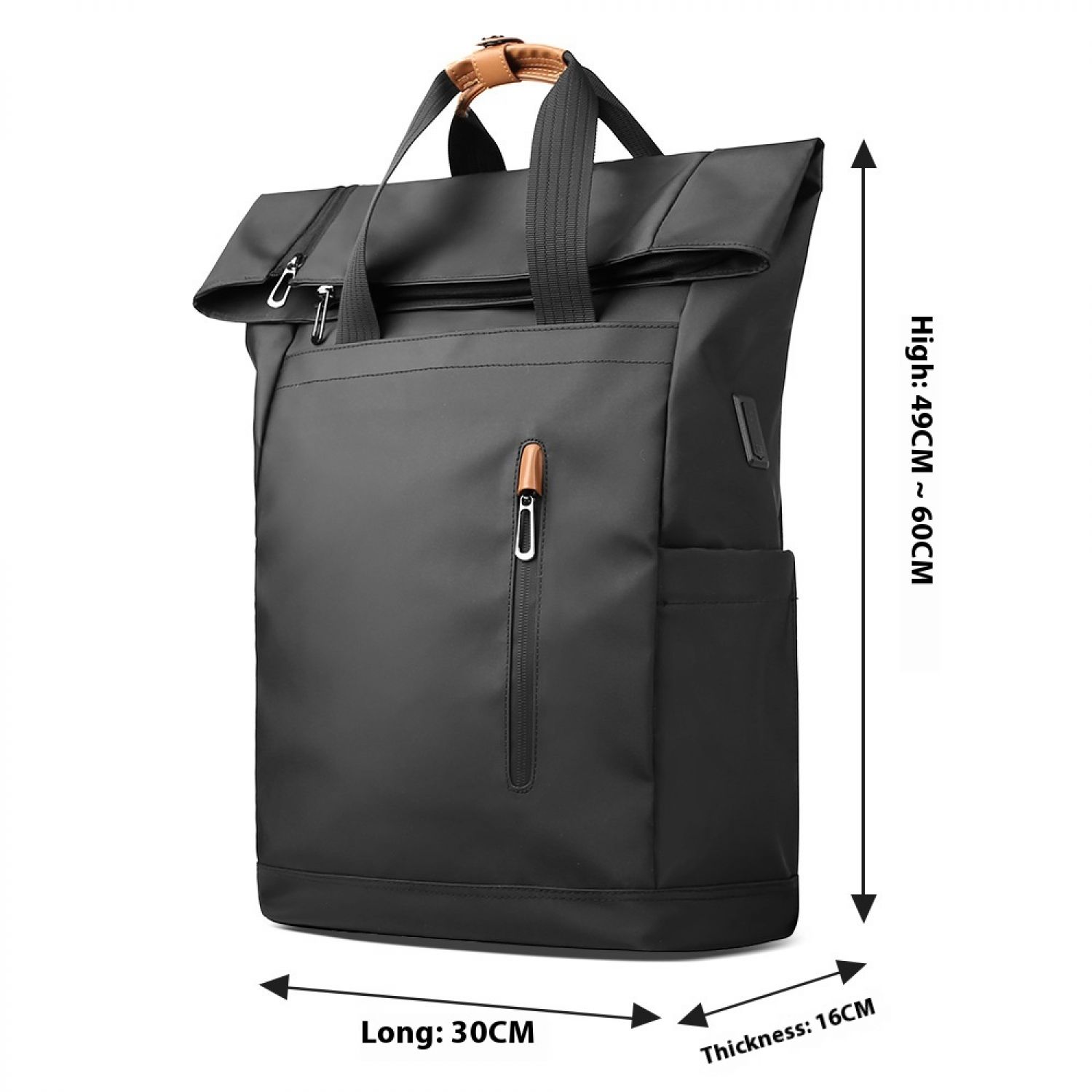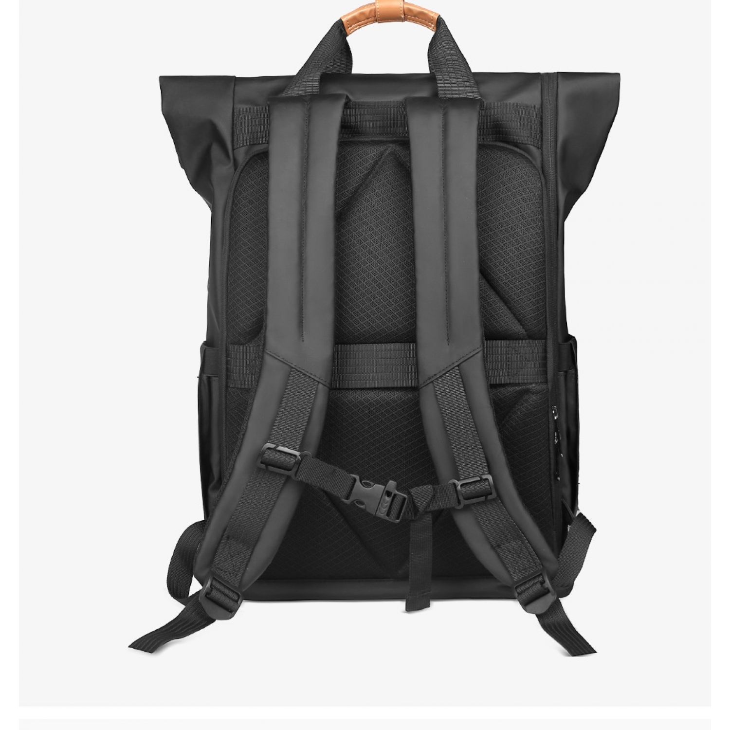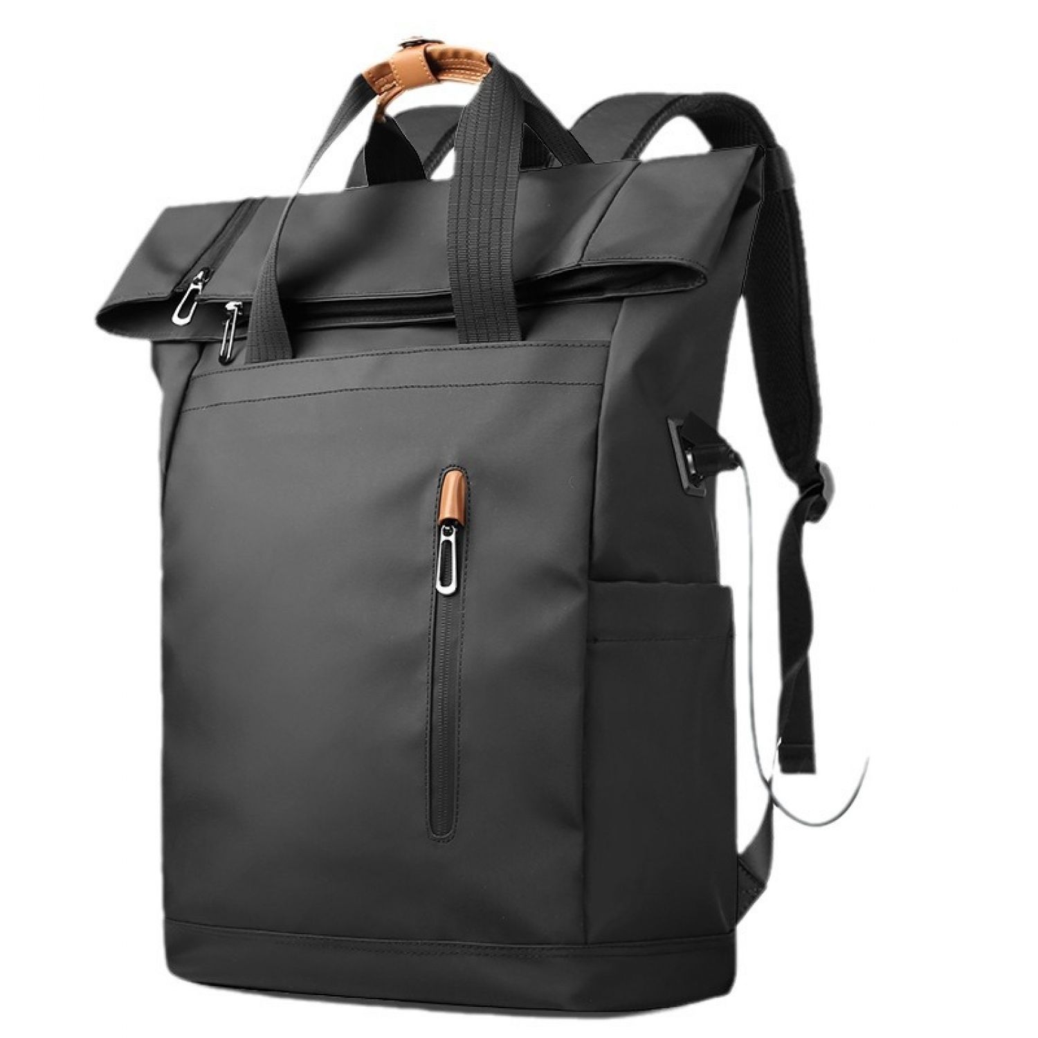 Men's Side Closure Leisure Commute Travel Curved Edge Backpack Black