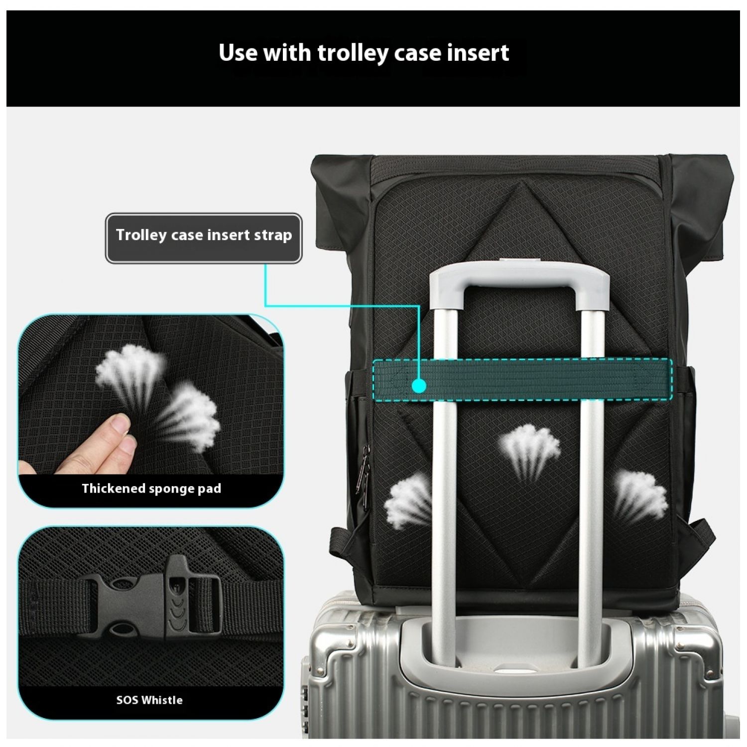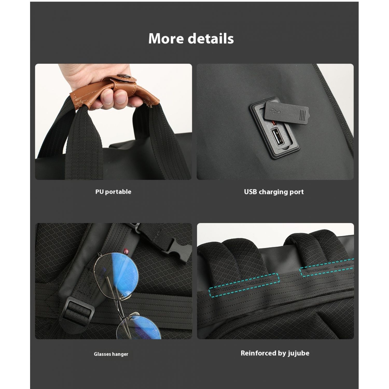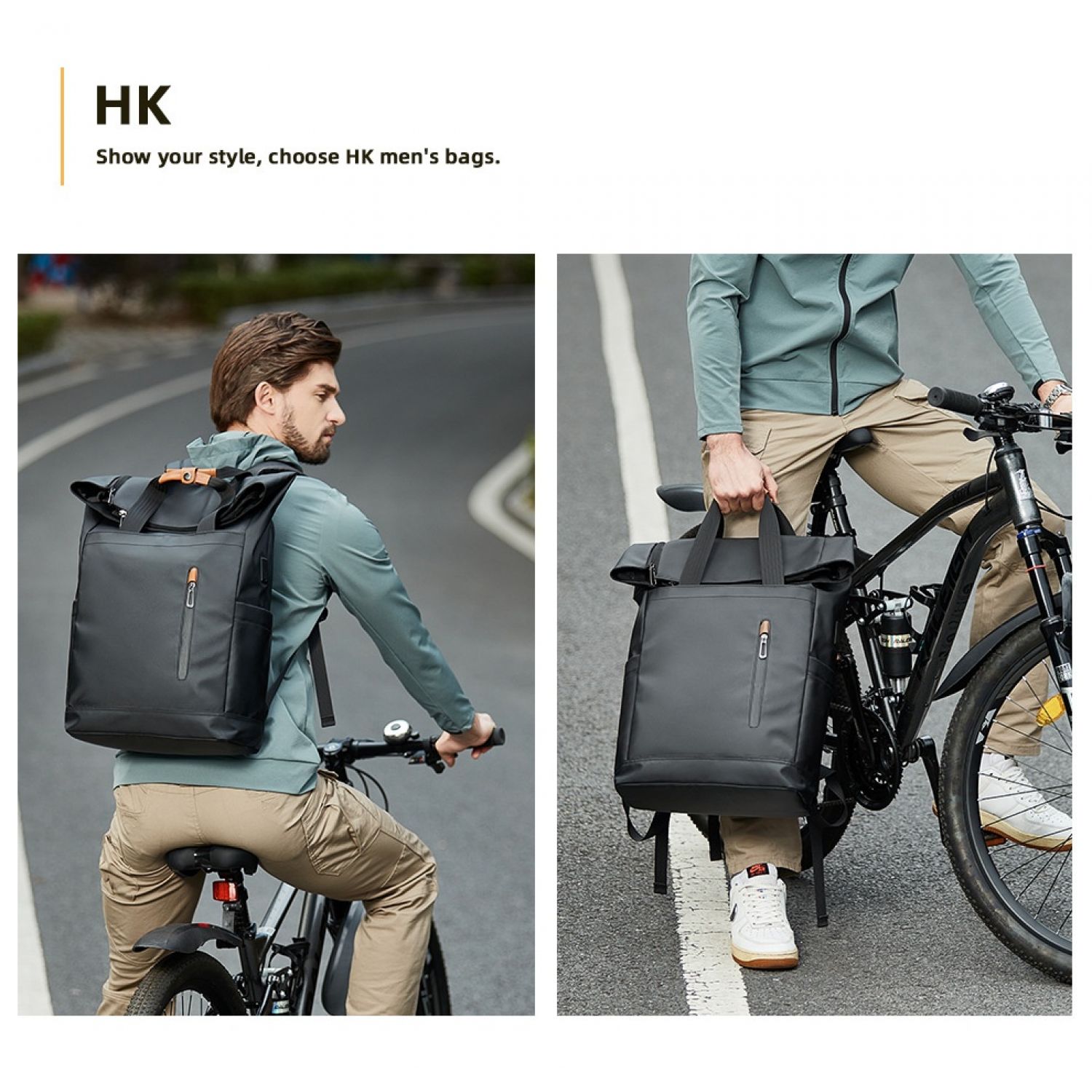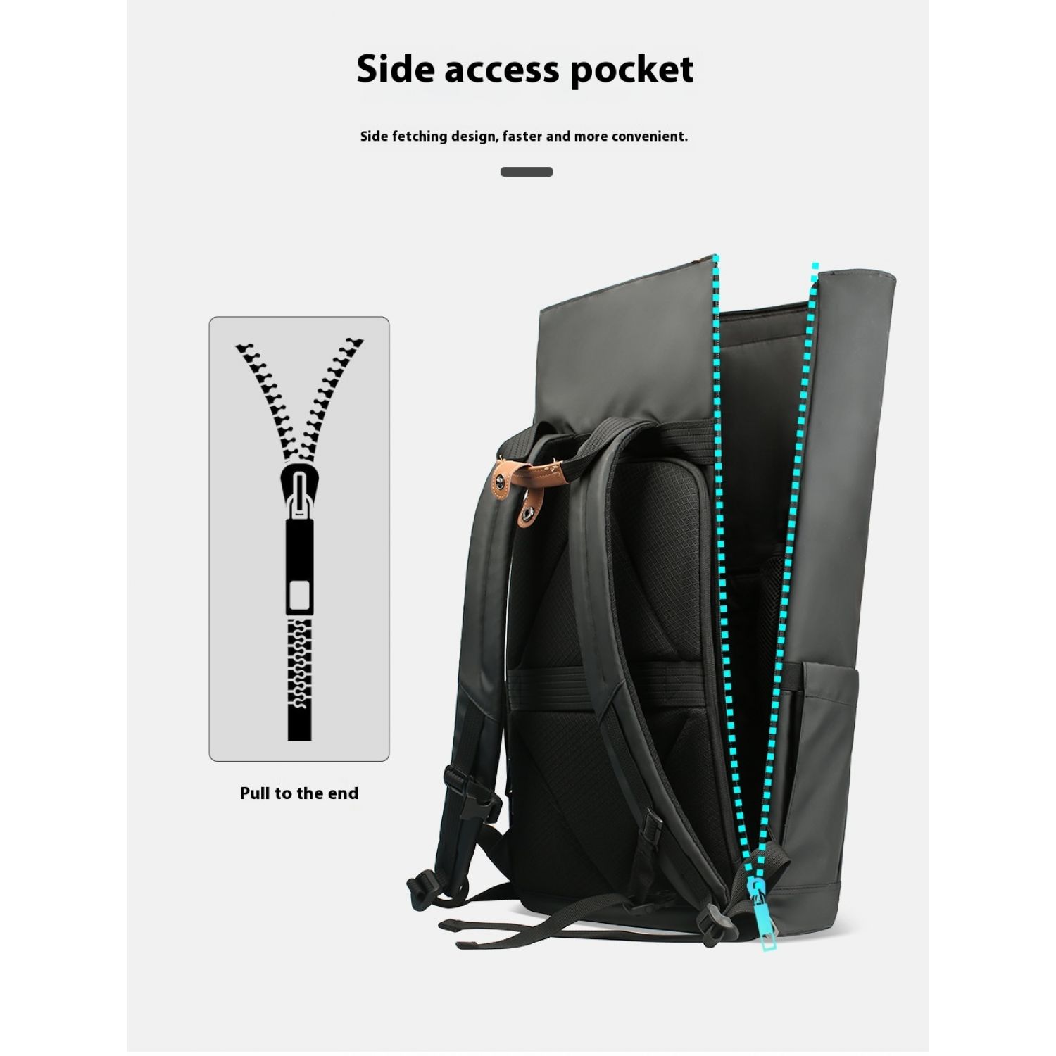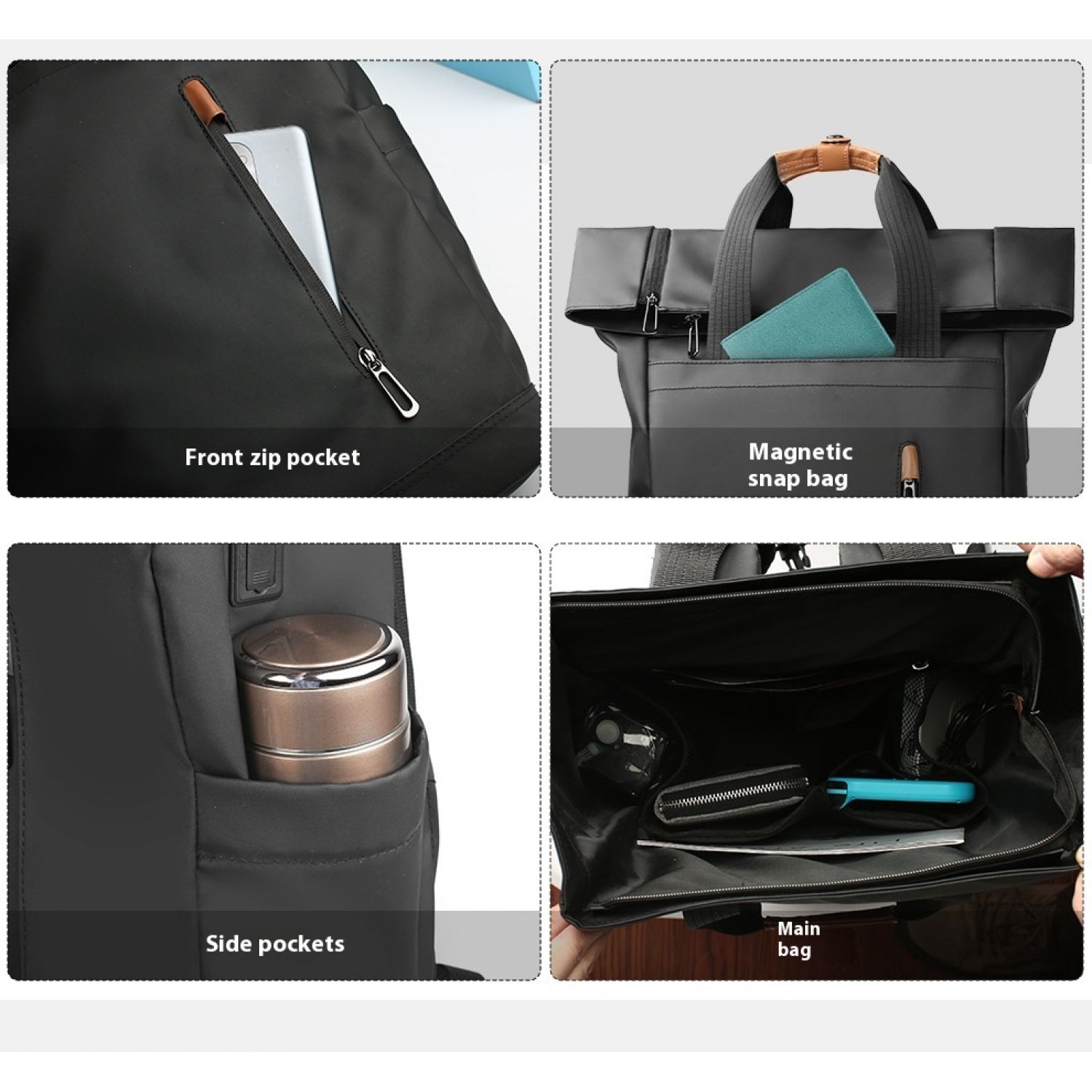 Men's Side Closure Leisure Commute Travel Curved Edge Backpack Black