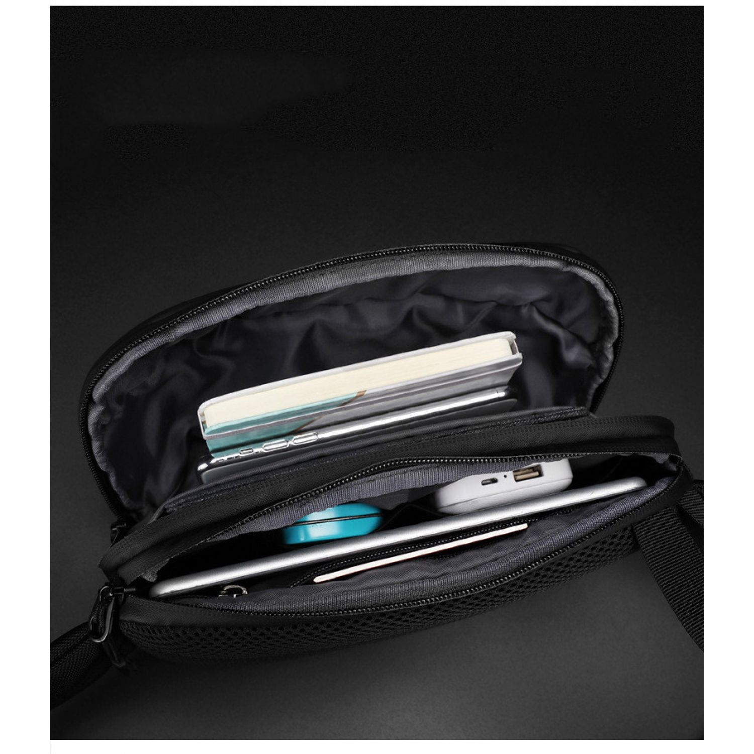 Internal structure of the bag: zipper pocket, mobile phone pocket, document pocket, interlayer zipper pocket